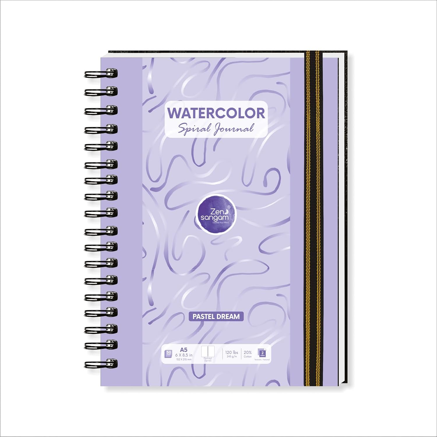 Spiral Watercolour Journal | 245GSM - 20% Cotton | Portrait | Pastel Dream (Purple) | Zen Sangam