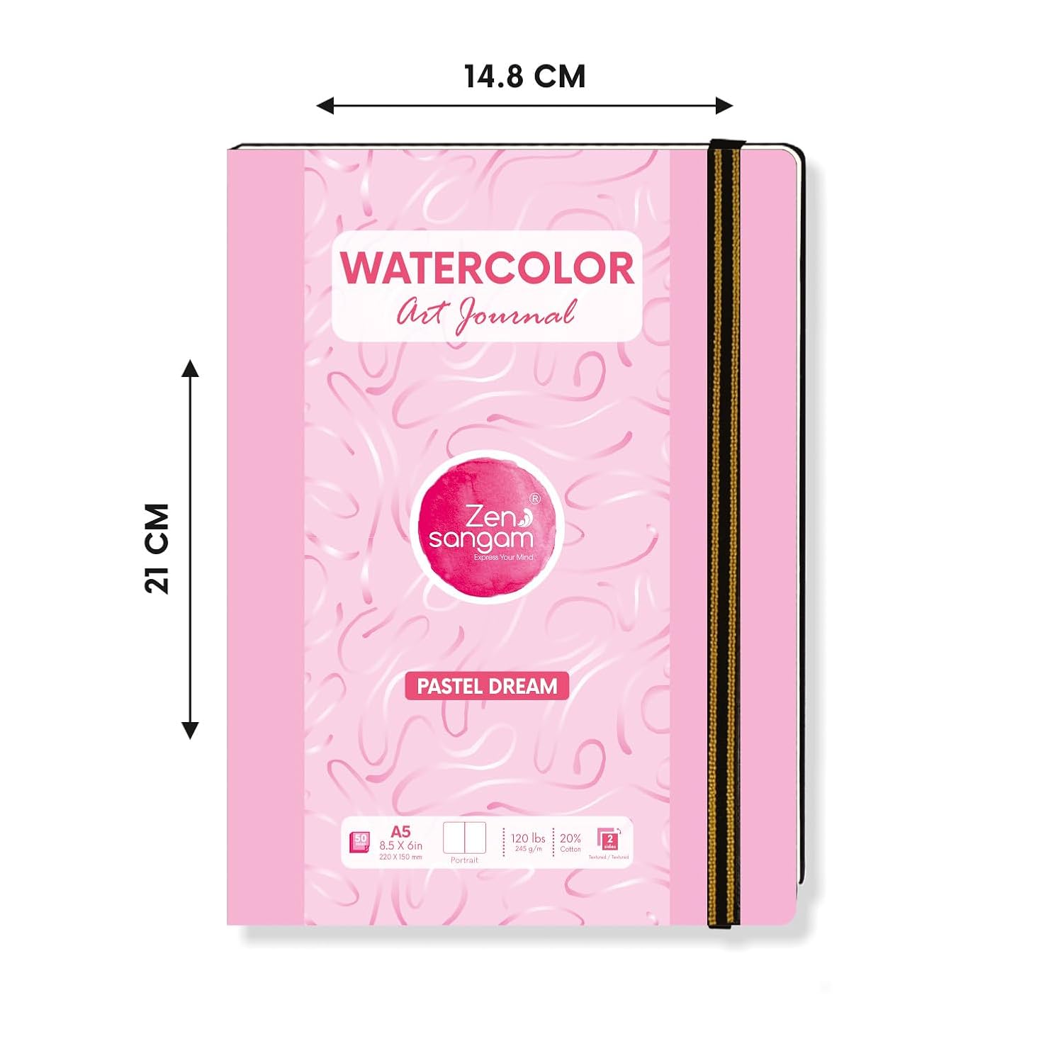 Watercolour Journal | 245GSM - 20% Cotton | Portrait | Pastel Dream (Pink) | Zen Sangam