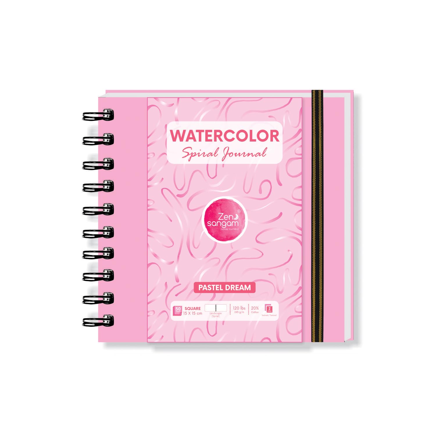 Spiral Watercolour Journal | 245GSM - 20% Cotton | Square | Pastel Dream (Pink) | Zen Sangam