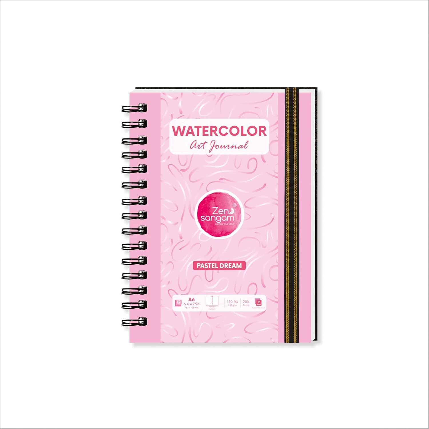 Spiral Watercolour Journal | 245GSM - 20% Cotton | Portrait | Pastel Dream (Pink) | Zen Sangam