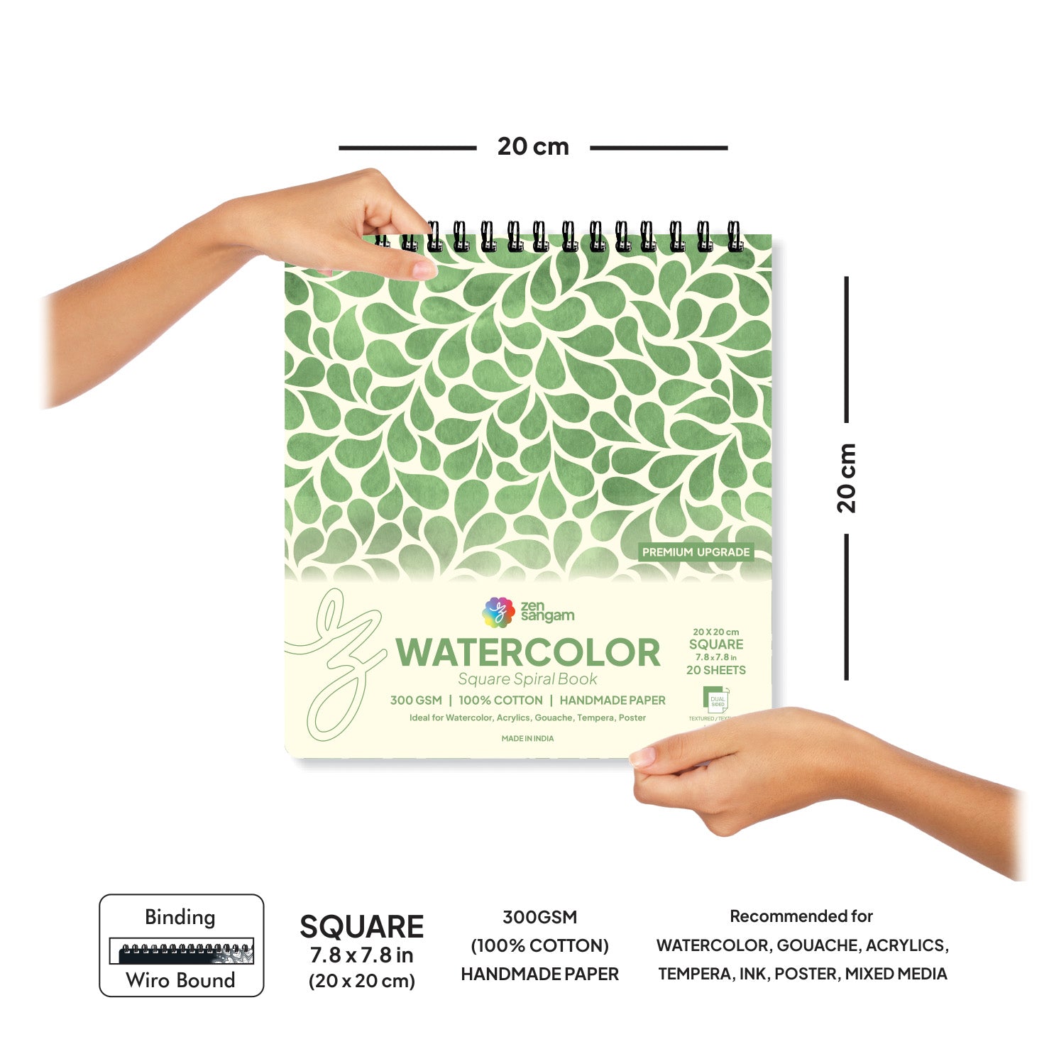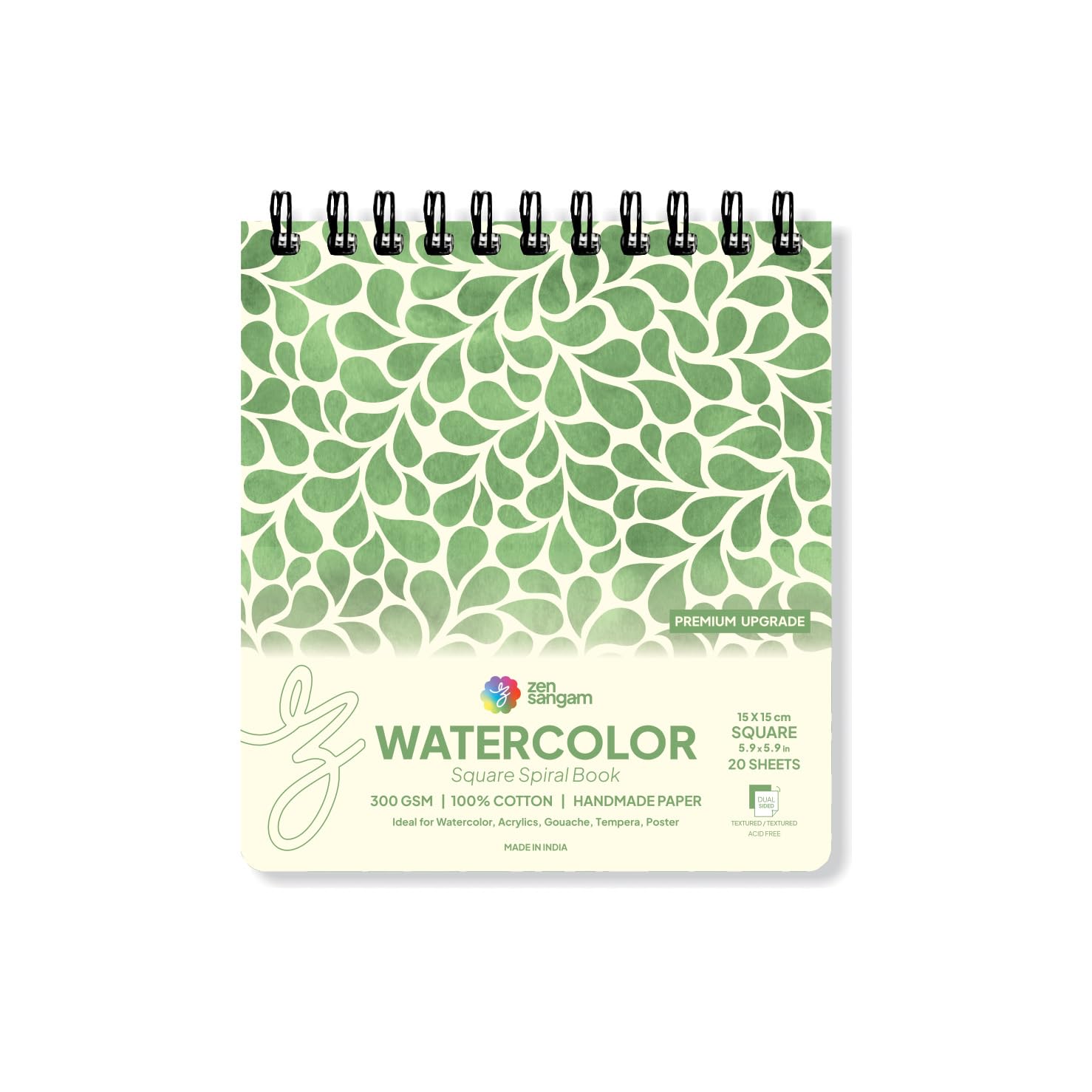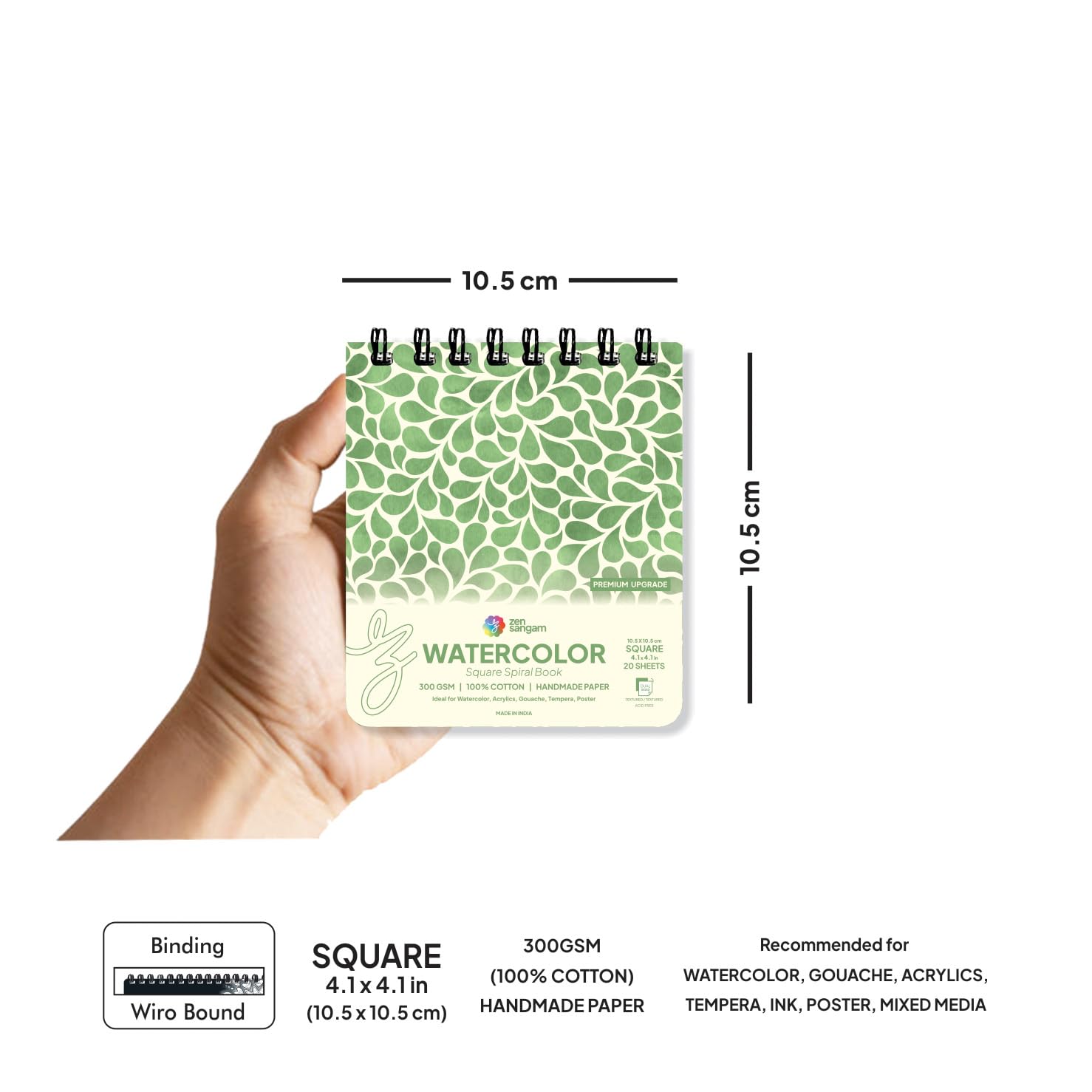 Beginner Watercolor Sketch Book - Spiral Square - 300 GSM | 100% Cotton Handmade Paper | Zen Sangam