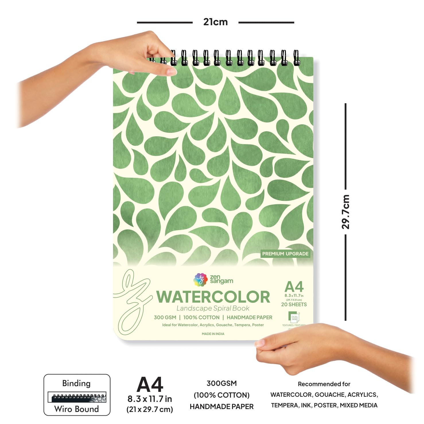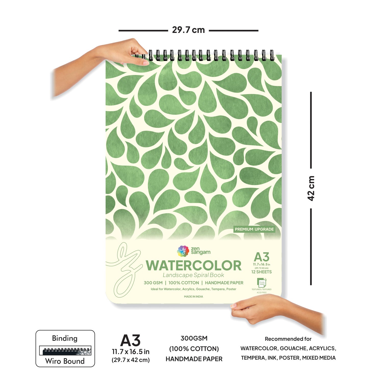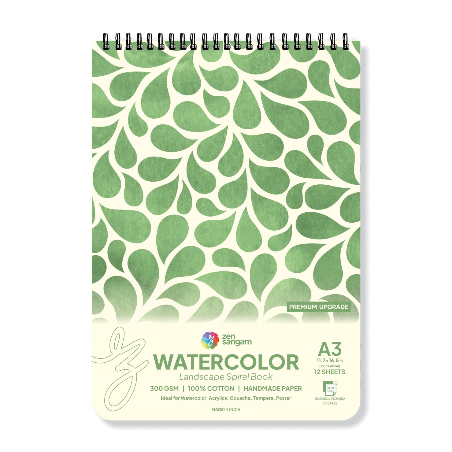 Beginner Watercolor Sketch Book - Spiral Square - 300 GSM | 100% Cotton Handmade Paper | Zen Sangam