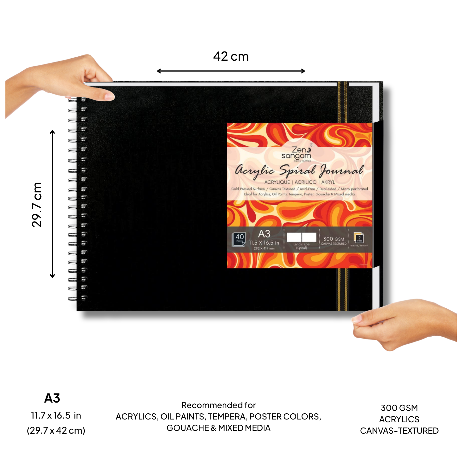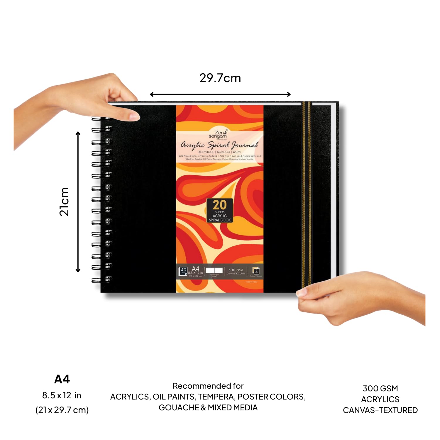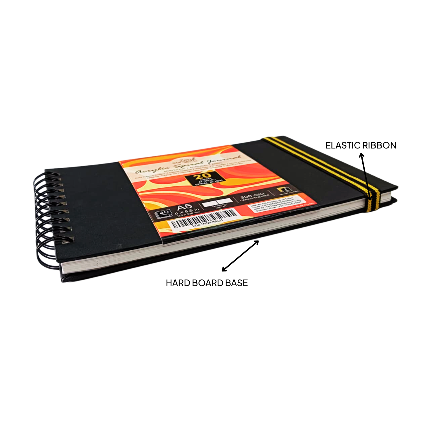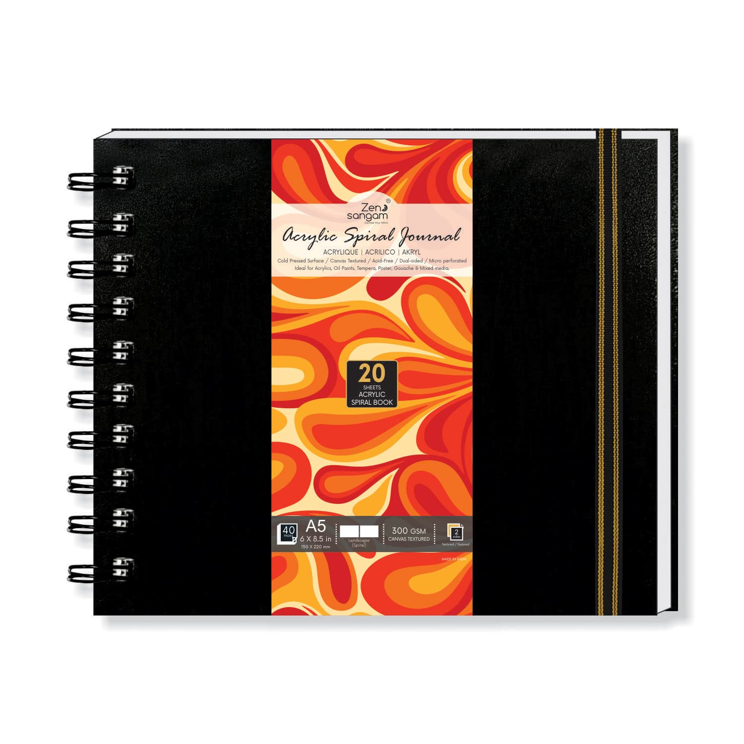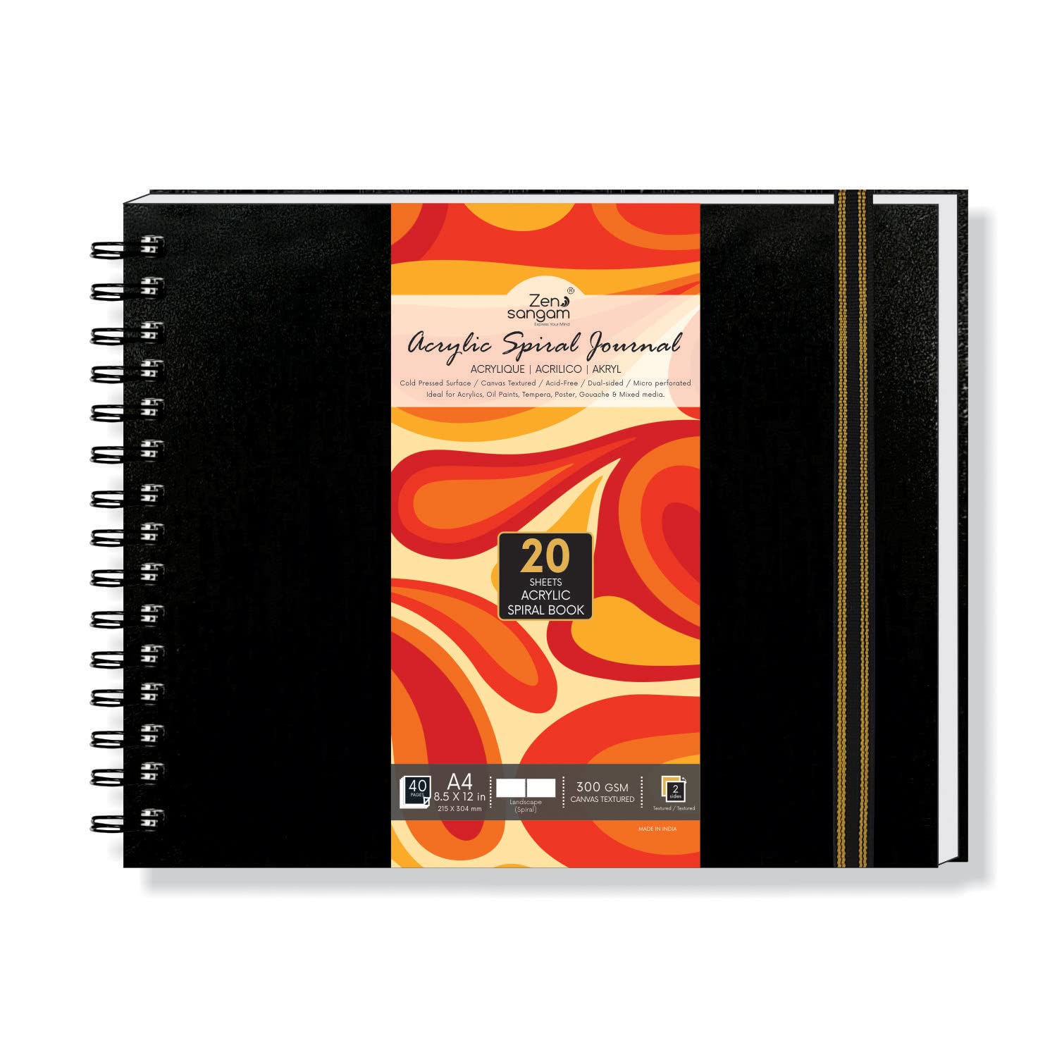 • Landscape Size 300 GSM Acrylics Square Spiral Journal consisting of 20 Sheets (40 Pages) that are Canvas Textured and Cold Pressed.
