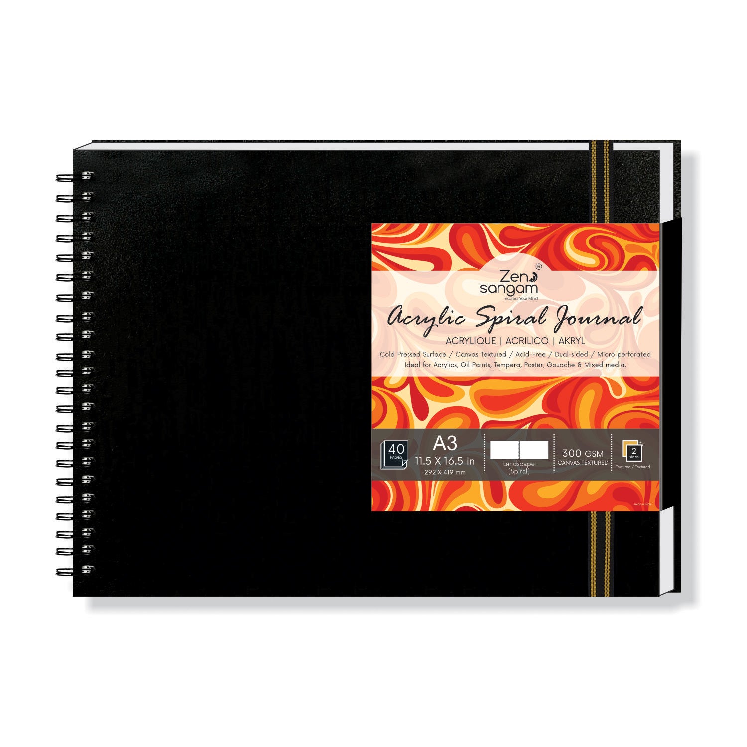 Spiral Acrylic Journal | Landscape - Black | 300 GSM - Canvas Texture | Zen Sangam