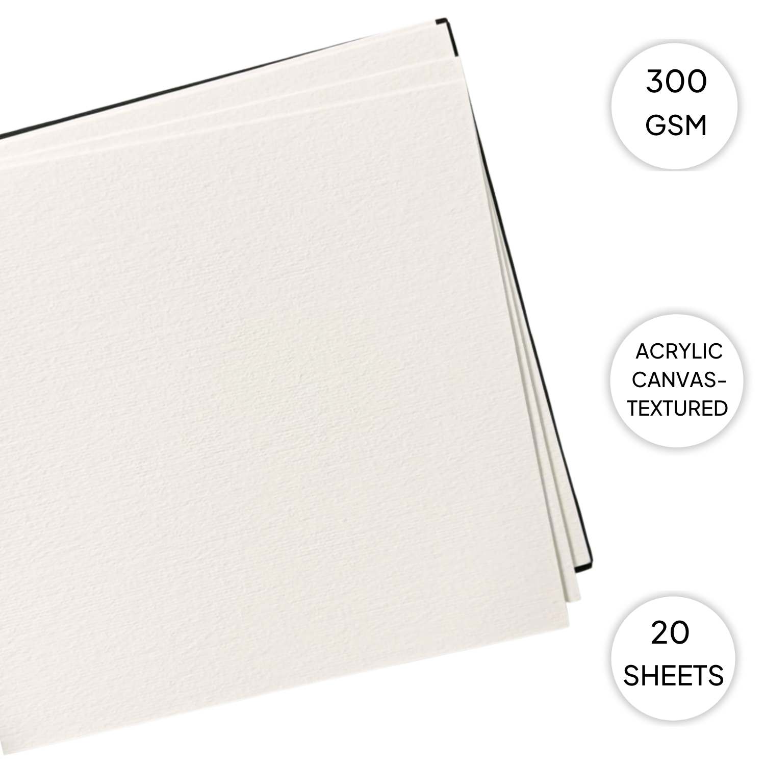 • PREMIUM 300 GSM CANVAS-TEXTURED PAPER: Crafted with 100% lignin-free cellulose, this cold-pressed, heavy-duty paper is designed to support acrylics, oil paints, and mixed media techniques with ease.