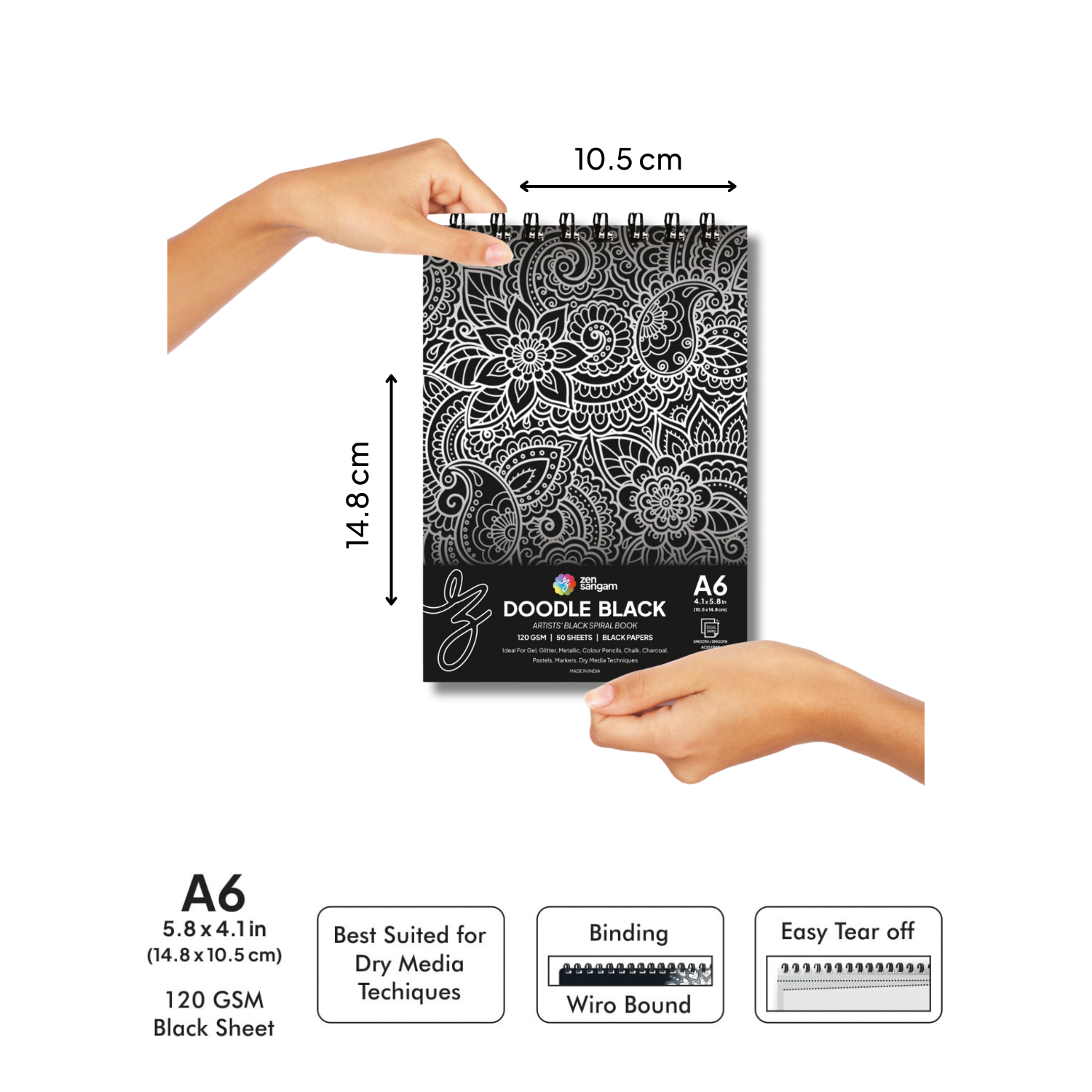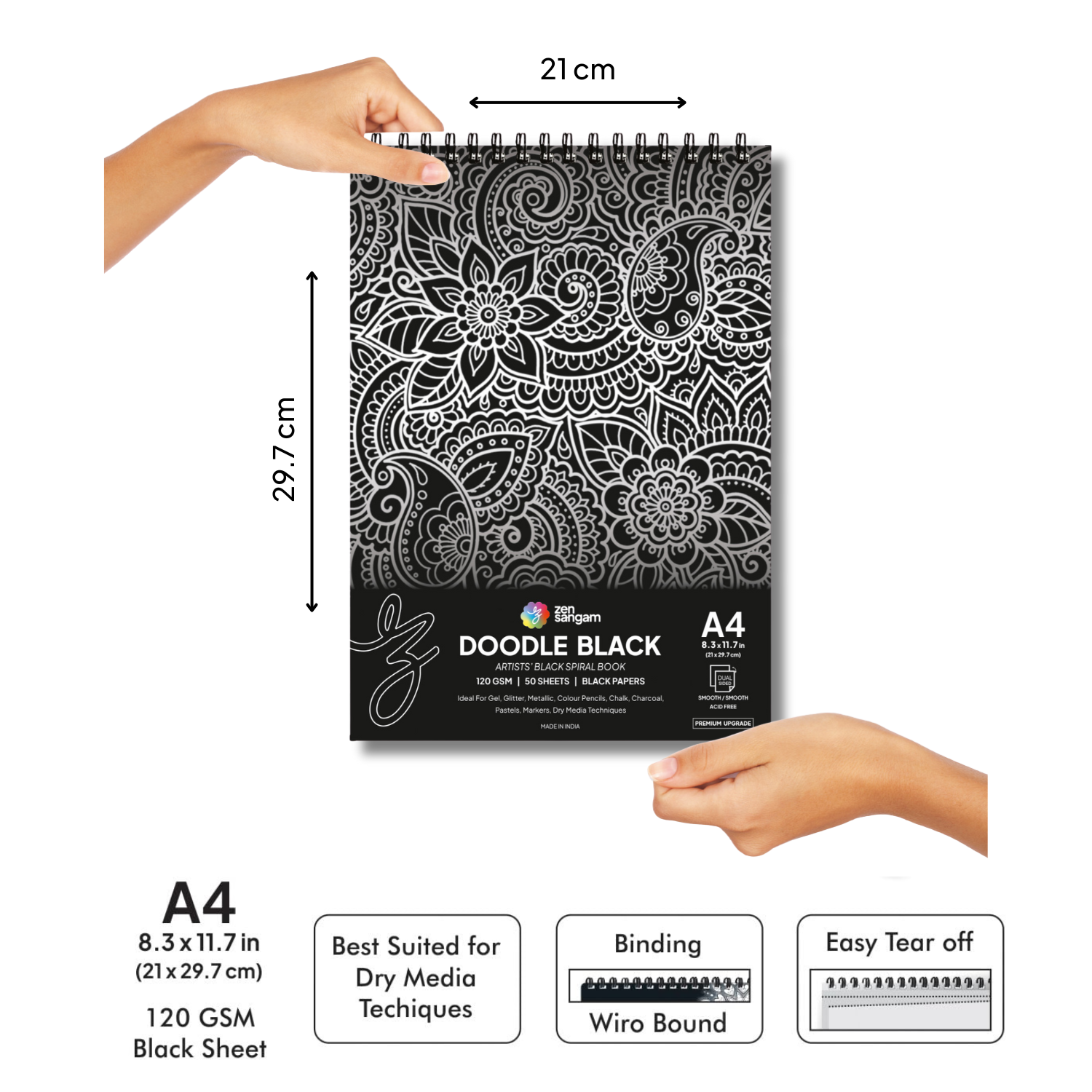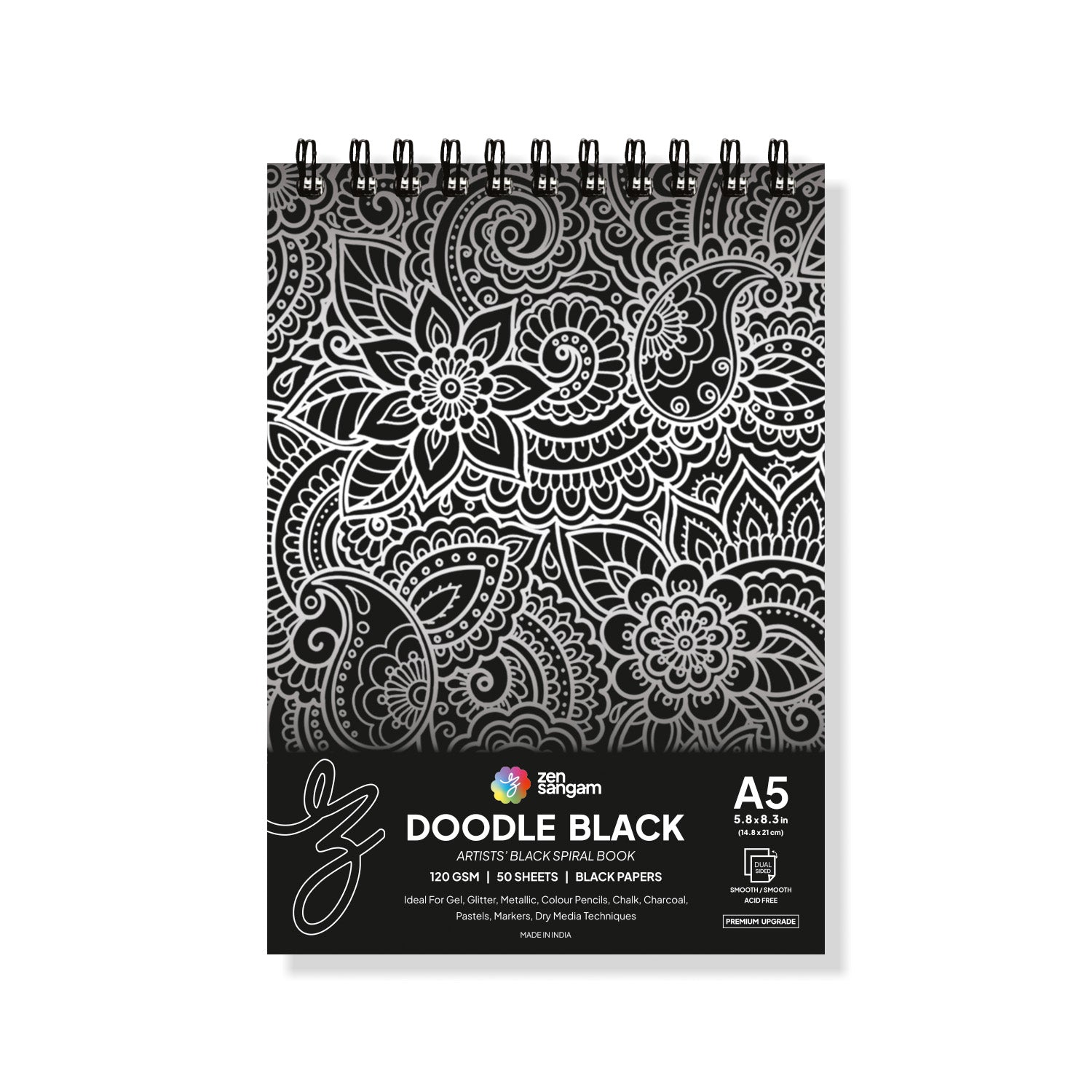 Doodle Black Paper Sketchbook | 120GSM | Smooth Surface | Zen Sangam
