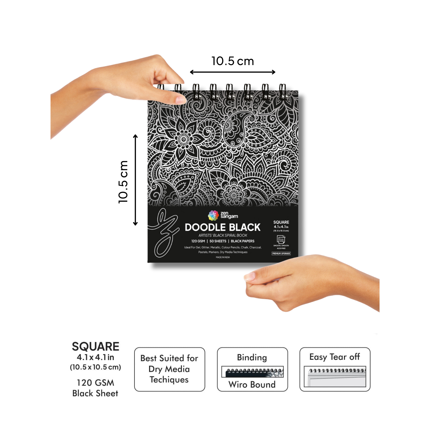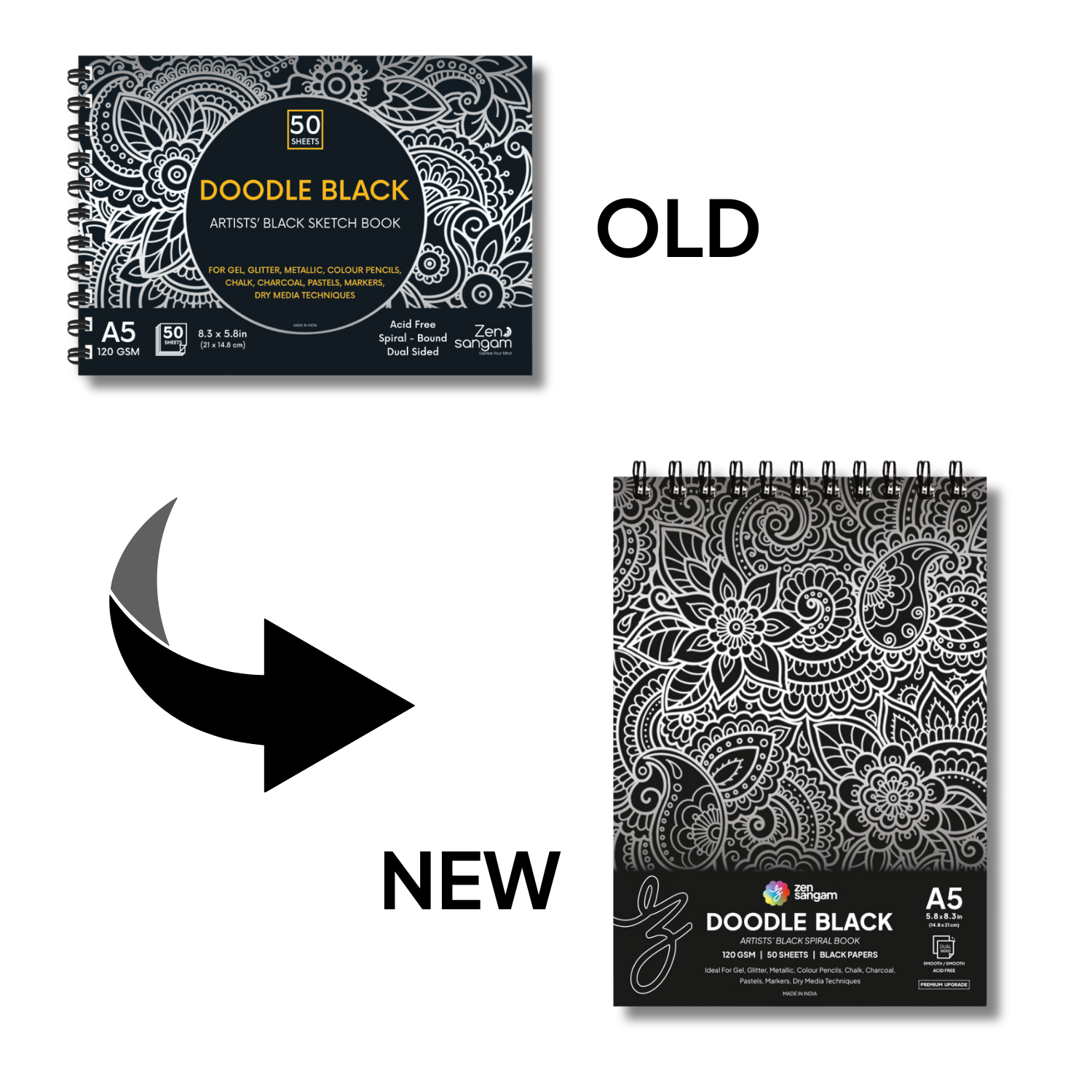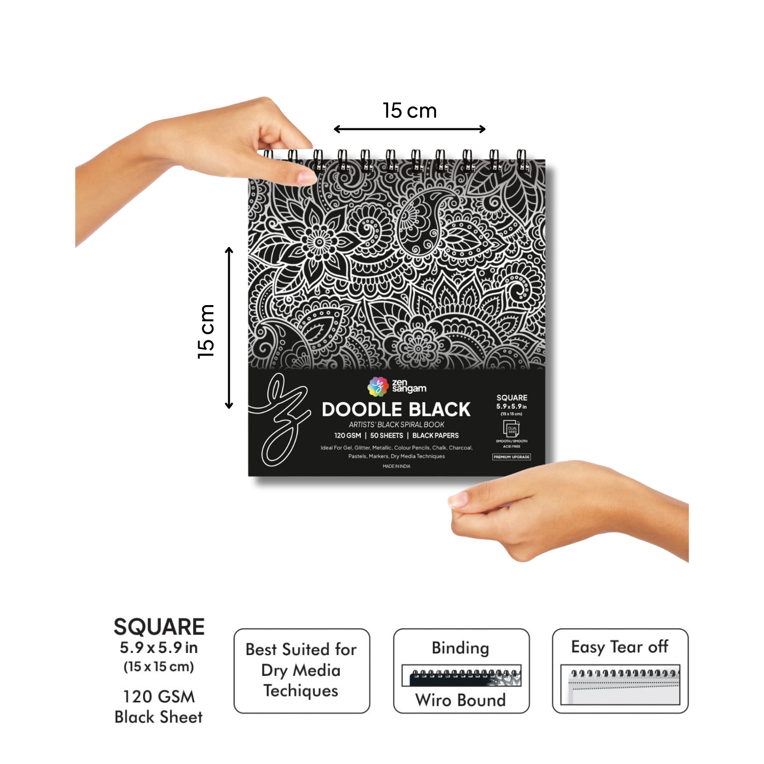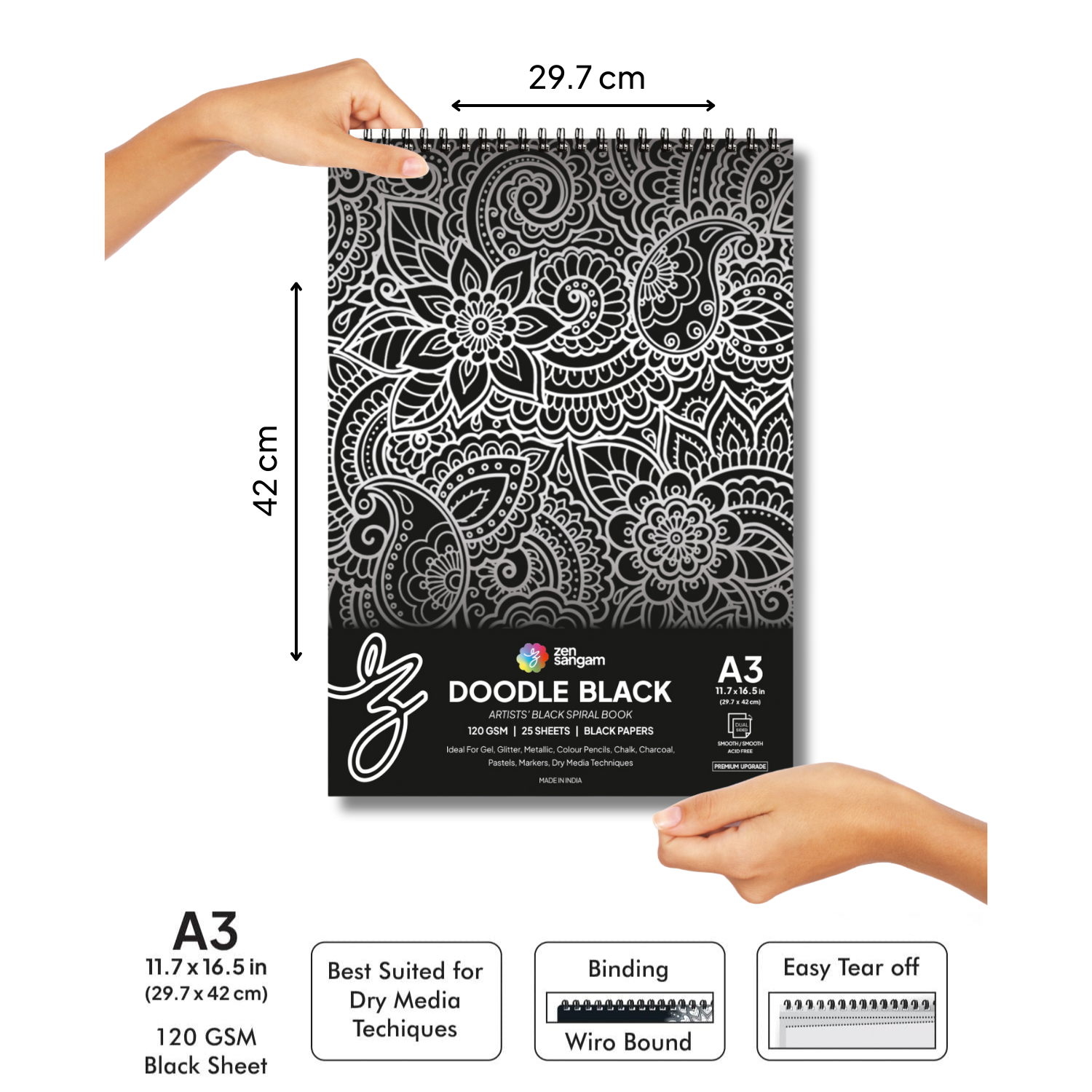 Doodle Black Paper Sketchbook | 120GSM | Smooth Surface | Zen Sangam