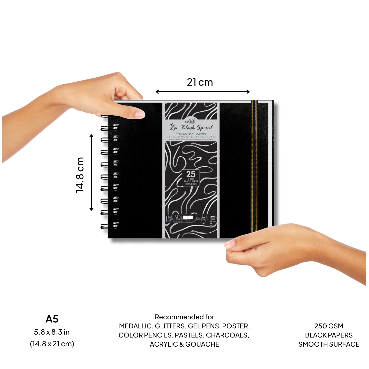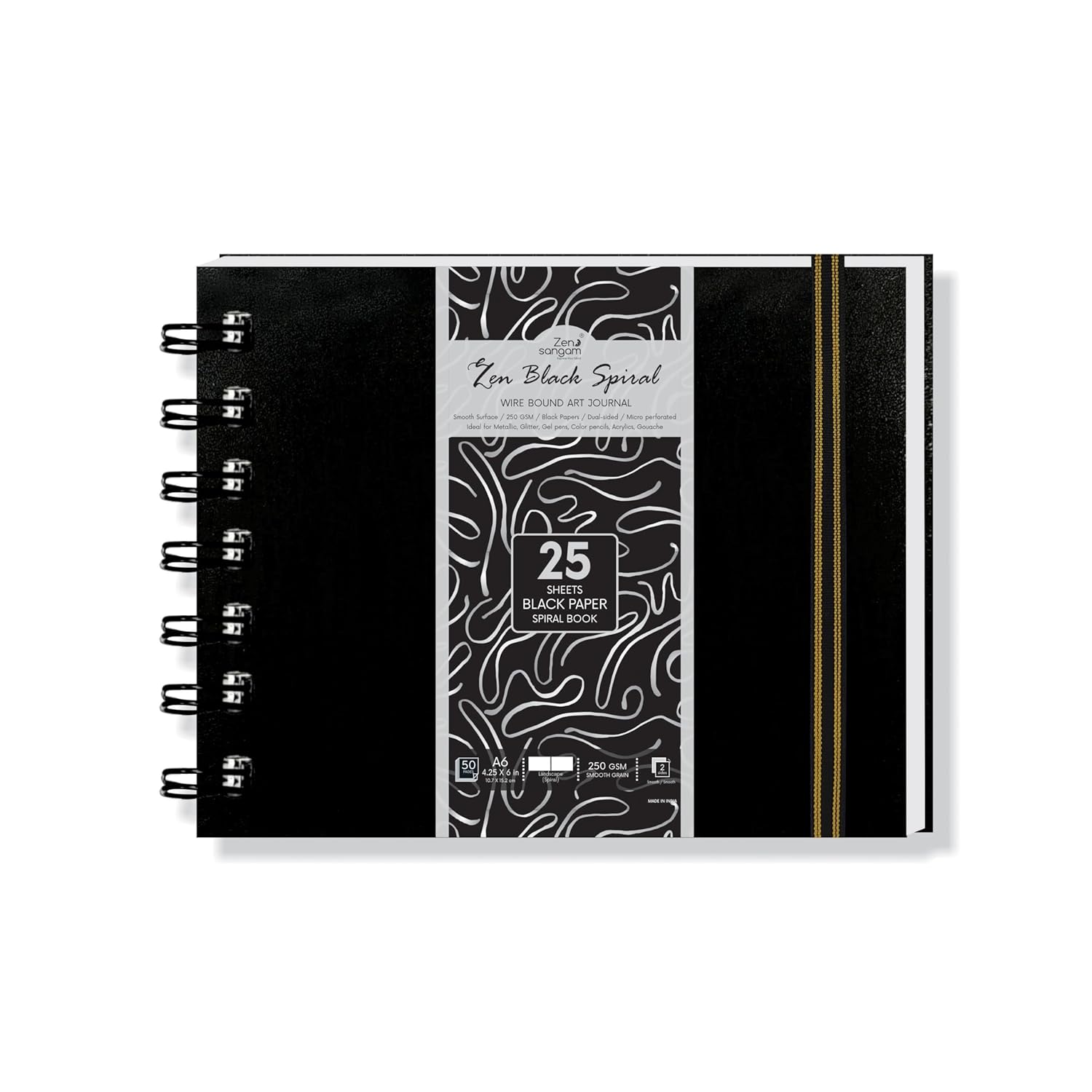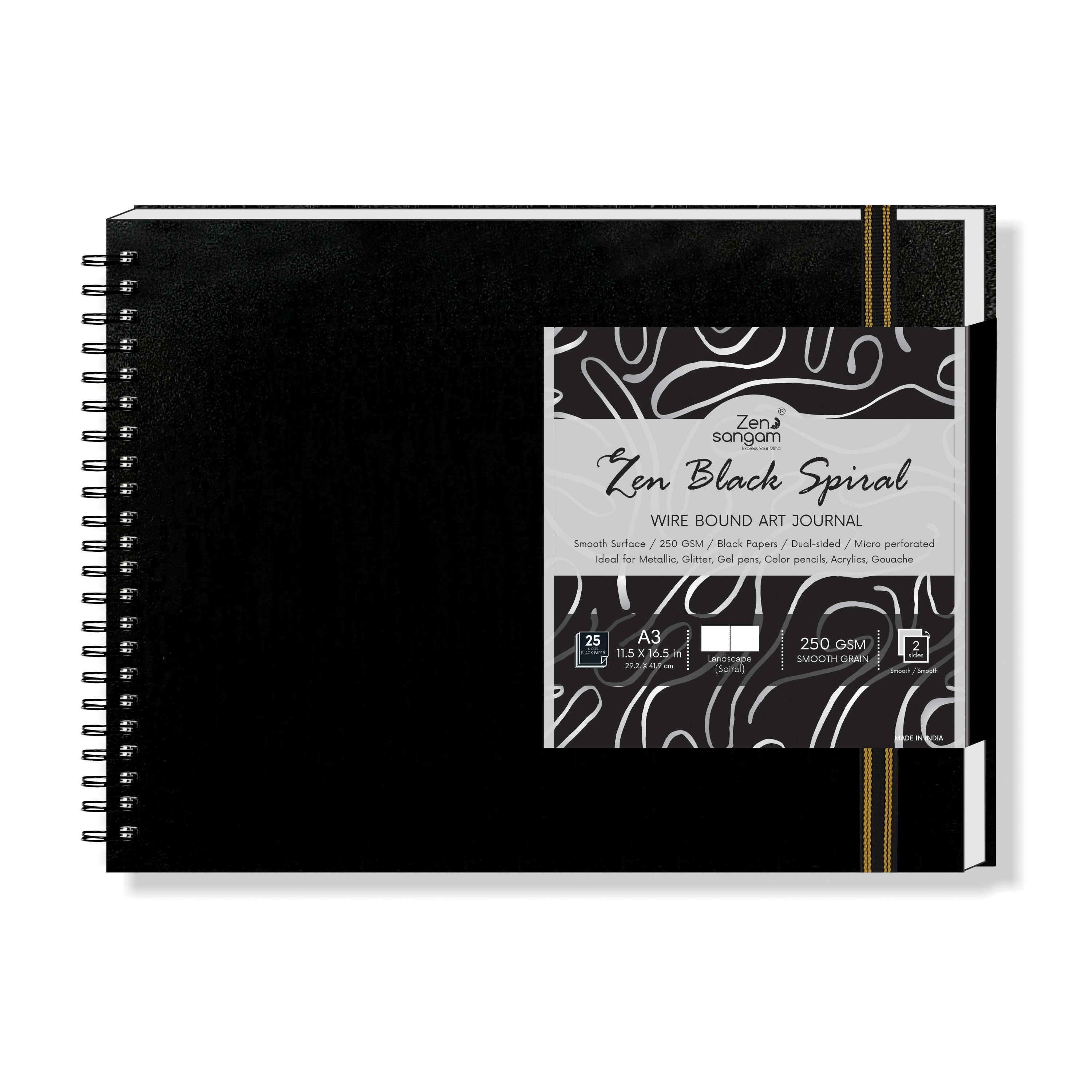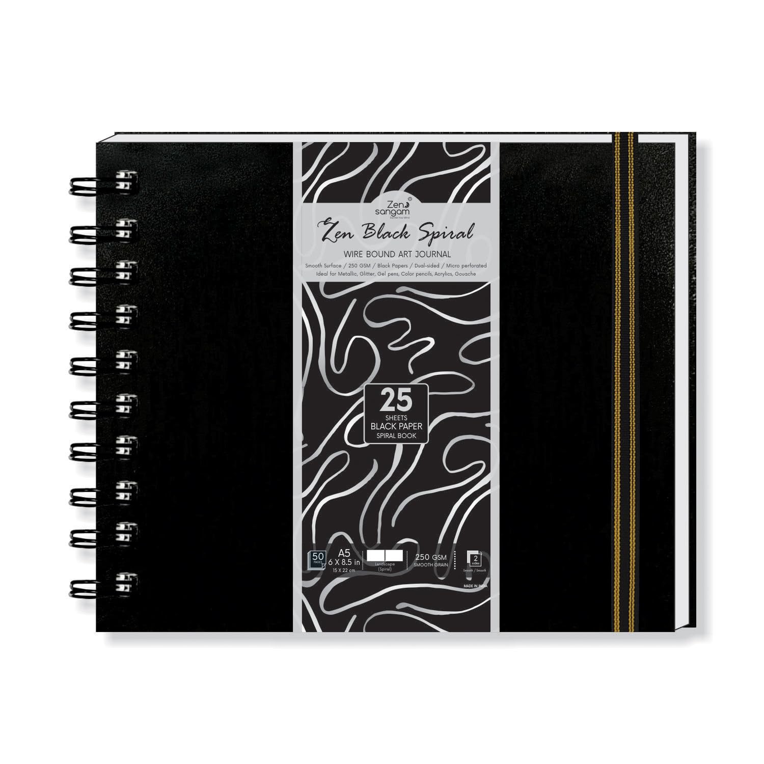 Spiral Black Paper Sketchbook | 250GSM - Smooth Surface | Landscape | Zen Sangam