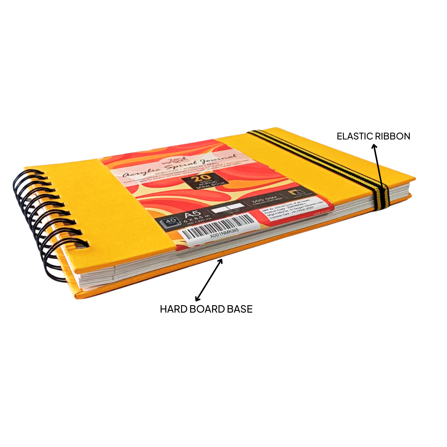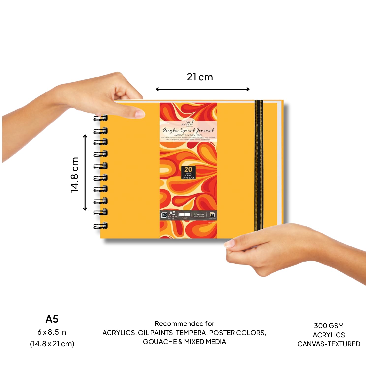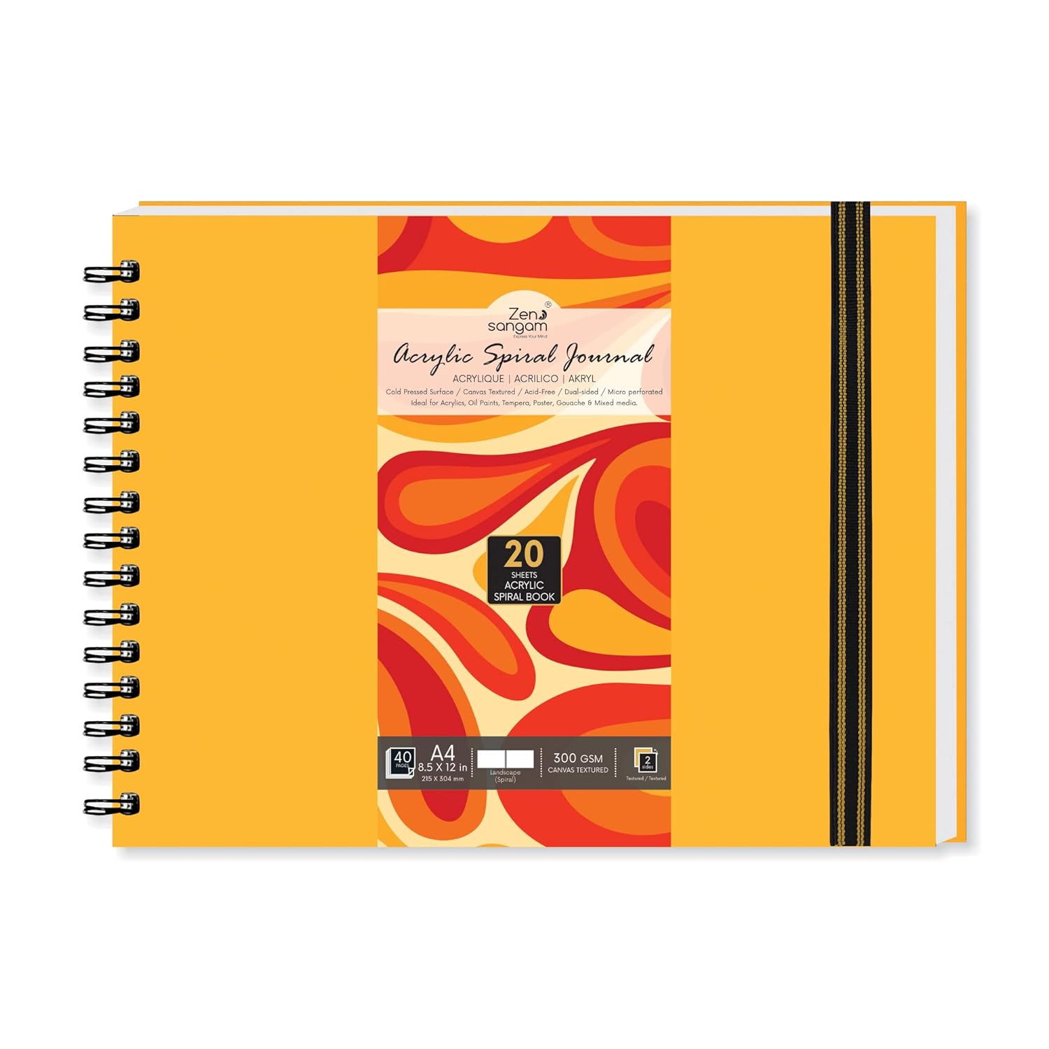 - Landscape Size 300 GSM Acrylics Square Spiral Journal consisting of 20 Sheets (40 Pages) that are Canvas Textured and Cold Pressed.