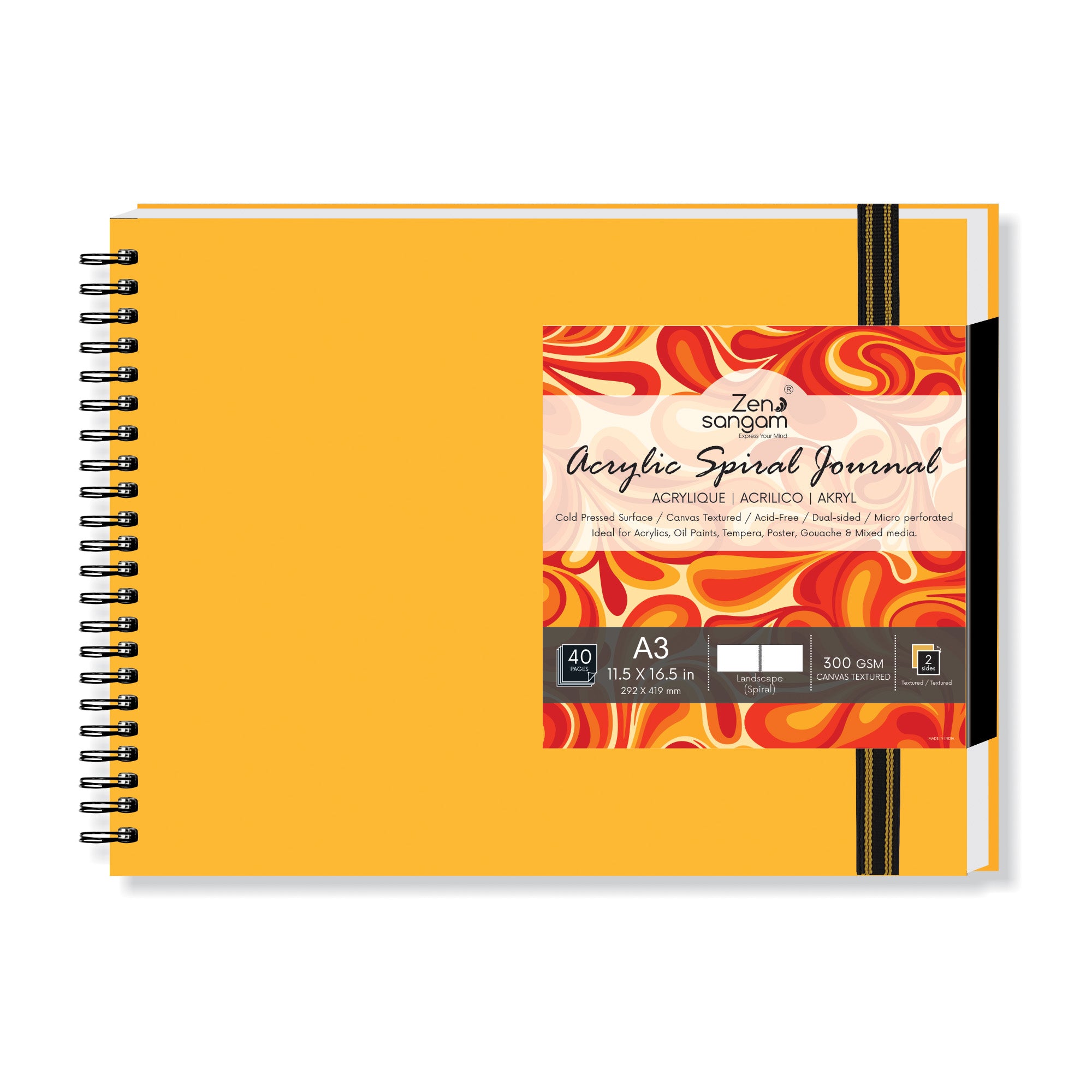 Spiral Acrylic Journal | Landscape - Golden Yellow | 300 GSM - Canvas Texture | Zen Sangam