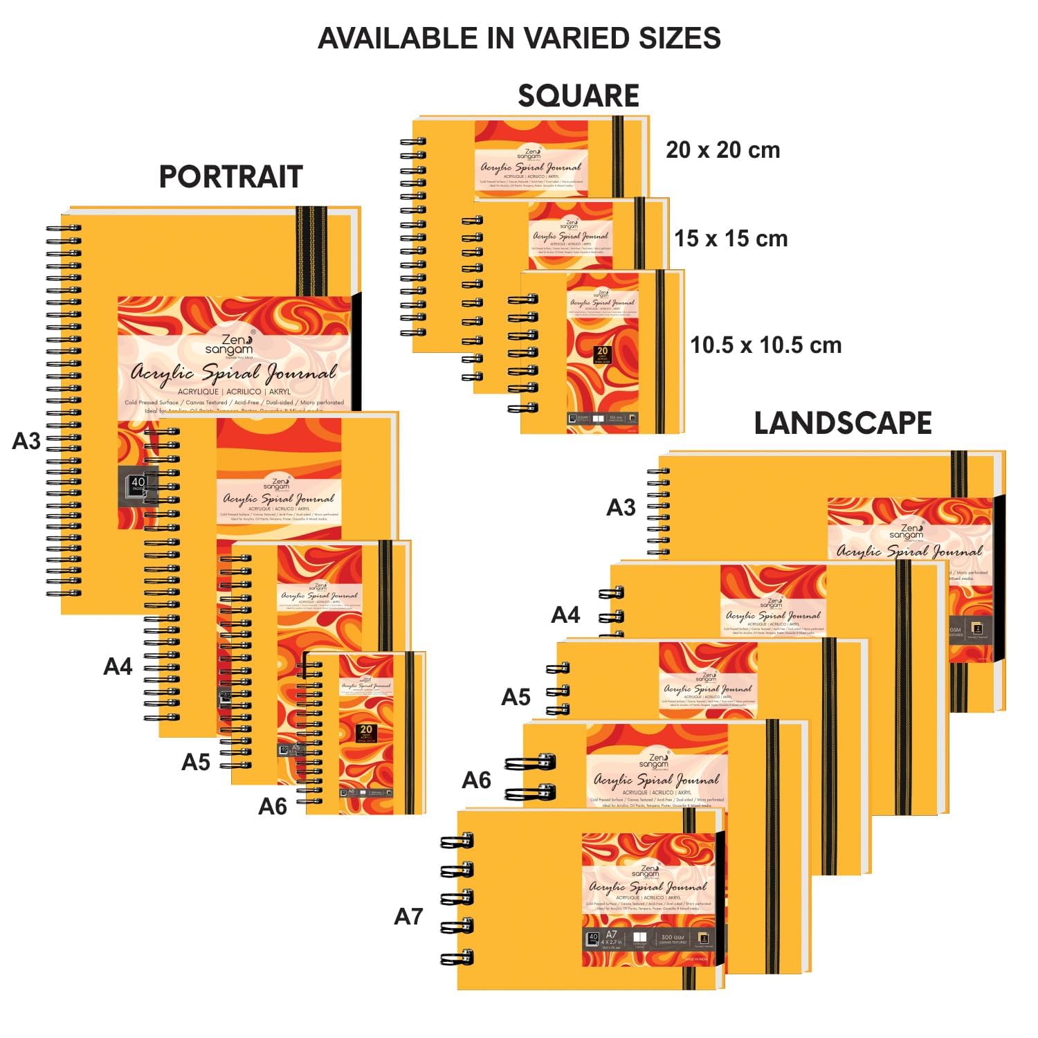 - AVAILABLE IN MULTIPLE SIZES: Landscape - A3,A4, A5, A6,A7, Portrait - A3, A4, A5, A6, Square - 20 x 20cm, 15 x 15cm, 10.5 x 10.5cm. MULTIPLE COLOR ALSO: Golden Yellow, Black.