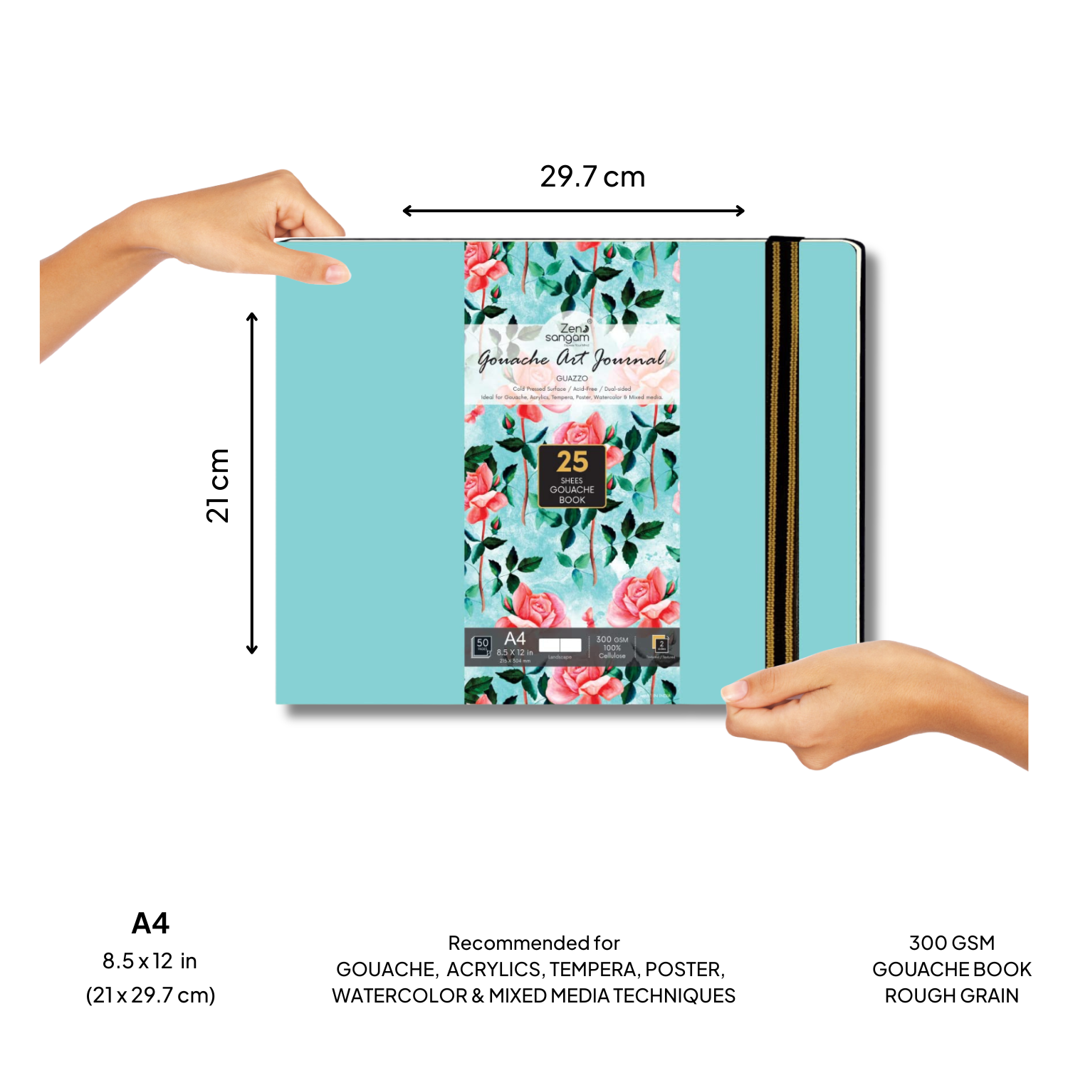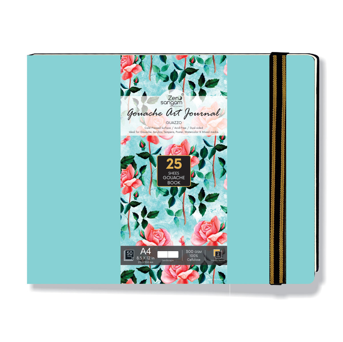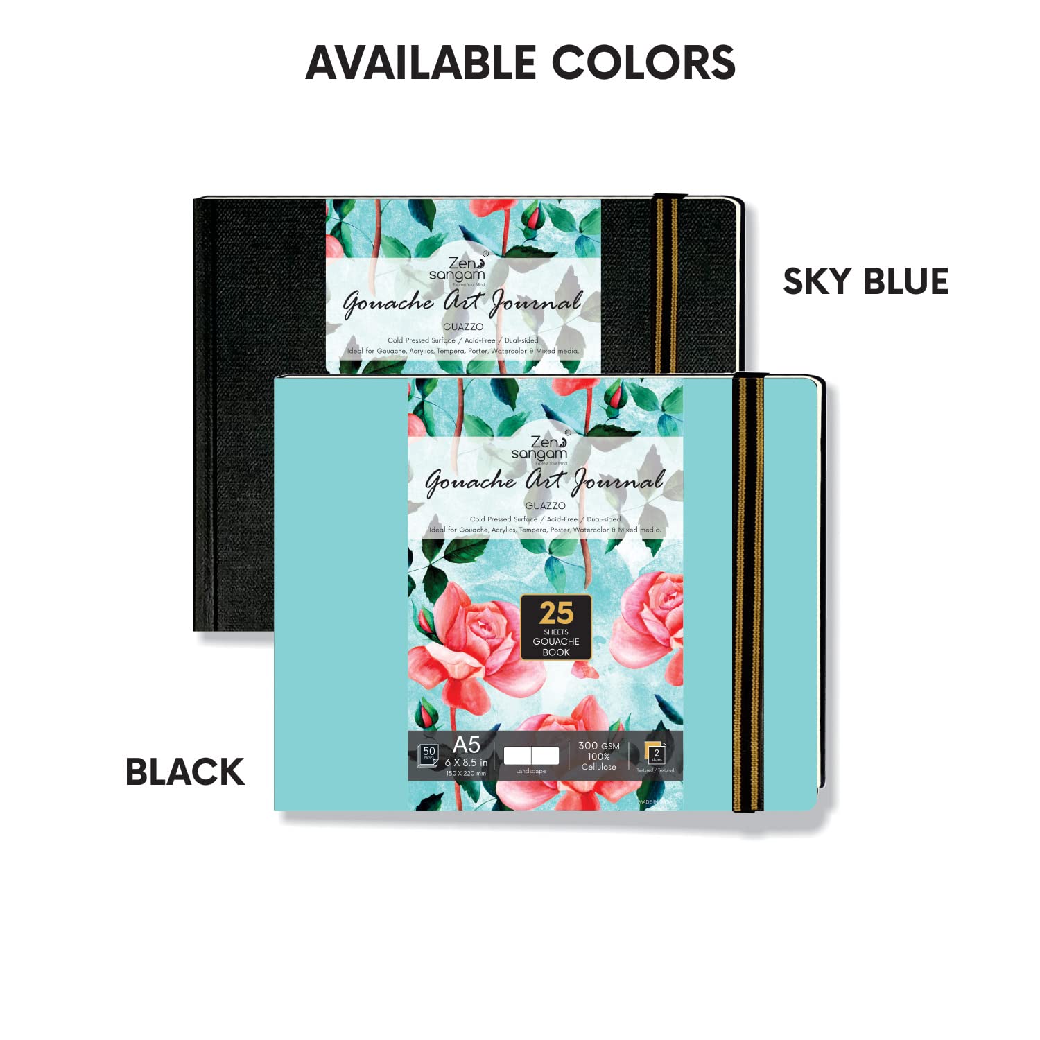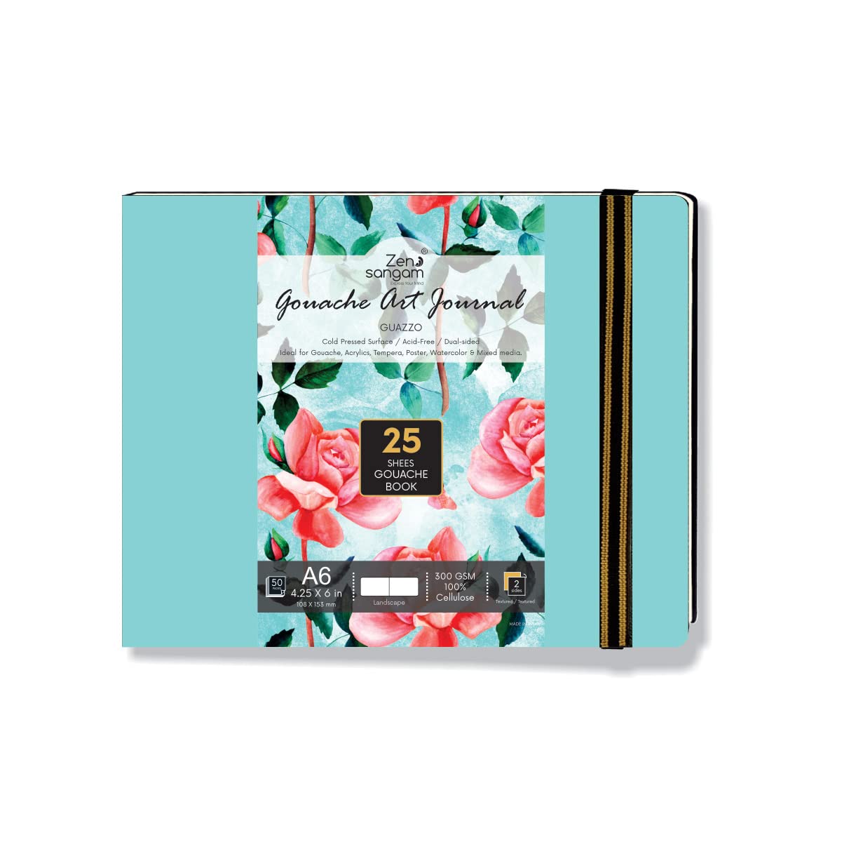 • Sky Blue 300 GSM Gouache Landscape Journal consisting of 25 Sheets (50 Pages) that are Cold Pressed.