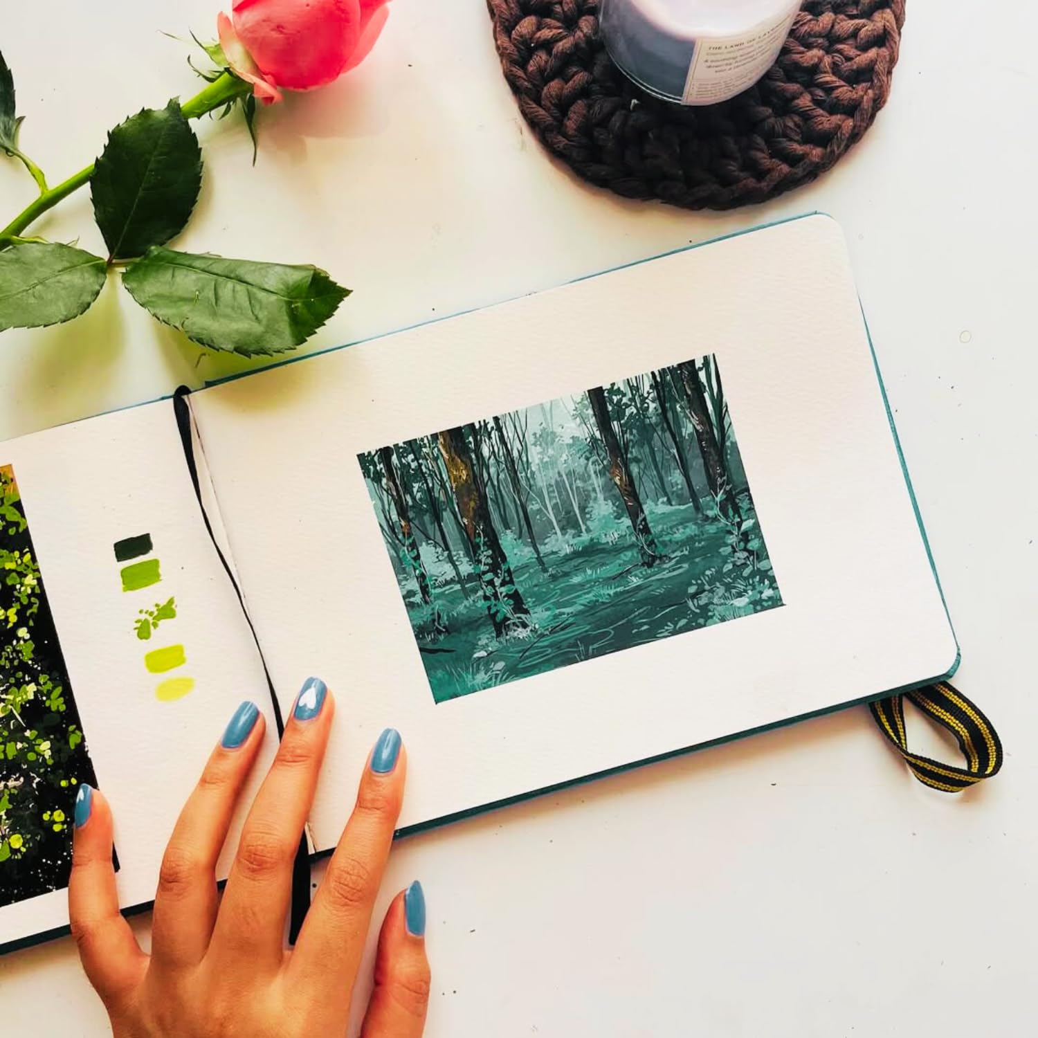 • STYLISH & TRAVEL-FRIENDLY DESIGN: Comes with a sleek, Black/Sky Blue cover and a Golden Yellow elastic ribbon to secure pages while on the go. Its sturdy construction makes it an excellent companion for plein air painting and studio work.