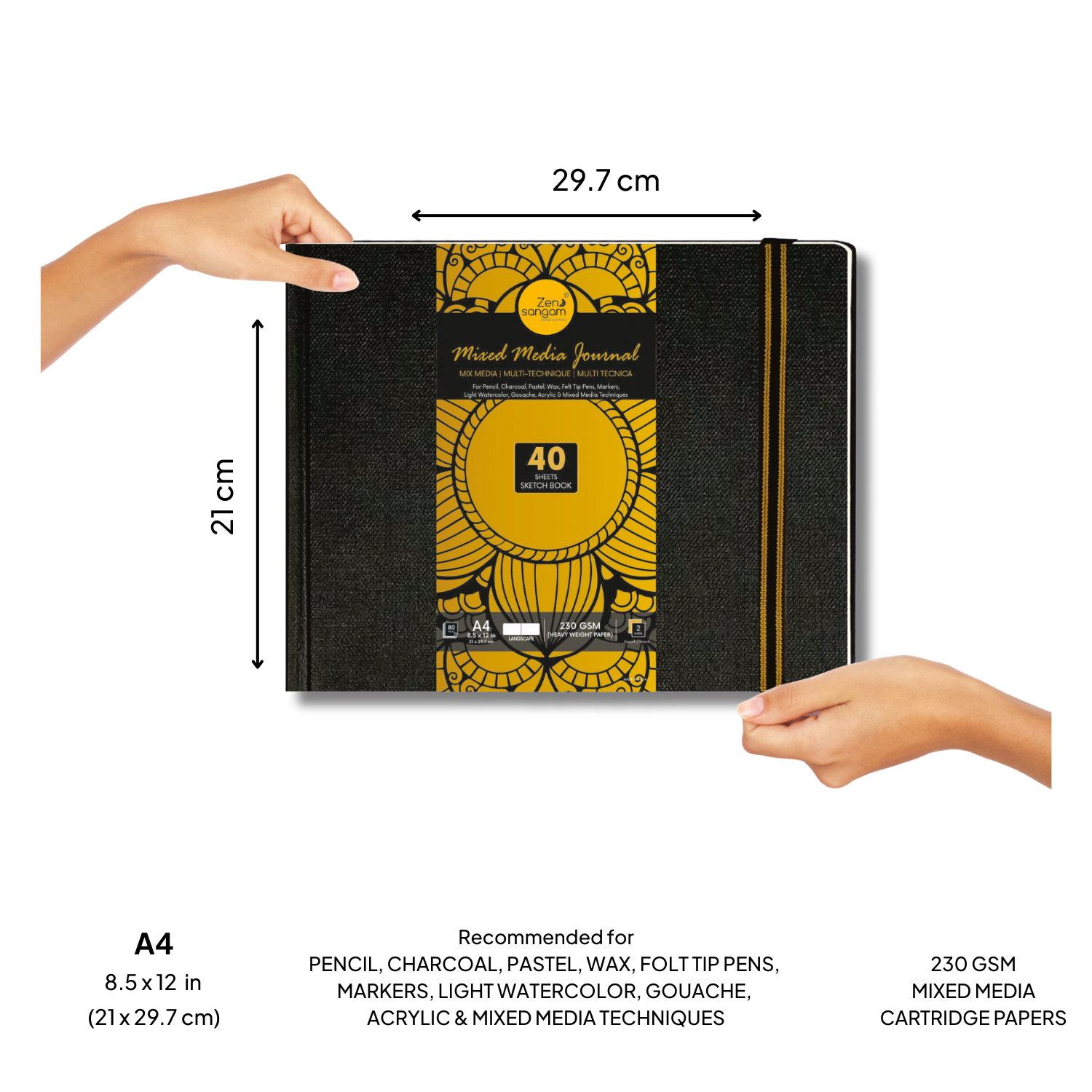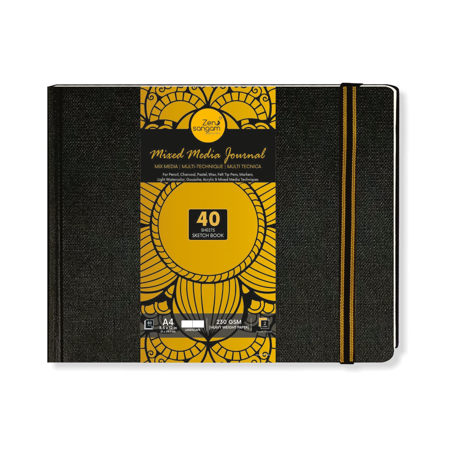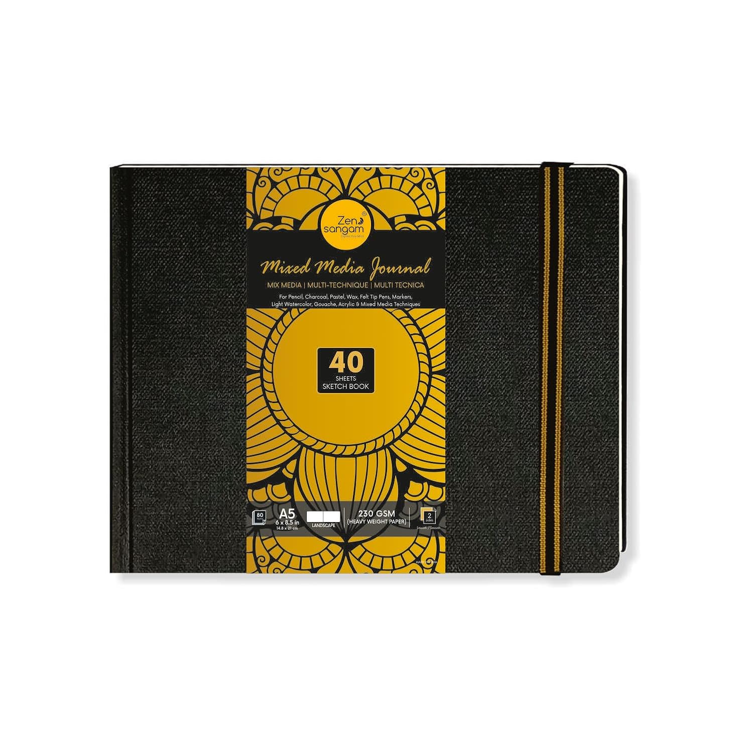 - 230 GSM, Mixed Media Landscape Journal consisting of 40 Sheets (80 Pages) that are of Cartridge White Shade.