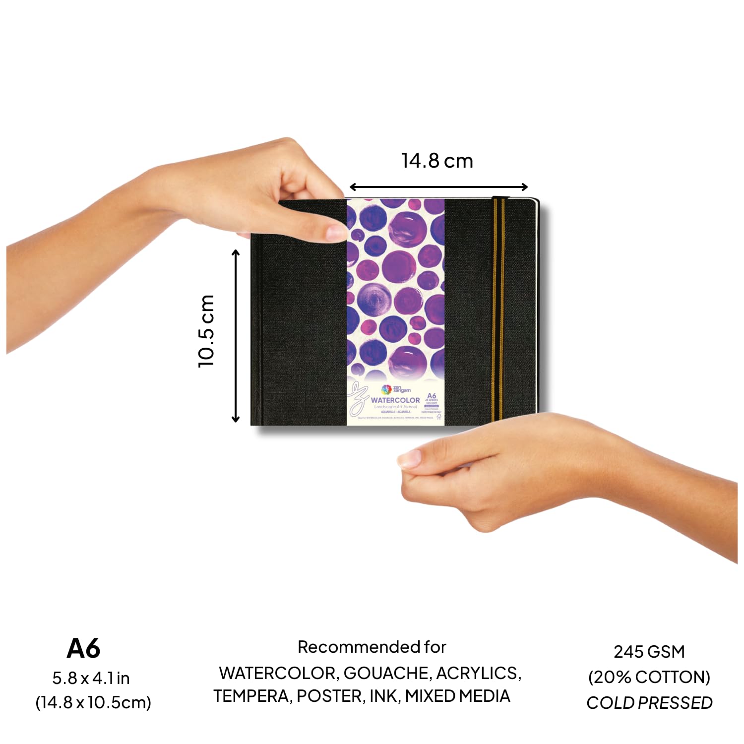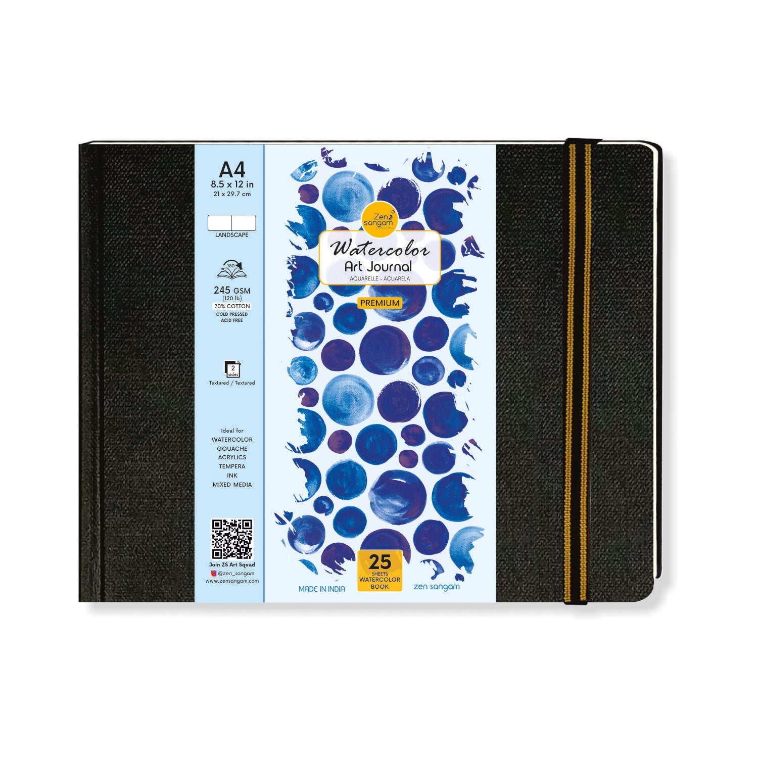 Watercolor Art Journal | 245GSM | 20% Cotton | Landscape Black Cover | Zen Sangam