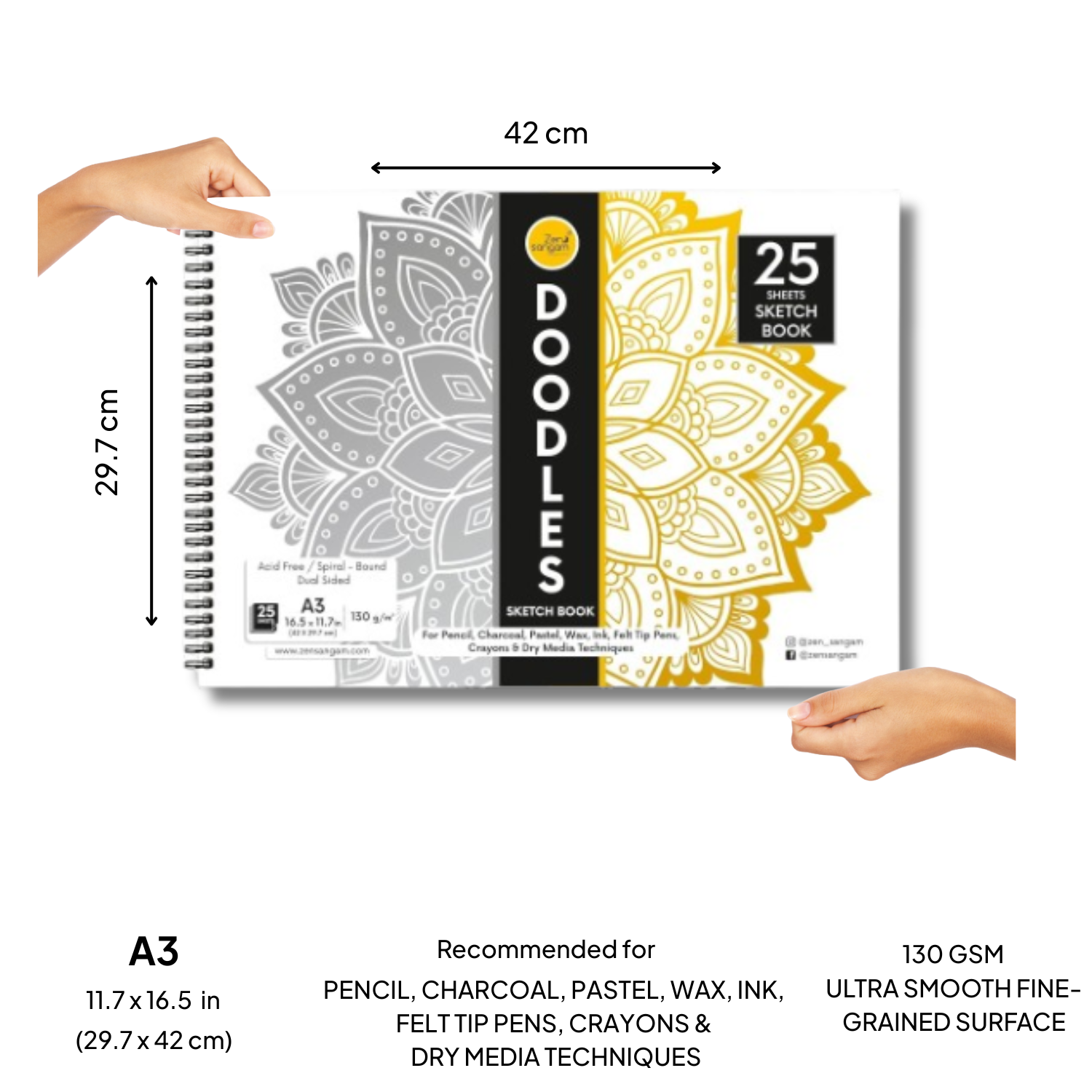 Spiral Doodle Sketchbook | 130 GSM - Dry Media | Zen Sangam