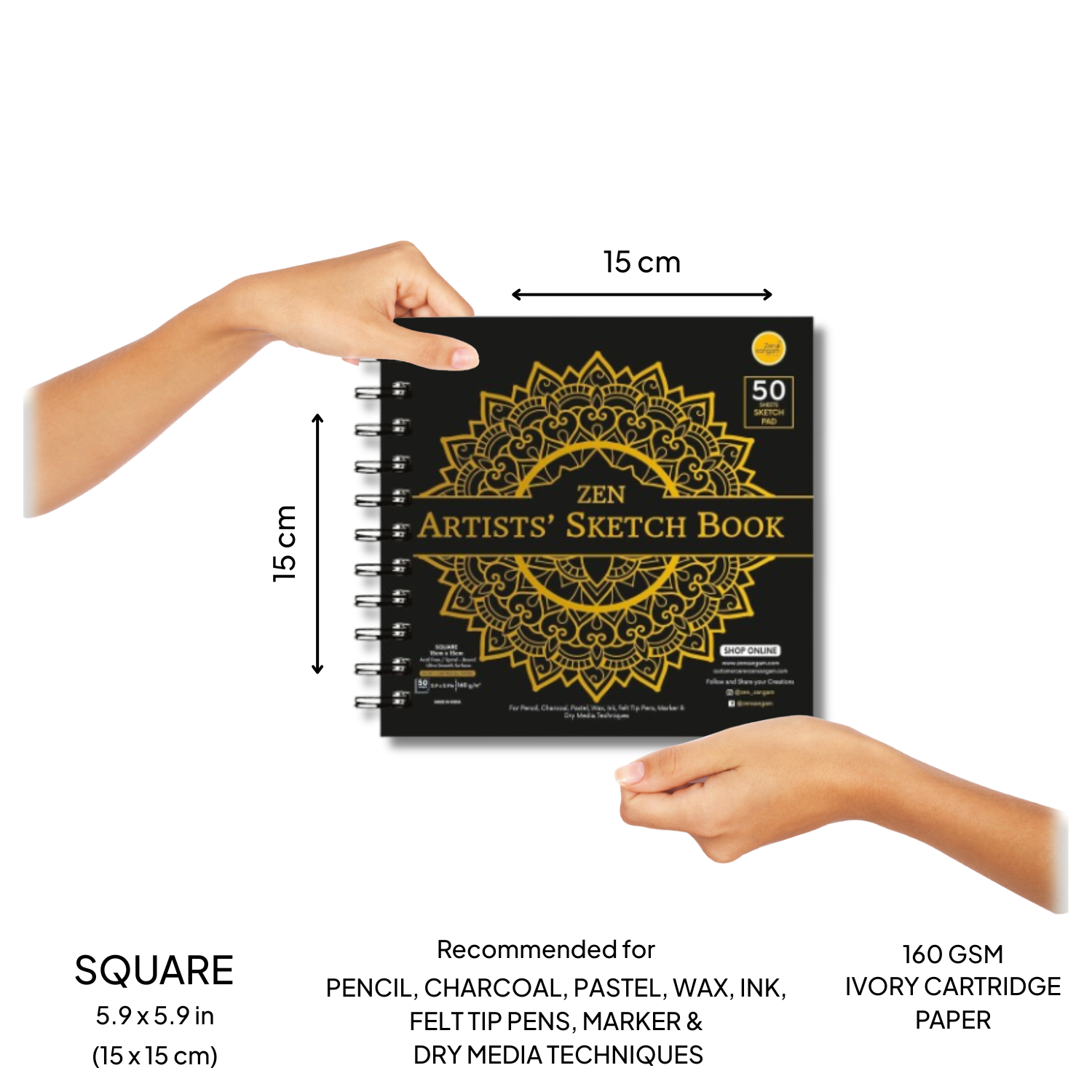 Square Drawing Sketch Book | 160 GSM - Dry Media | Zen Sangam