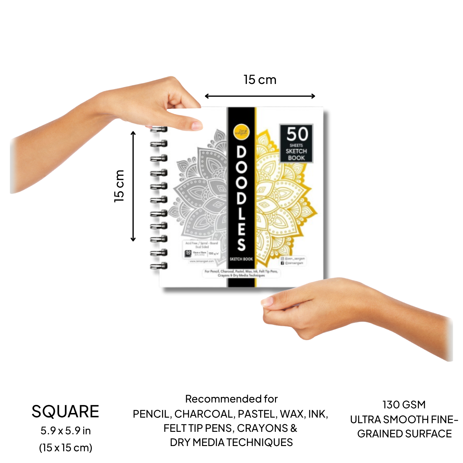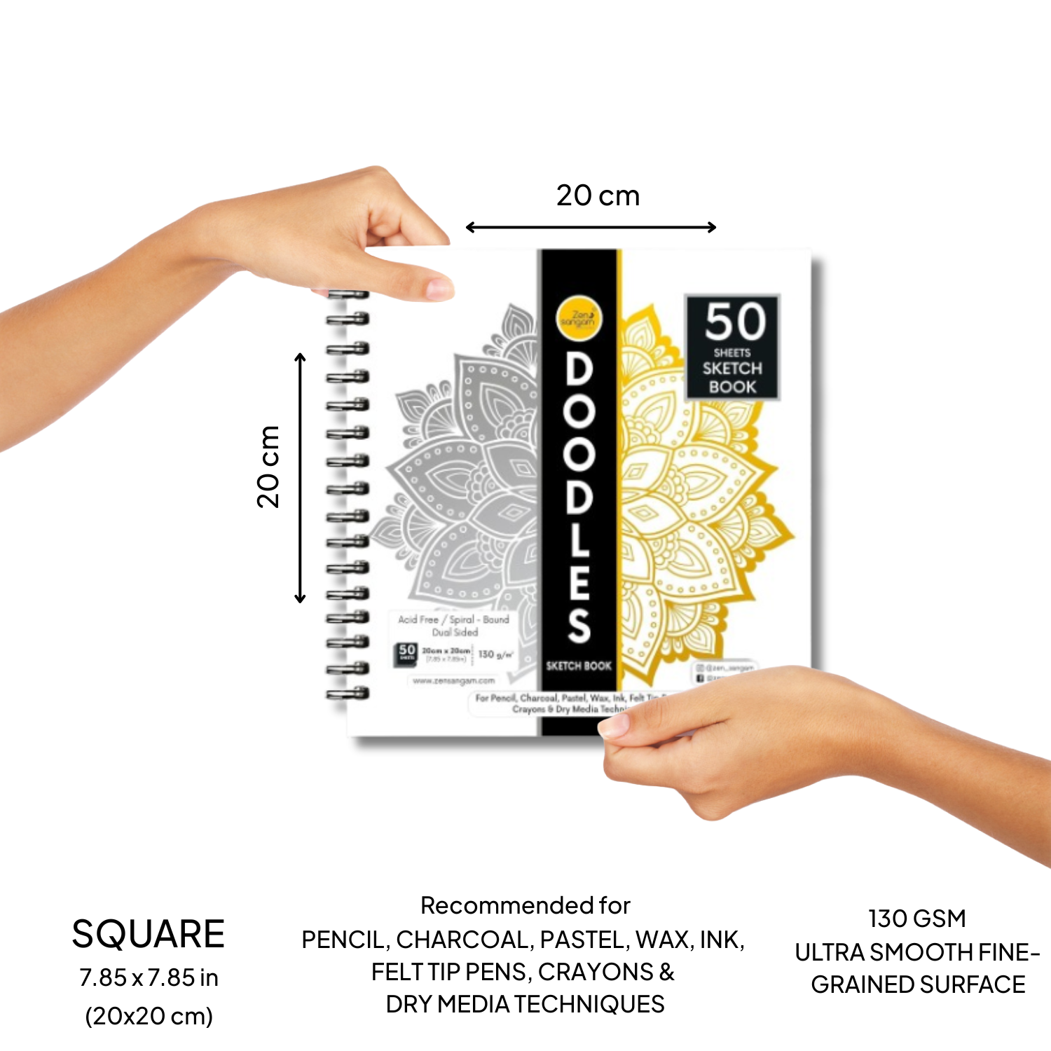 Square Spiral Doodle Sketchbook | 130 GSM - Dry Media | Zen Sangam