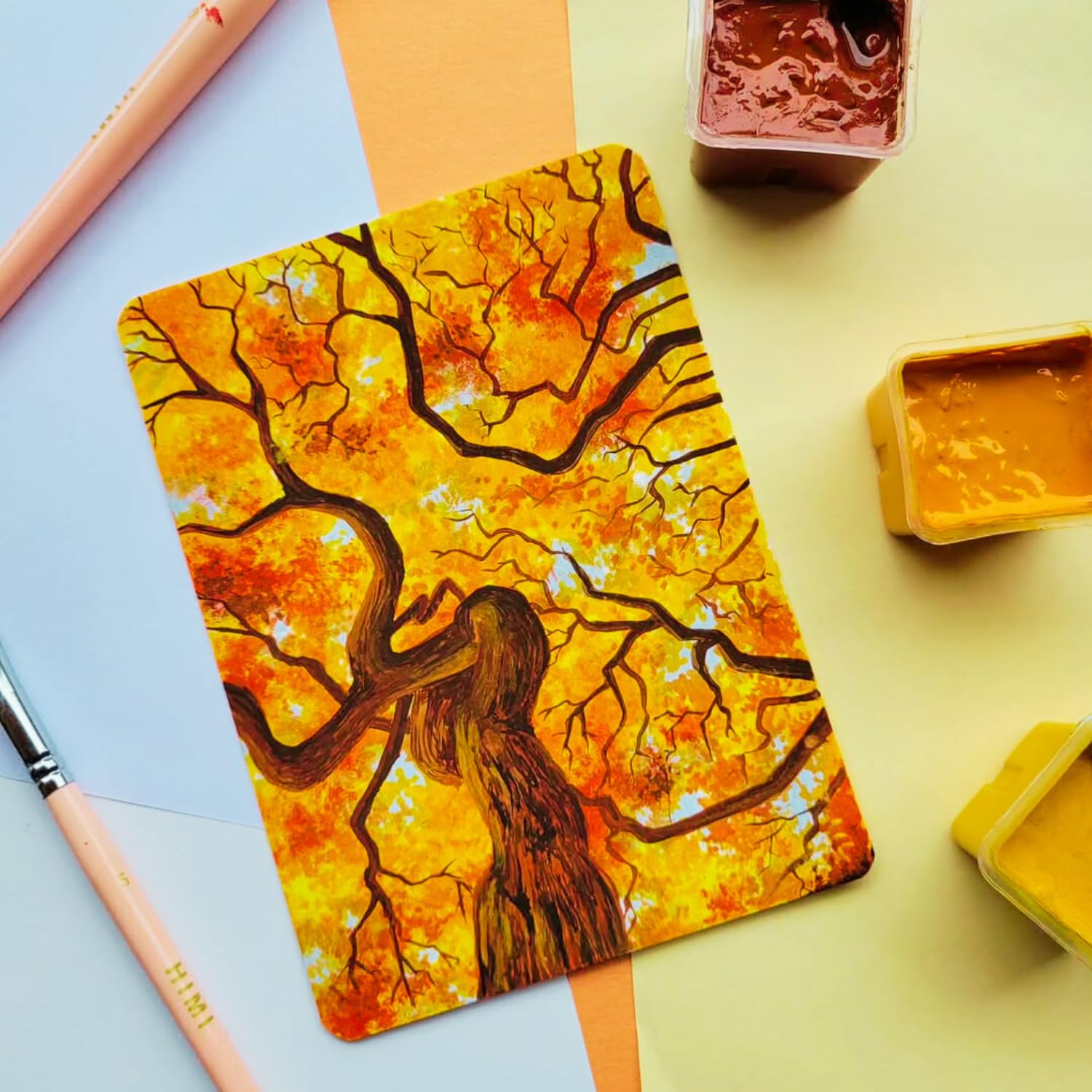 Acrylics, Poster Colours, Tempera Paints, Brush Pens, Markers