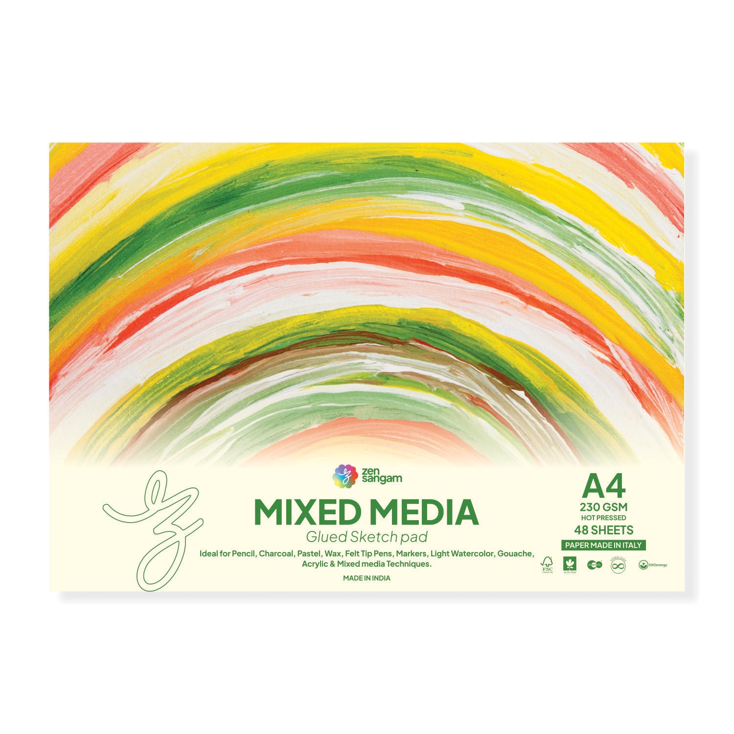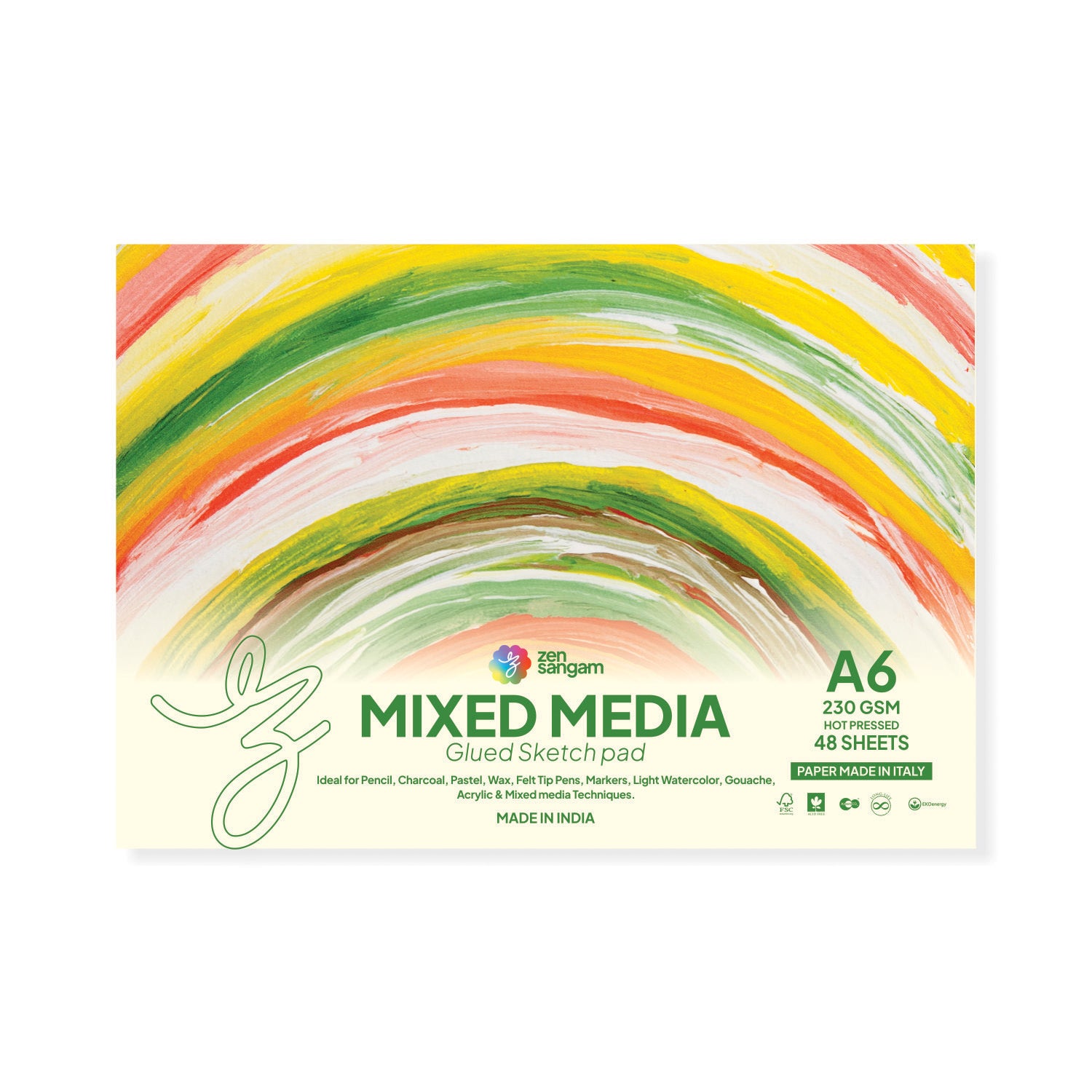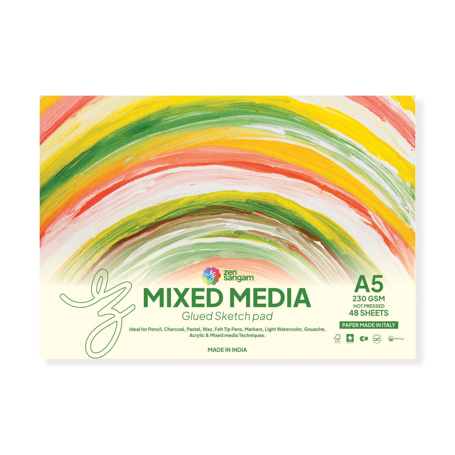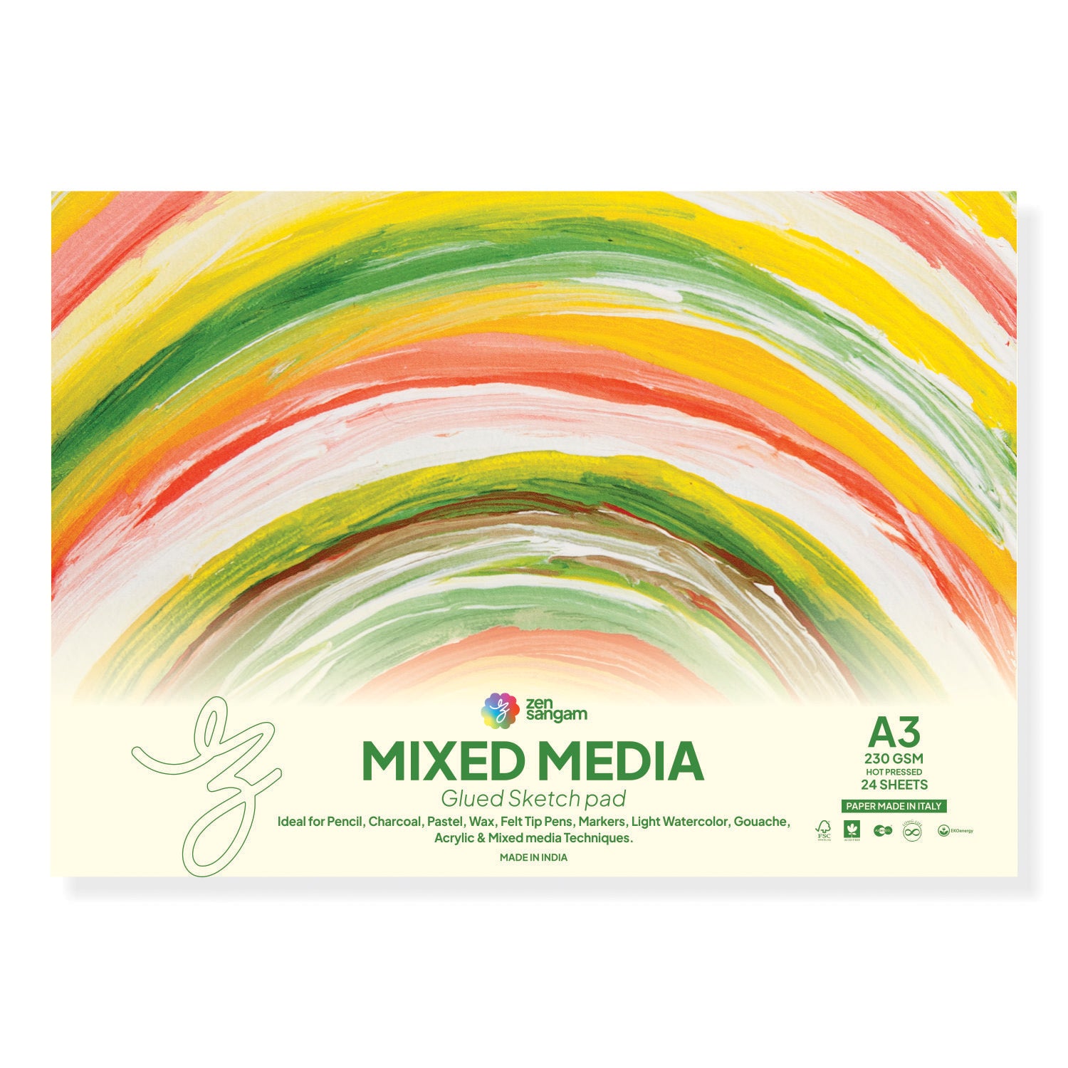 Mixed Media Glued Sketch Pad | 230GSM 100% Cellulose | Medium Grain | Zen Sangam