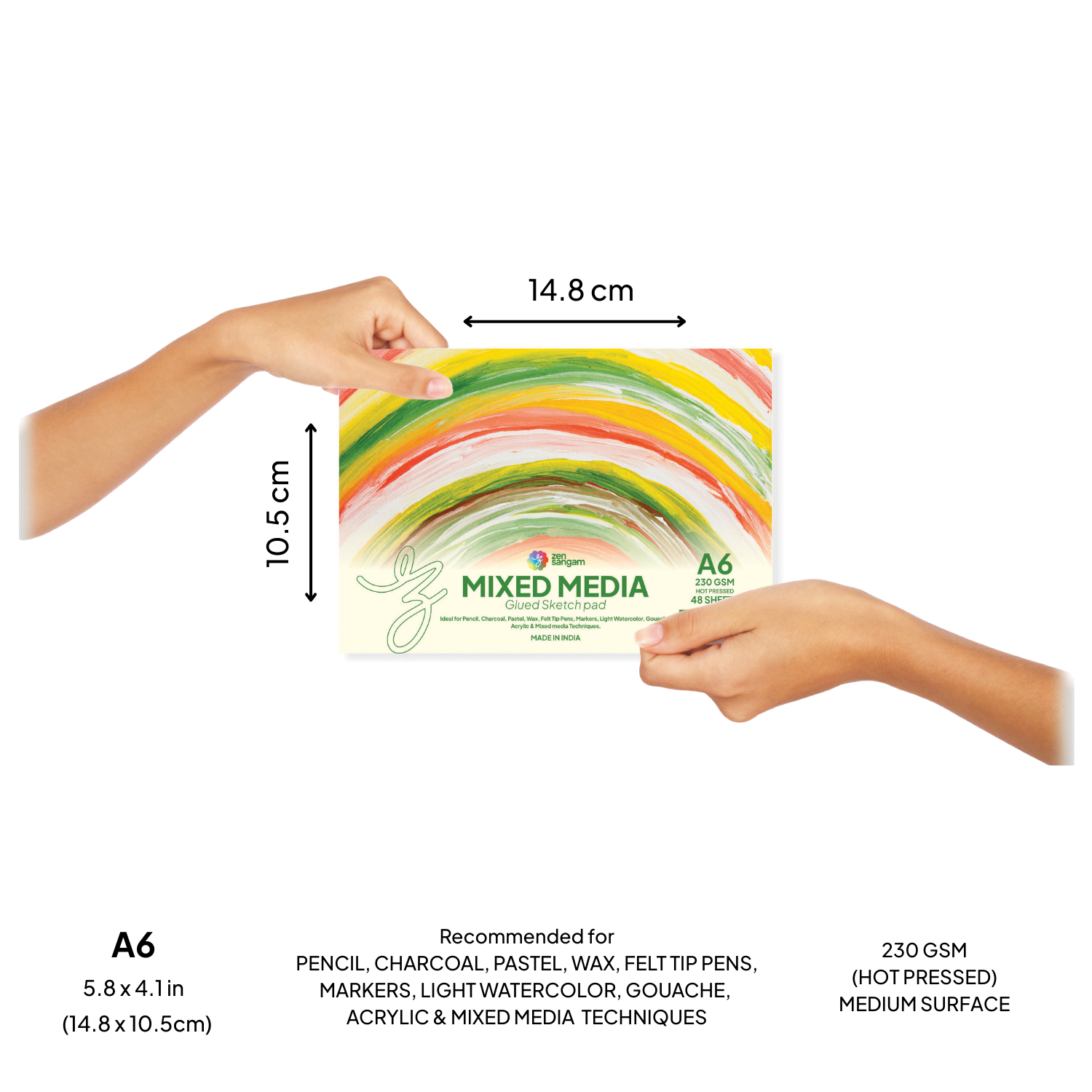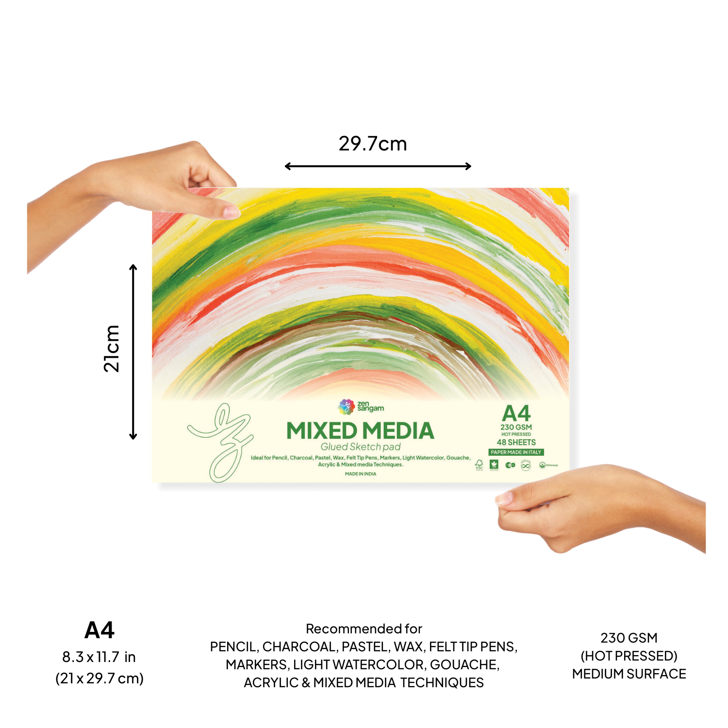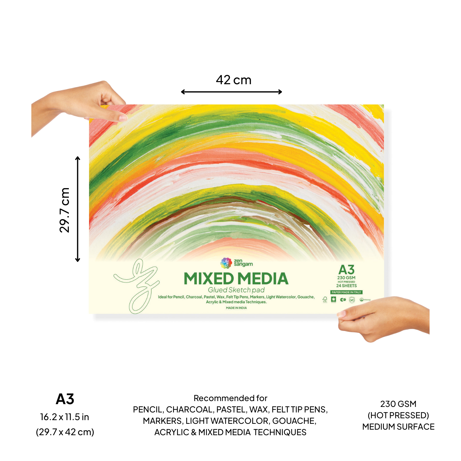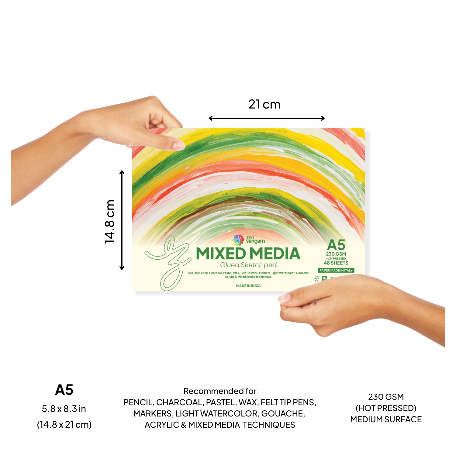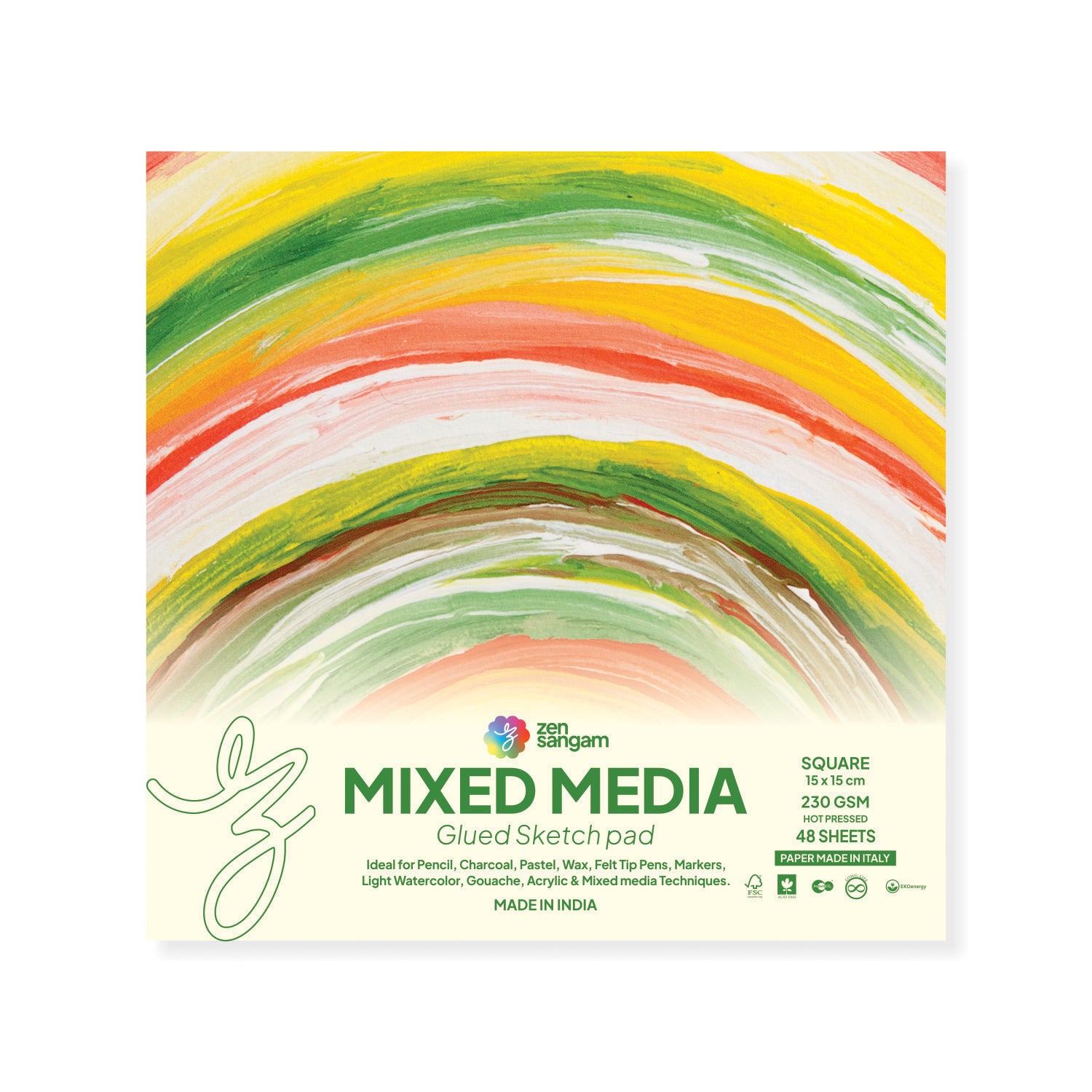 Mixed Media Glued Sketch Pad | 230GSM 100% Cellulose | Medium Grain | Zen Sangam