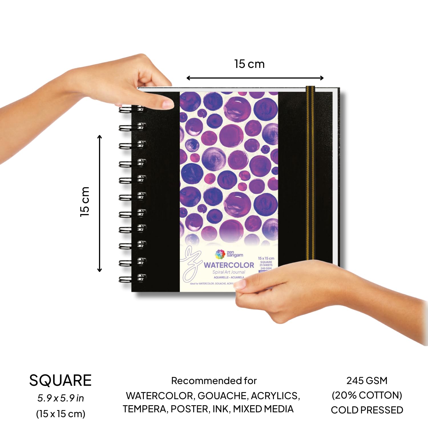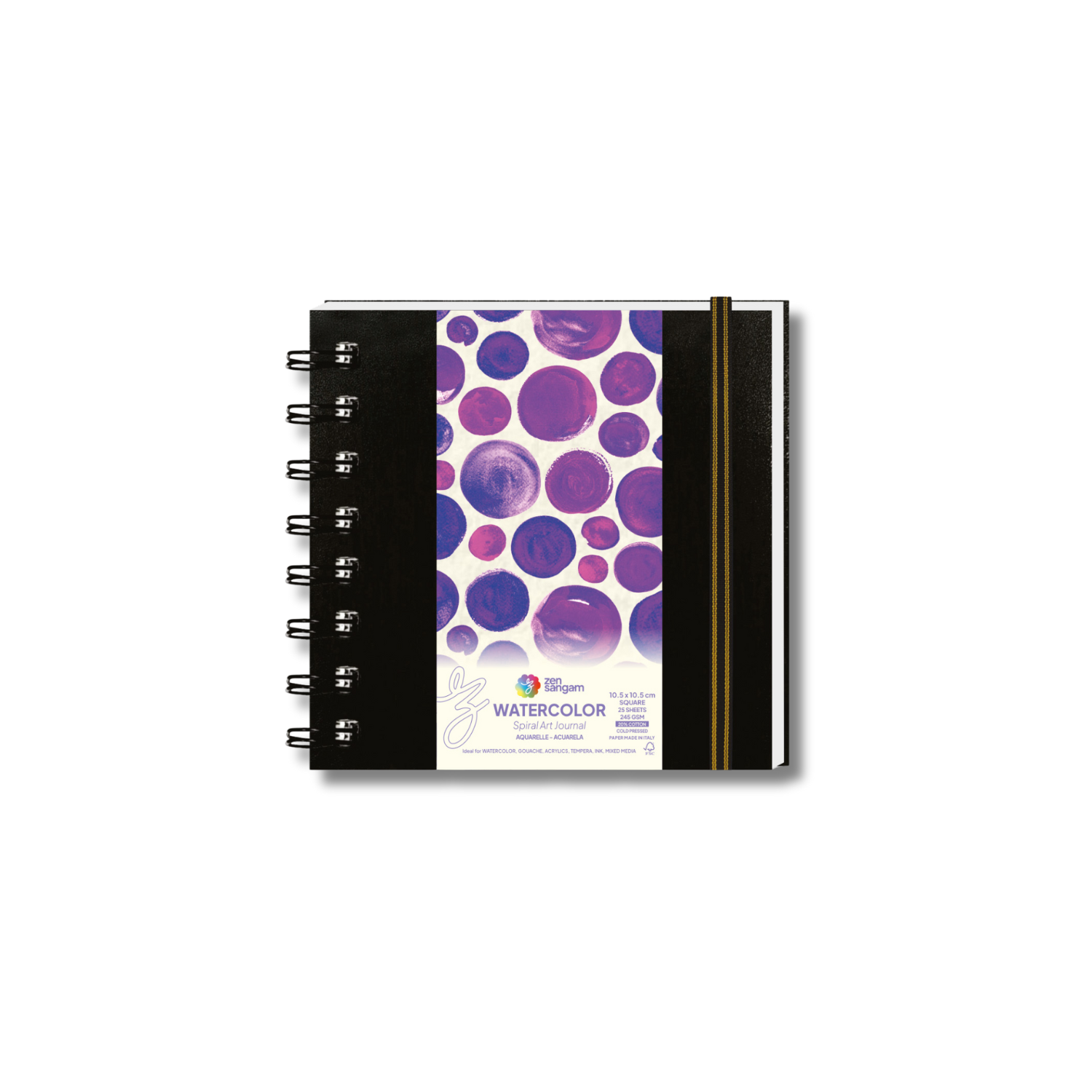 Watercolor Spiral Journal | 245GSM - 20% Cotton | Square Black Cover | Zen Sangam
