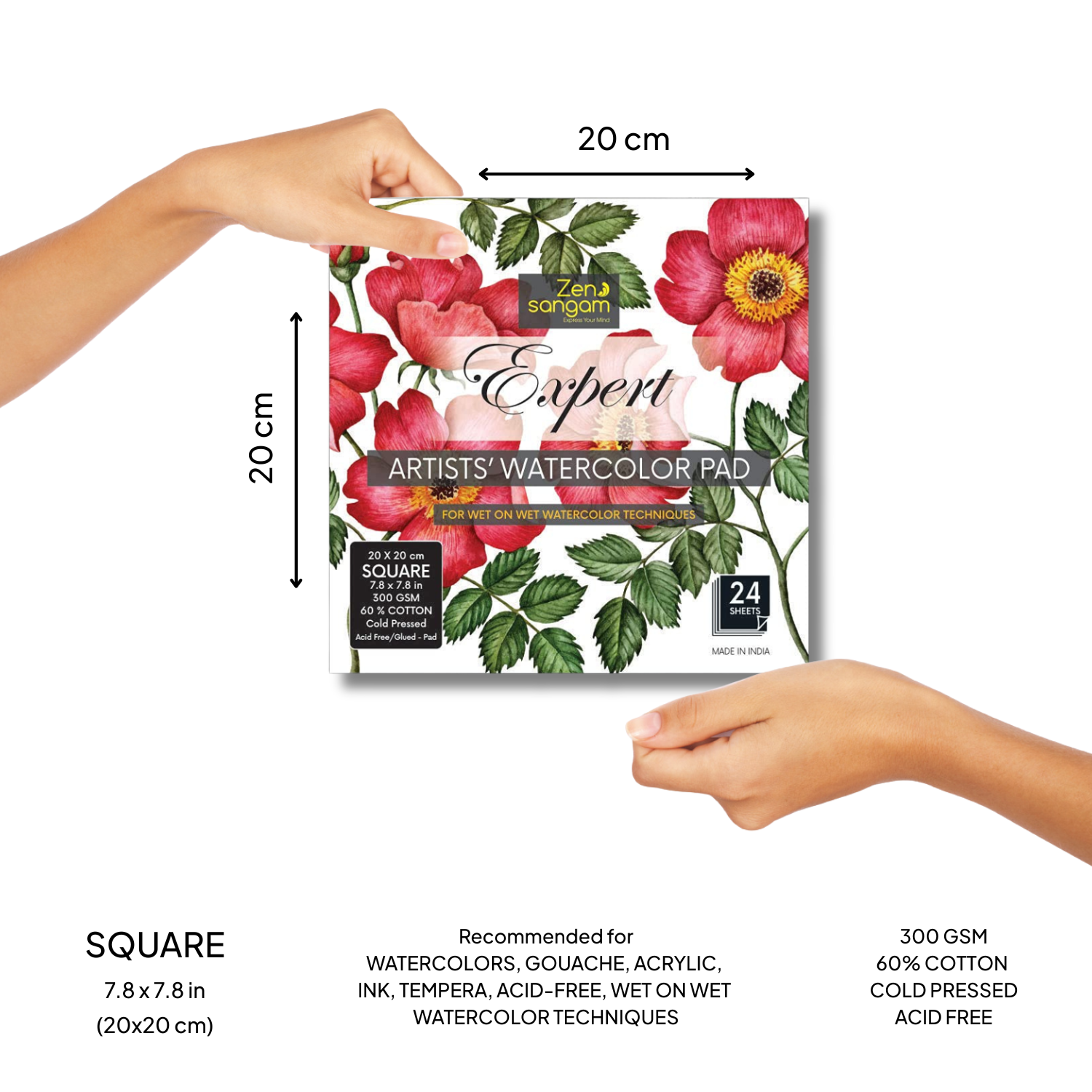 Expert Watercolor Glued Sketch Paper Pad | 300 GSM - 60% Cotton | Square | Zen Sangam