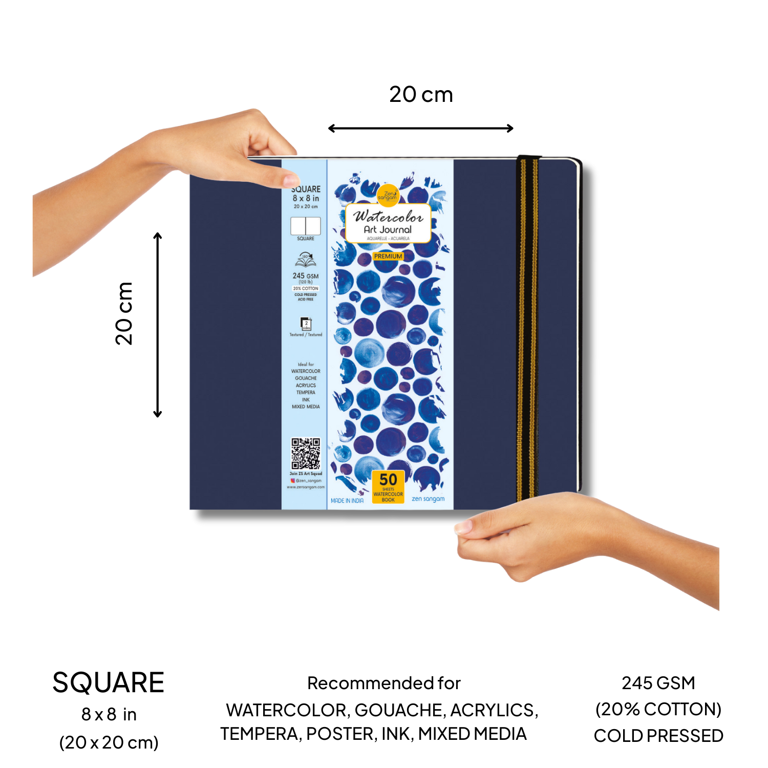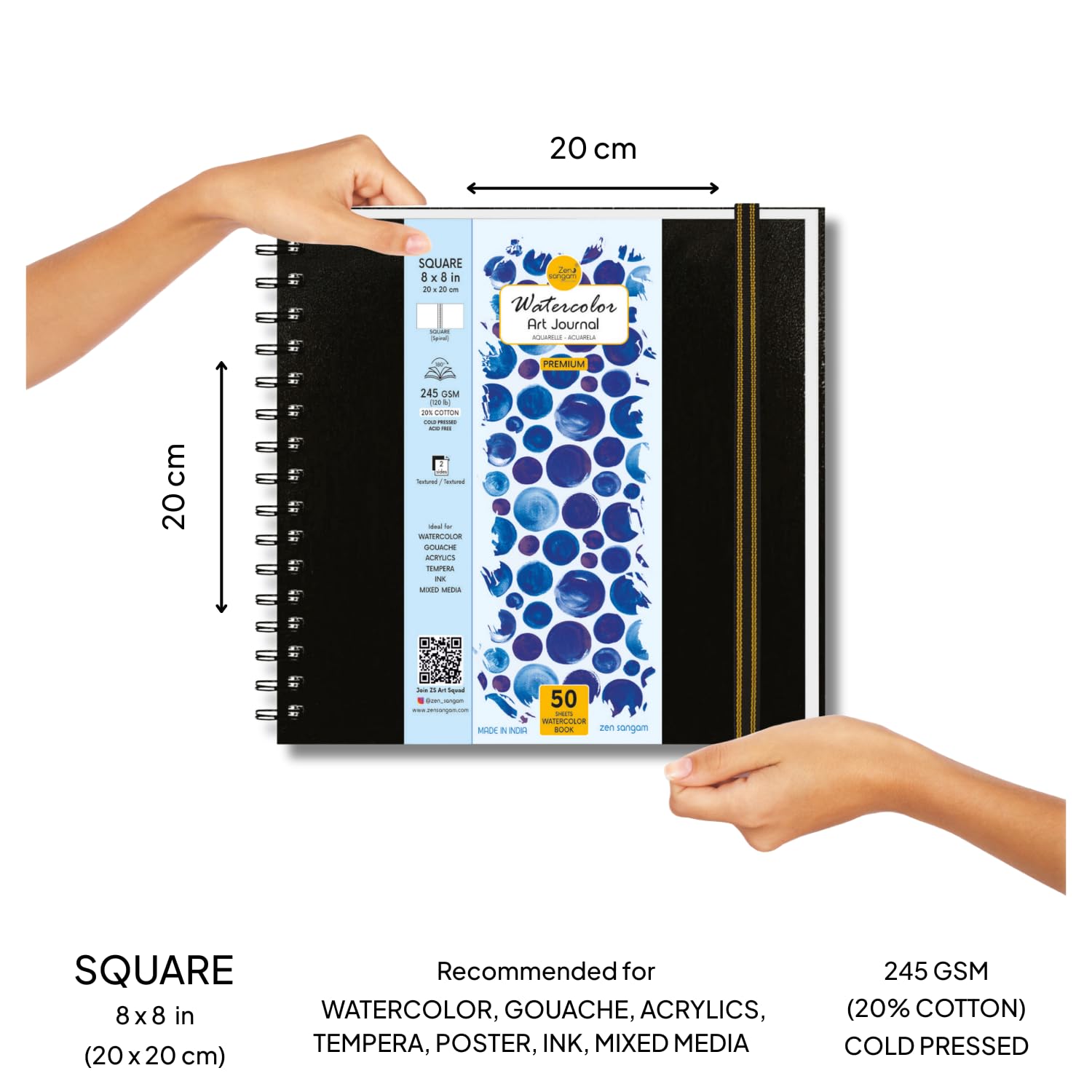 Watercolor Art Journal | 245GSM | 20% Cotton | Square Black Cover | Zen Sangam