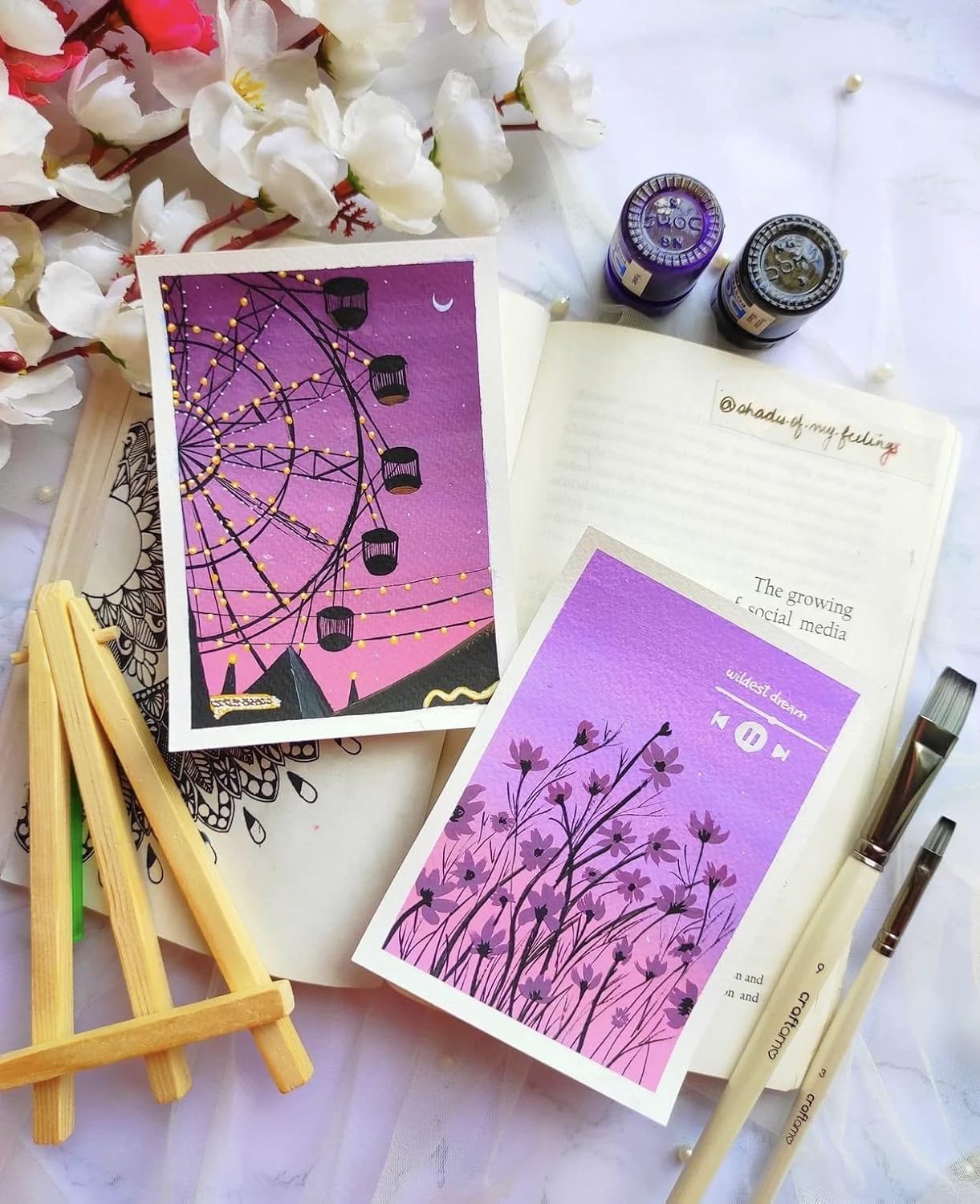 Watercolour Art Journal | 245GSM - 20% Cotton | A7 (Pack of 2) Mini Sketchbook | Pastel Dream (Purple) | Zen Sangam