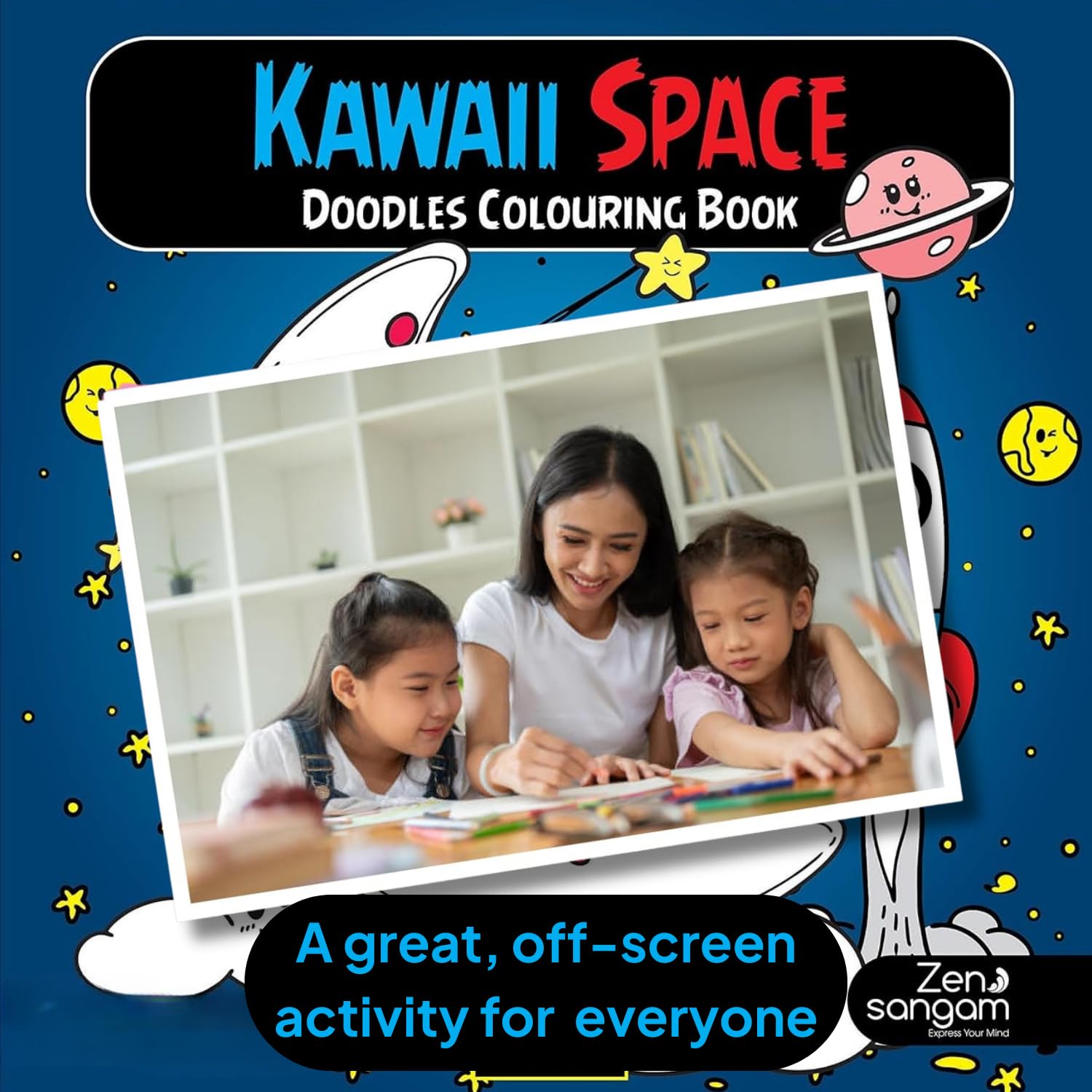 Colouring Book | Cute Kawaii Space Theme | For Kids & Beginners | Zen Sangam