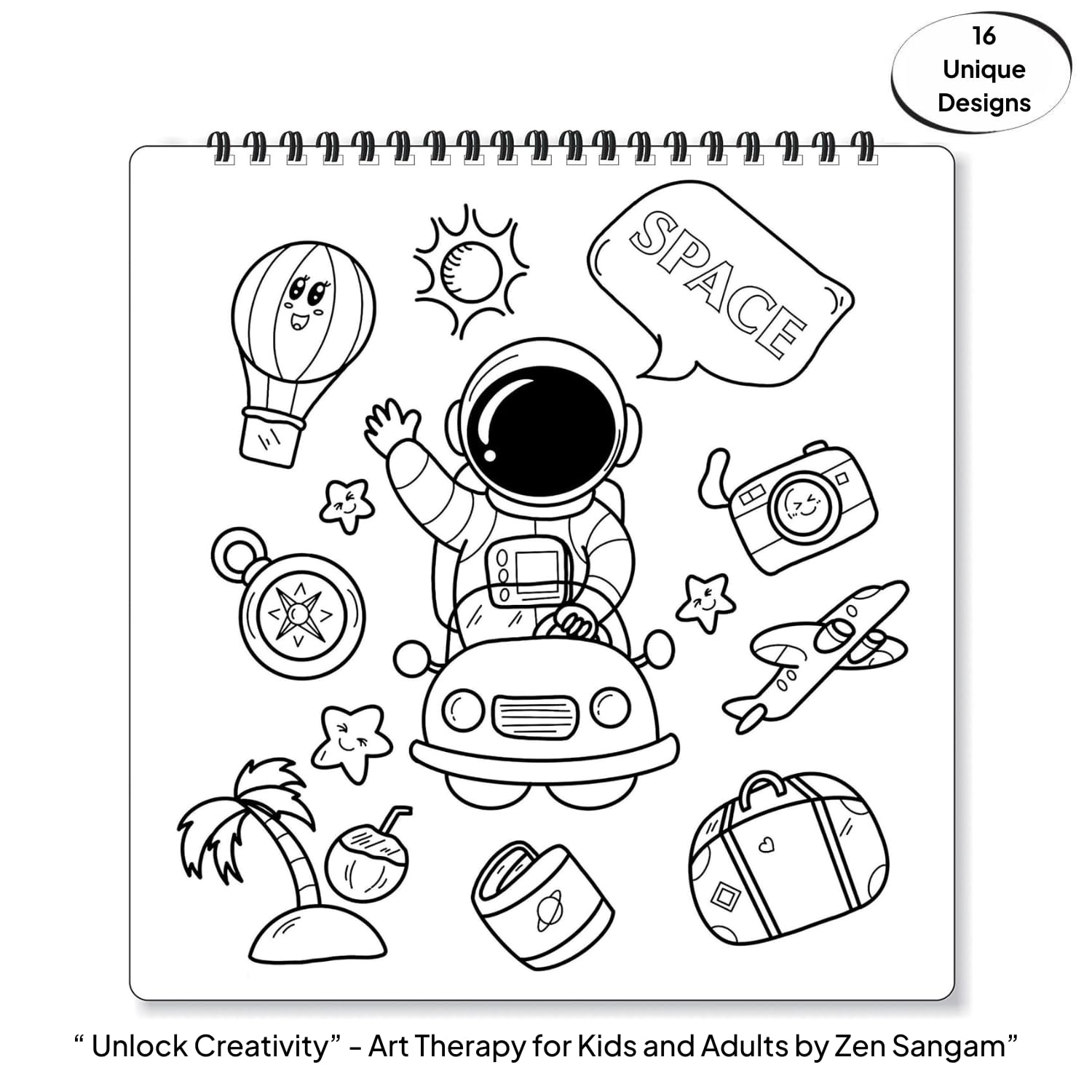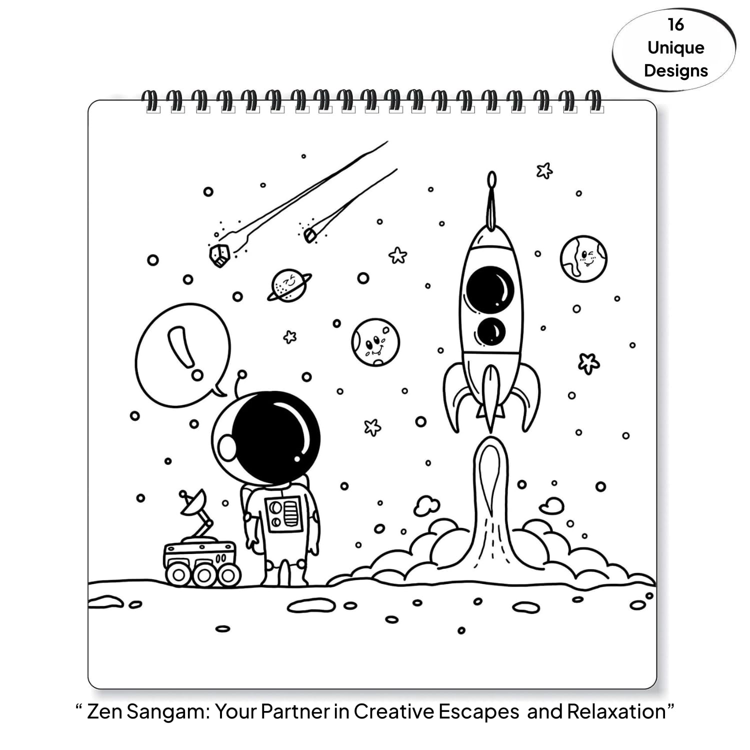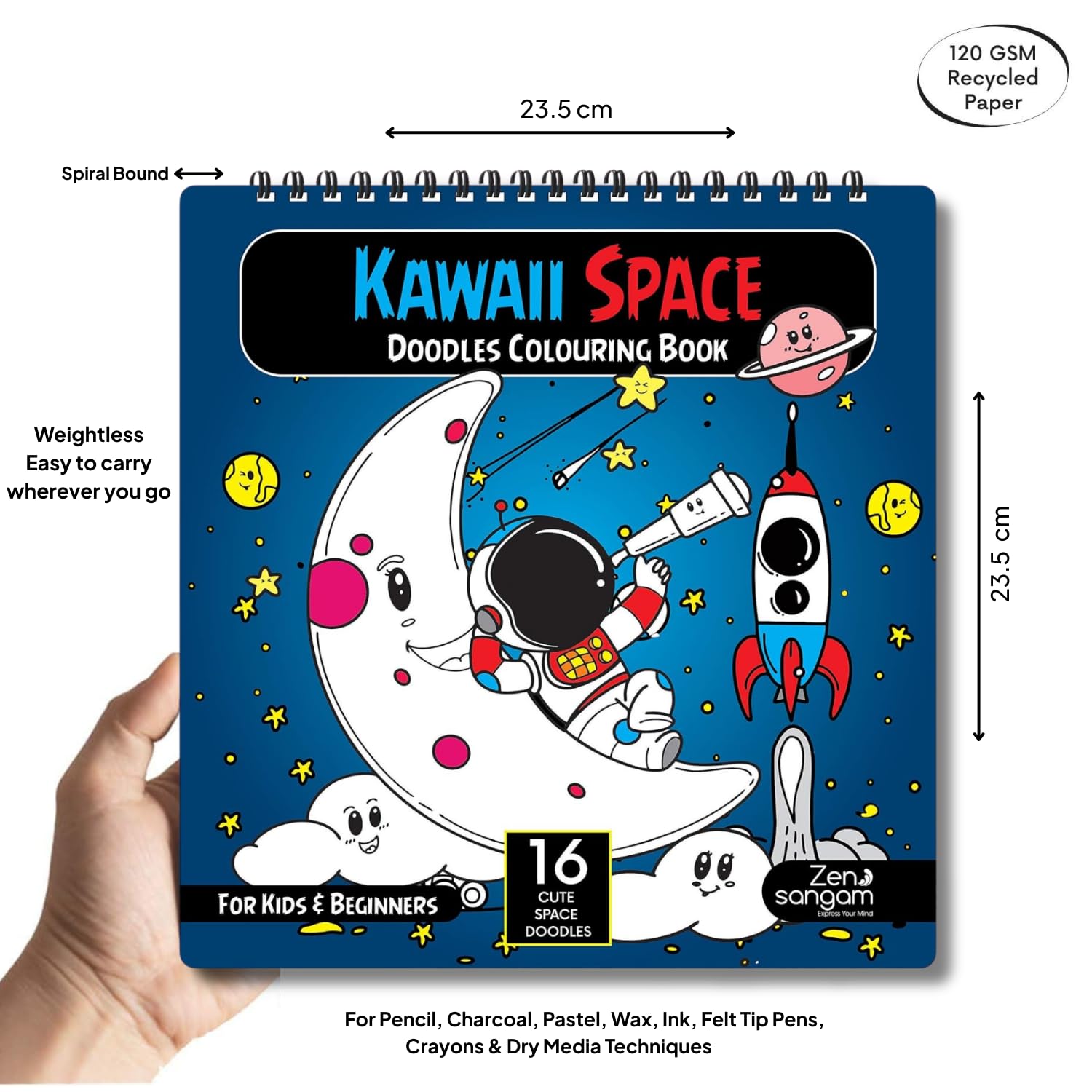 Colouring Book | Cute Kawaii Space Theme | For Kids & Beginners | Zen Sangam