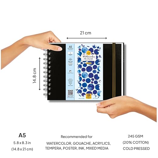 Watercolor Spiral Journal | 245GSM - 20% Cotton | Portrait Black Cover | Zen Sangam