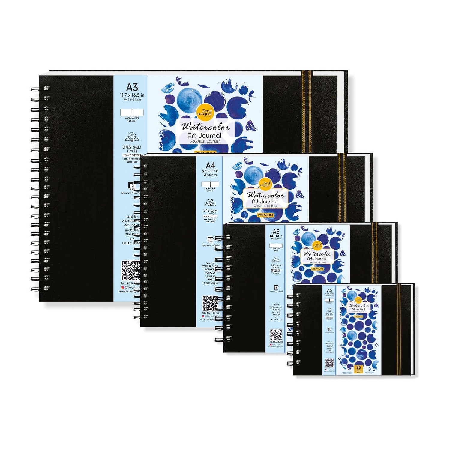 Watercolor Art Journal | 245GSM - 20% Cotton | Portrait Black Cover | Zen Sangam
