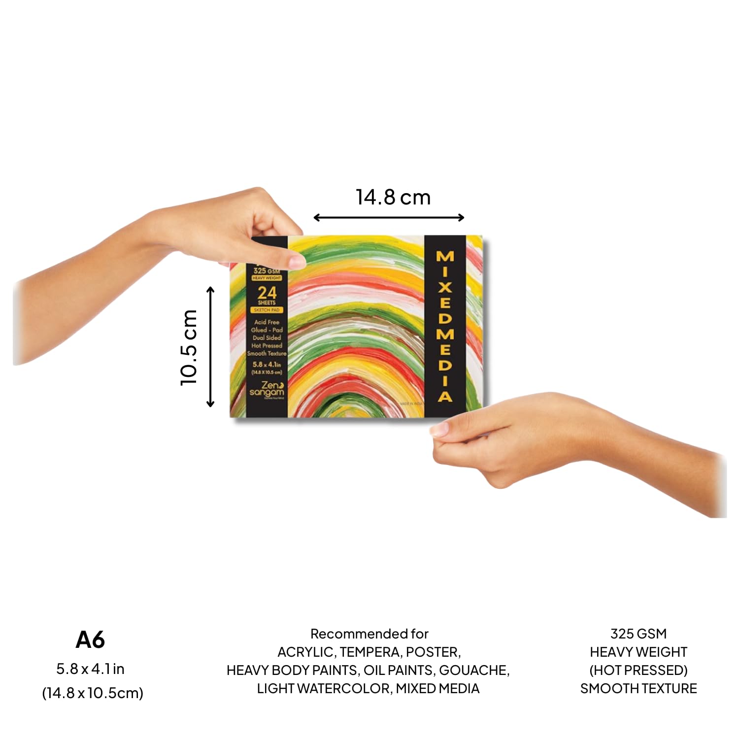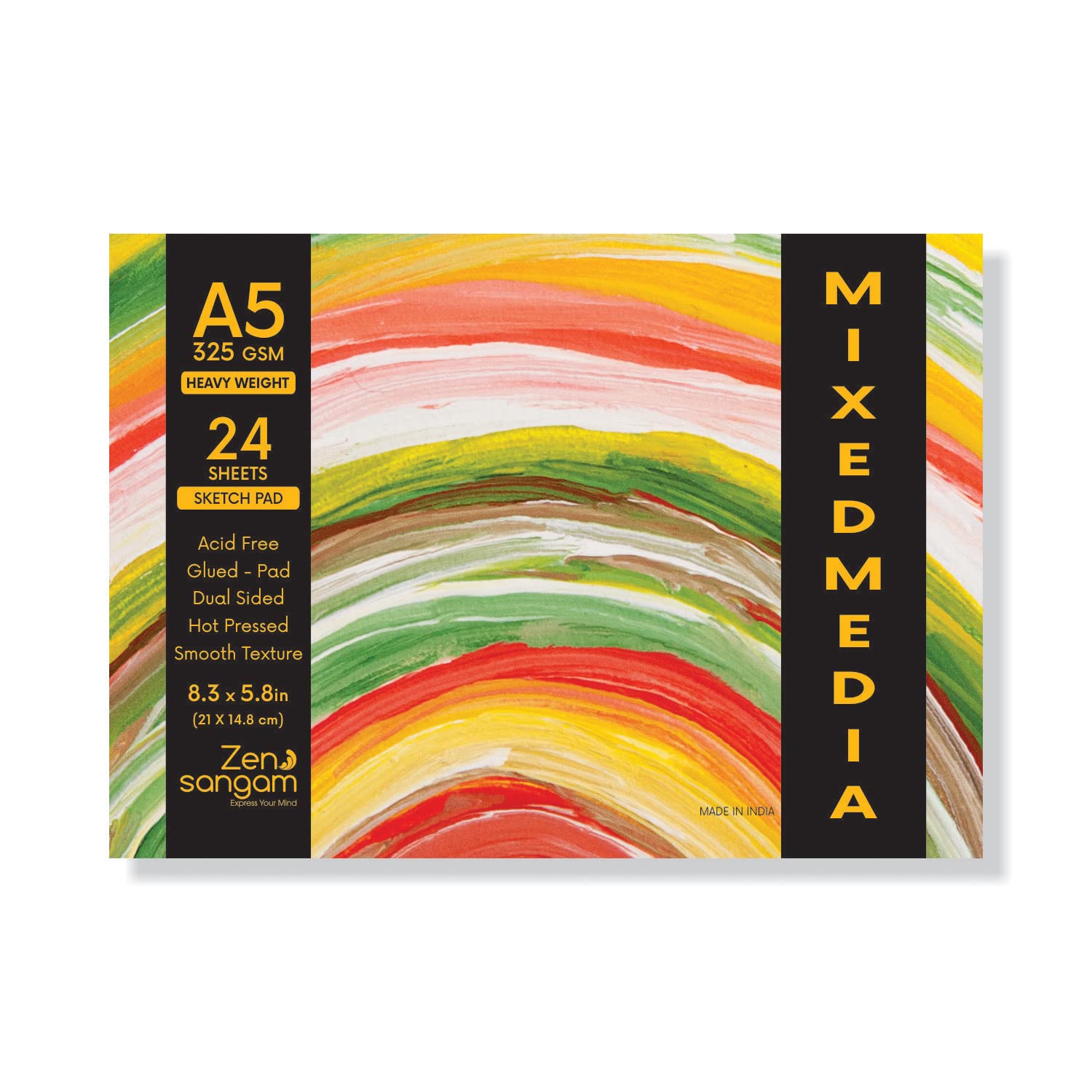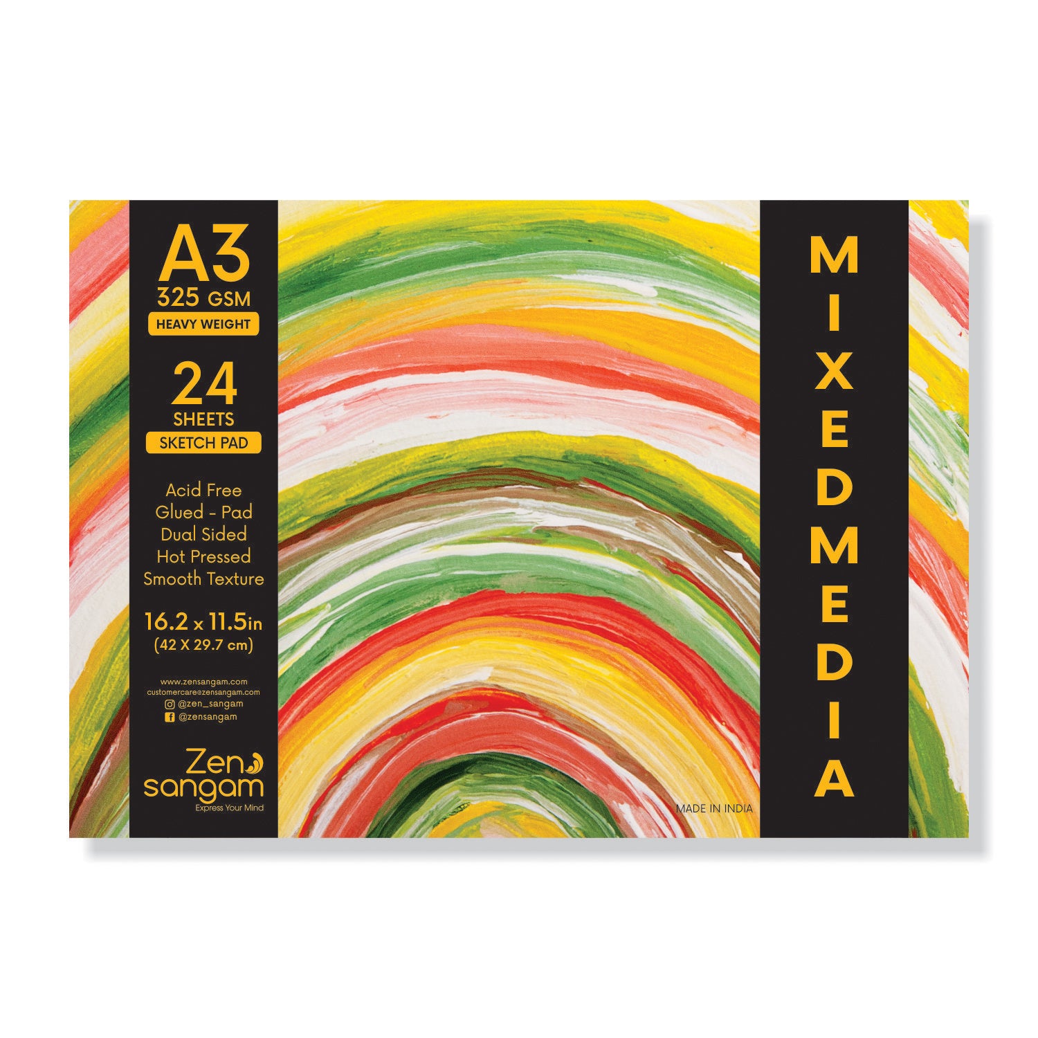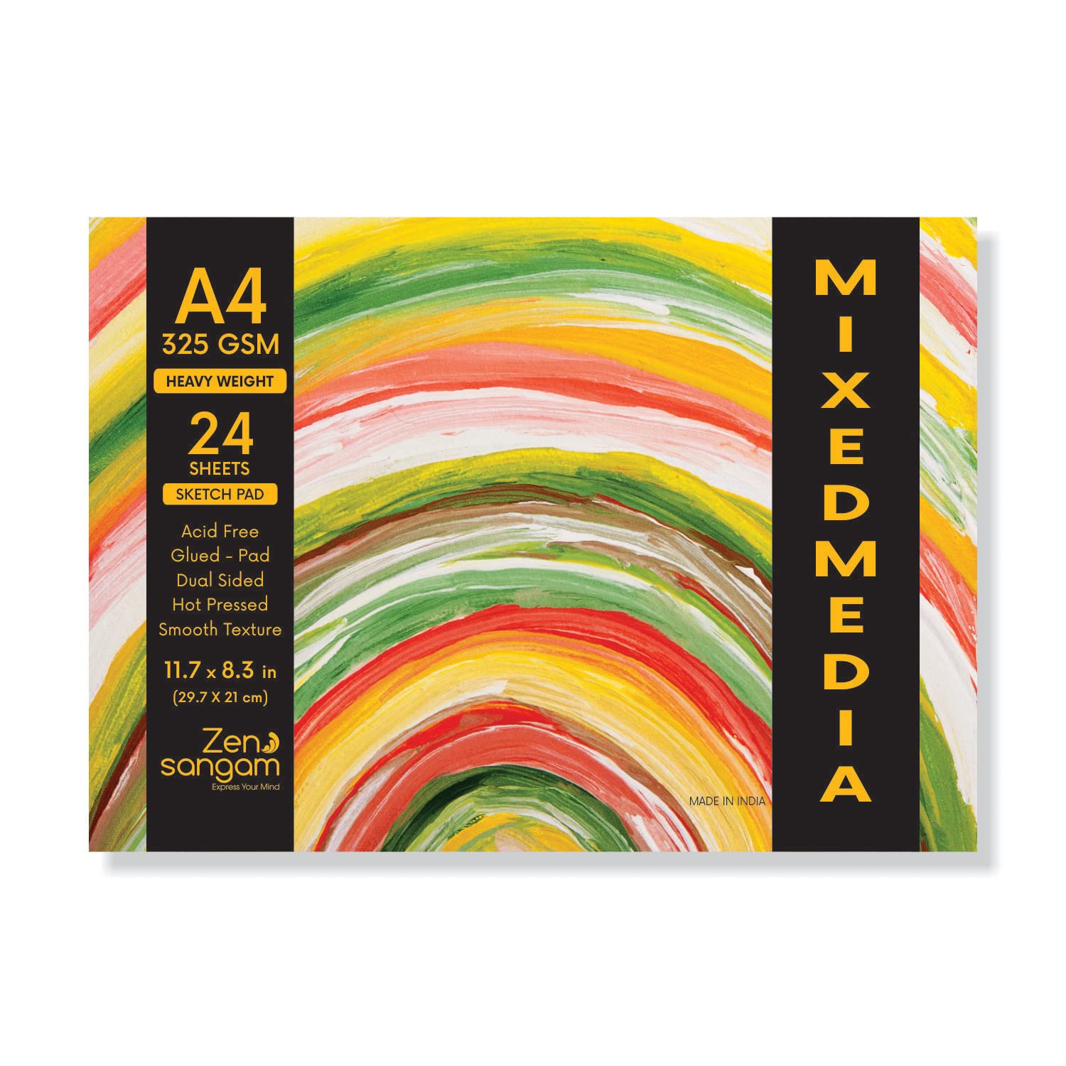 - Glued Sketchpad with 24 Sheets of 325 GSM Hot Pressed Mixed Media Paper. 100% Lignin-Free Cellulose Sheets.