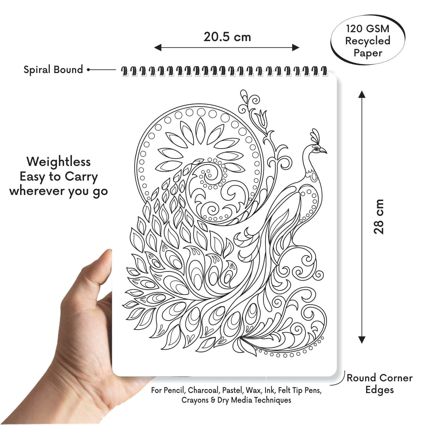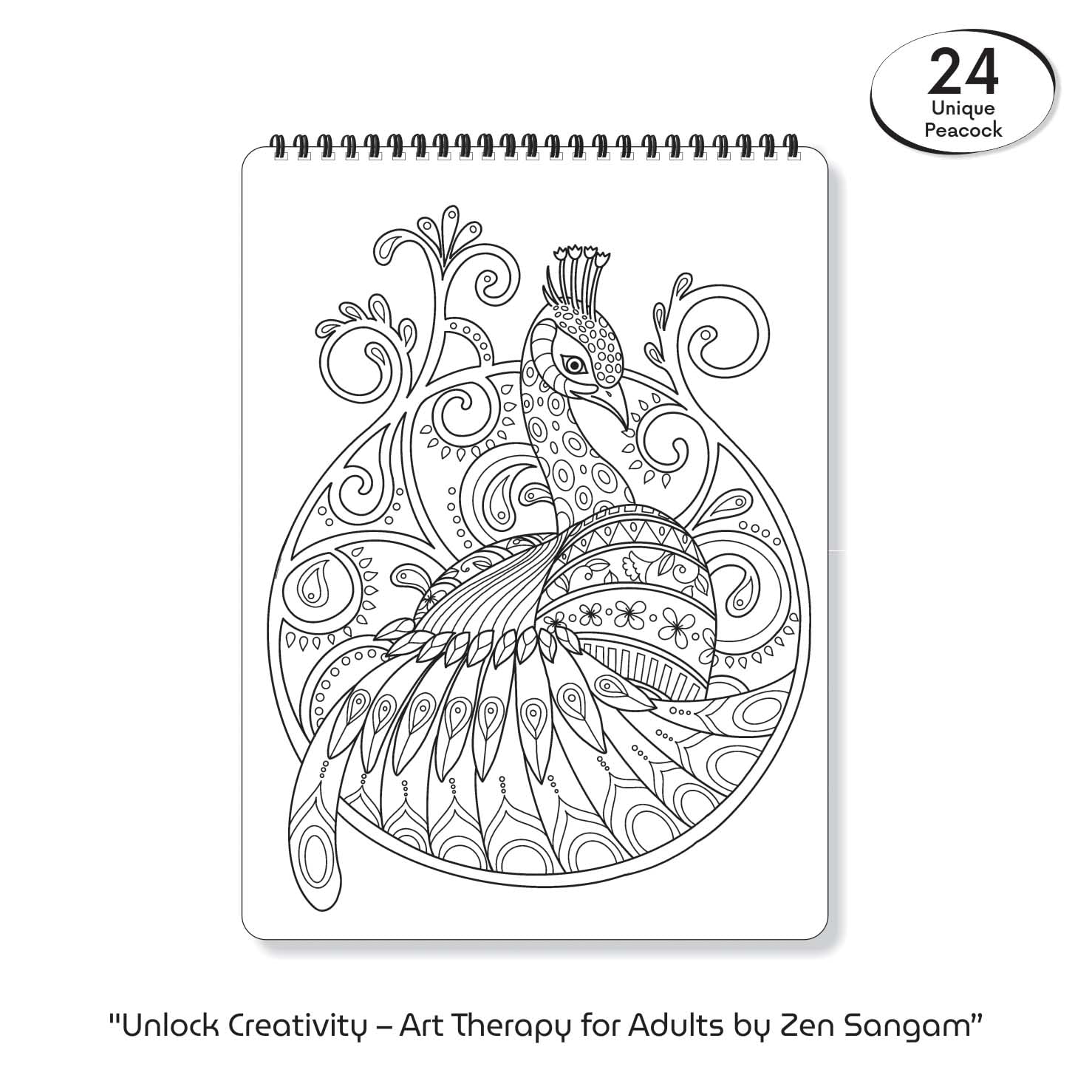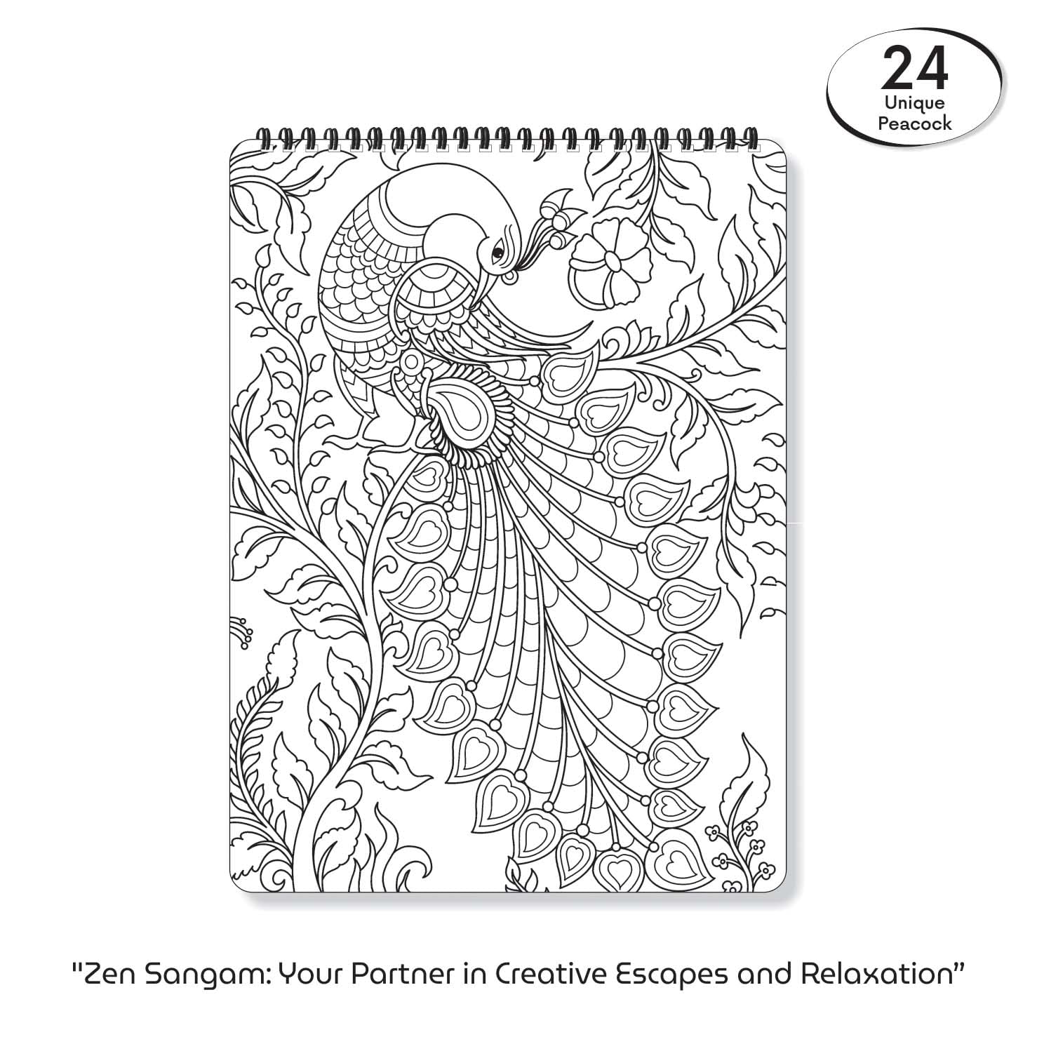 Colouring Book - Peacock Theme - For Adults | Zen Sangam