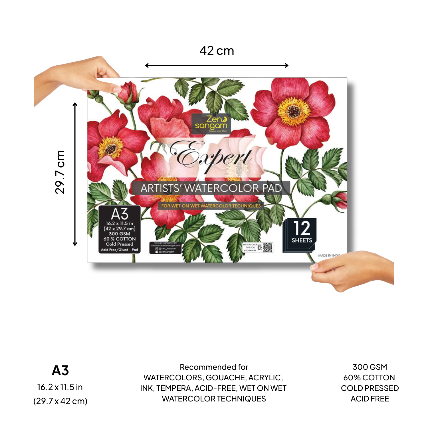 Expert Watercolor Glued Sketch Paper Pad | 300 GSM - 60% Cotton | Landscape | Zen Sangam
