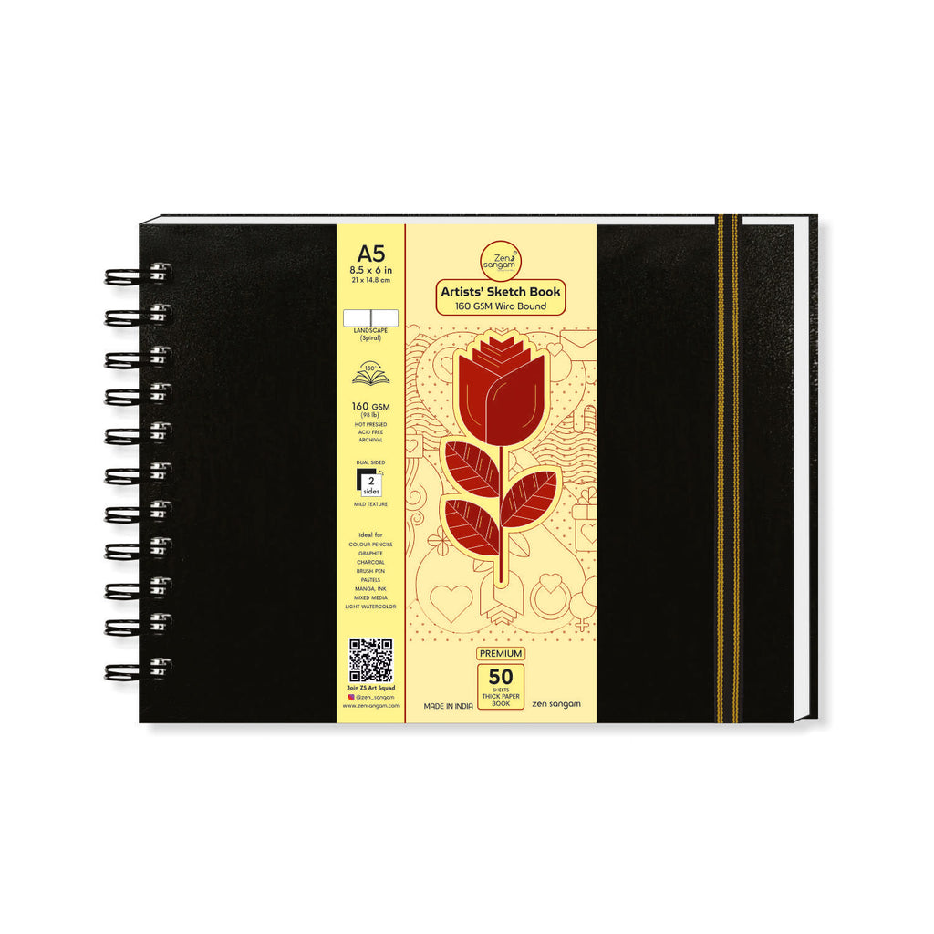 Dry Media Spiral Sketch Book | 160 GSM - Hot Pressed | Zen Sangam