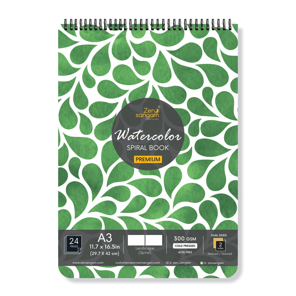 Beginner Watercolor Sketch Book - Spiral Landscape - 300 GSM | 100% Cotton Handmade Paper | Zen Sangam