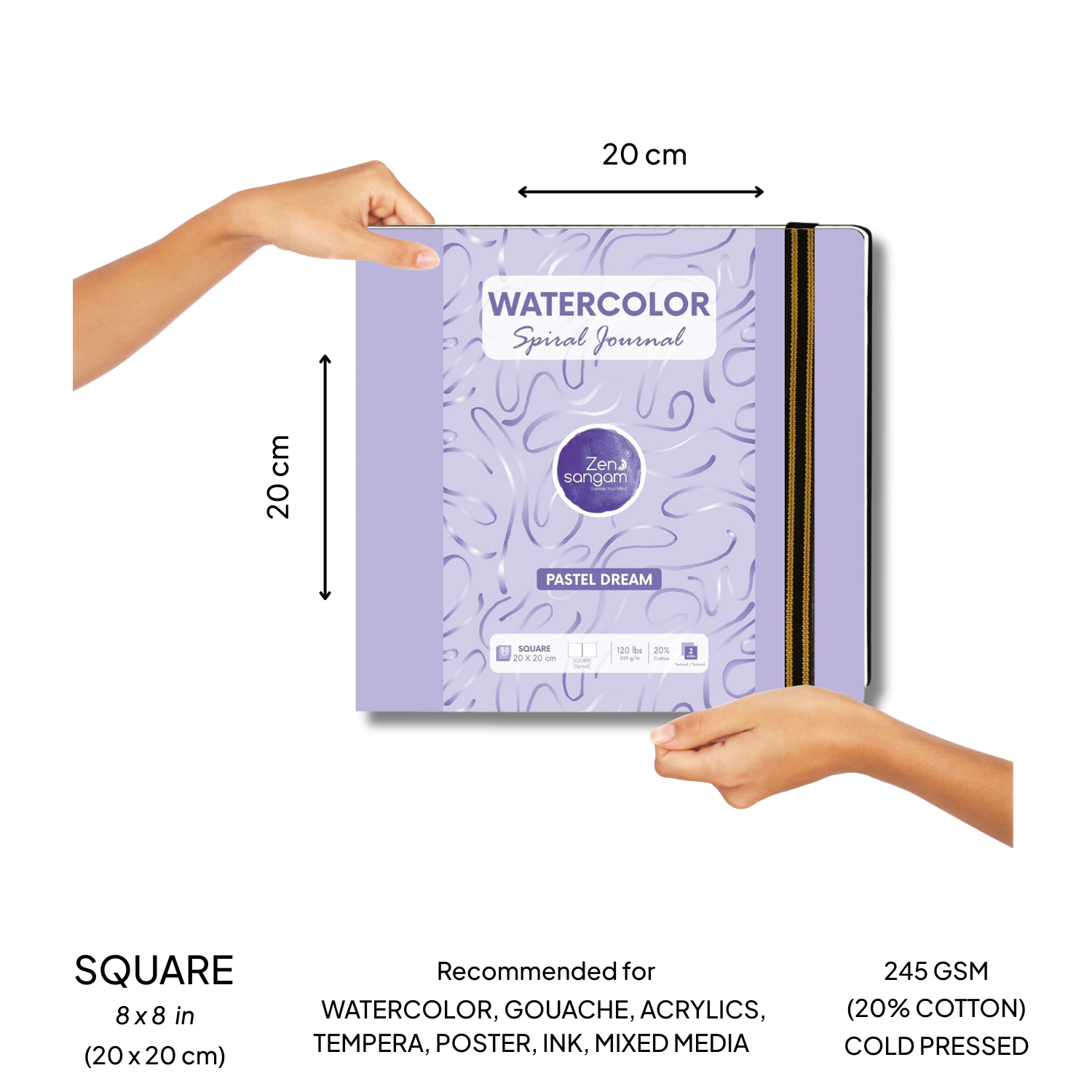 Spiral Watercolour Journal | 245GSM - 20% Cotton | Square | Pastel Dream (Purple) | Zen Sangam