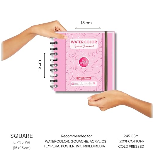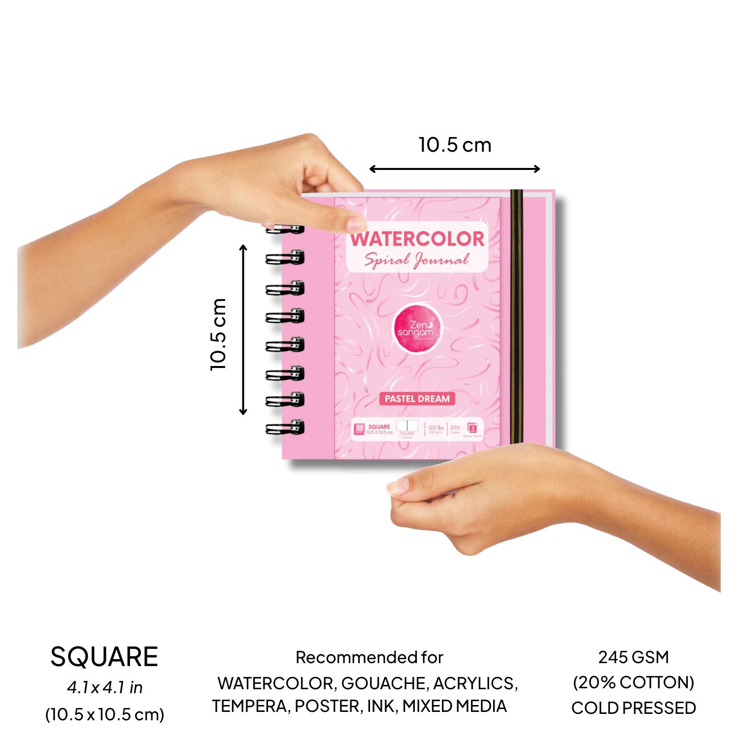 Spiral Watercolour Journal | 245GSM - 20% Cotton | Square | Pastel Dream (Pink) | Zen Sangam