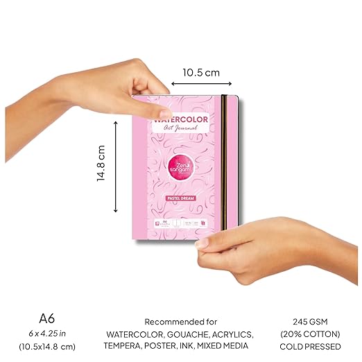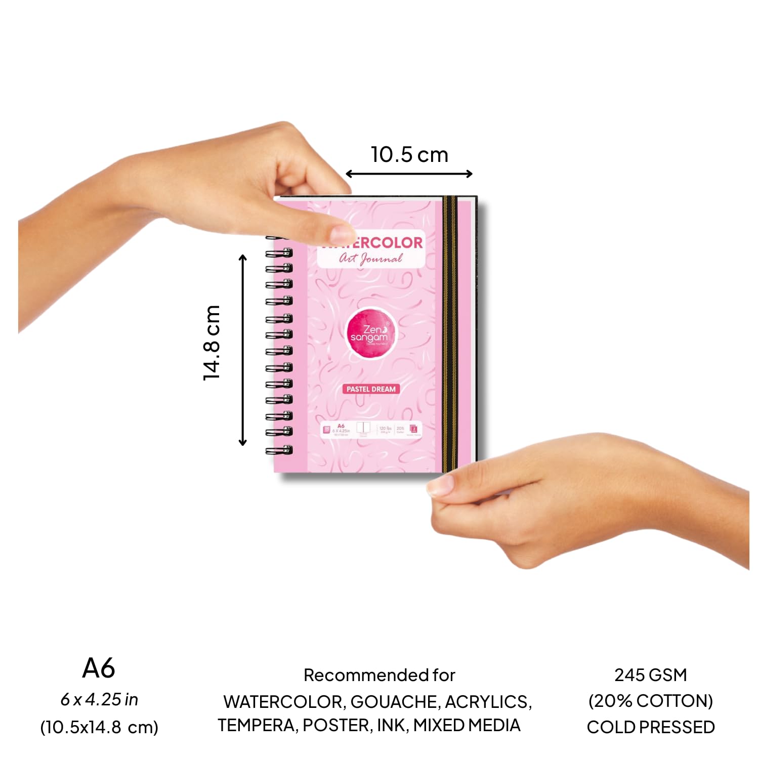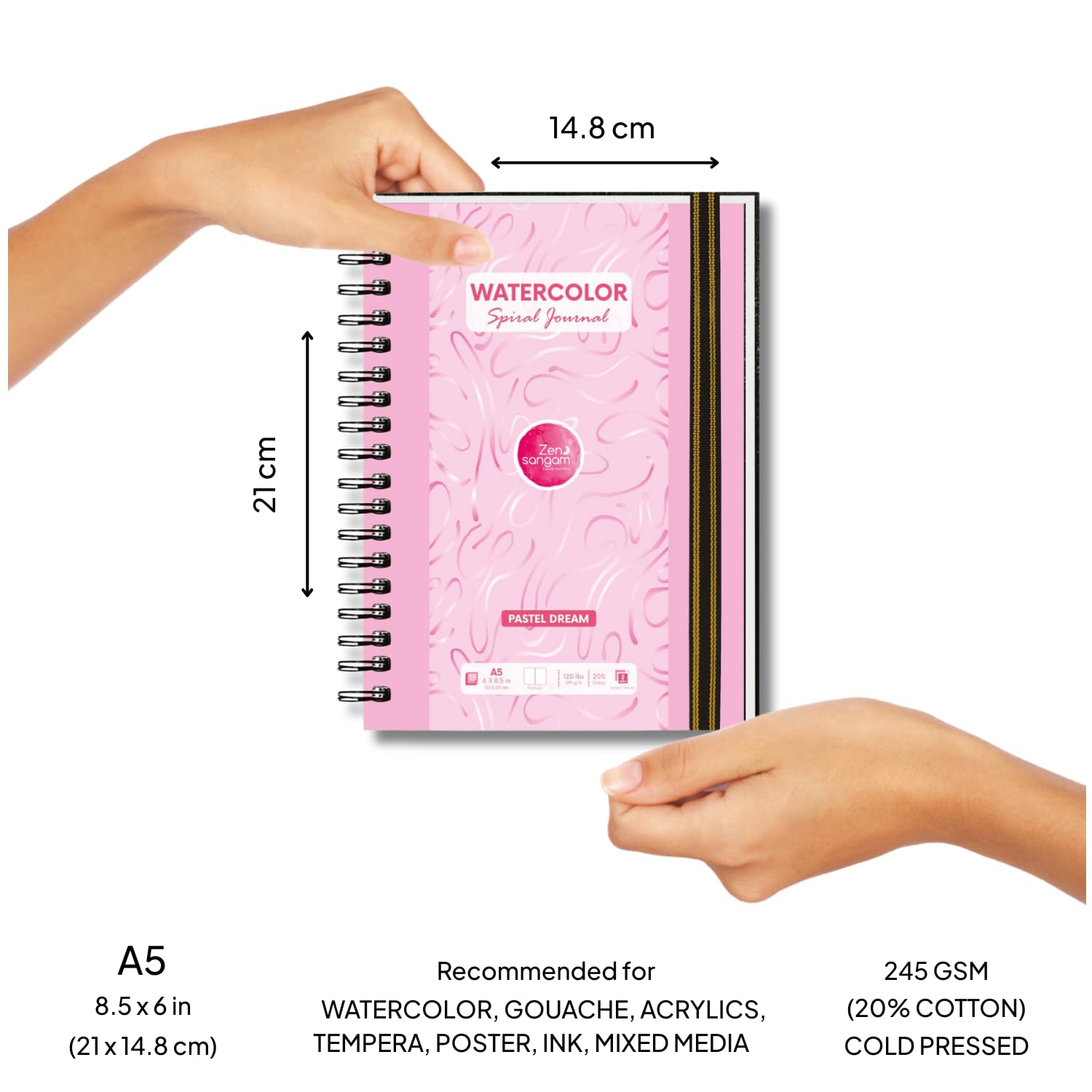Watercolour Journal | 245GSM - 20% Cotton | Portrait | Pastel Dream (Pink) | Zen Sangam