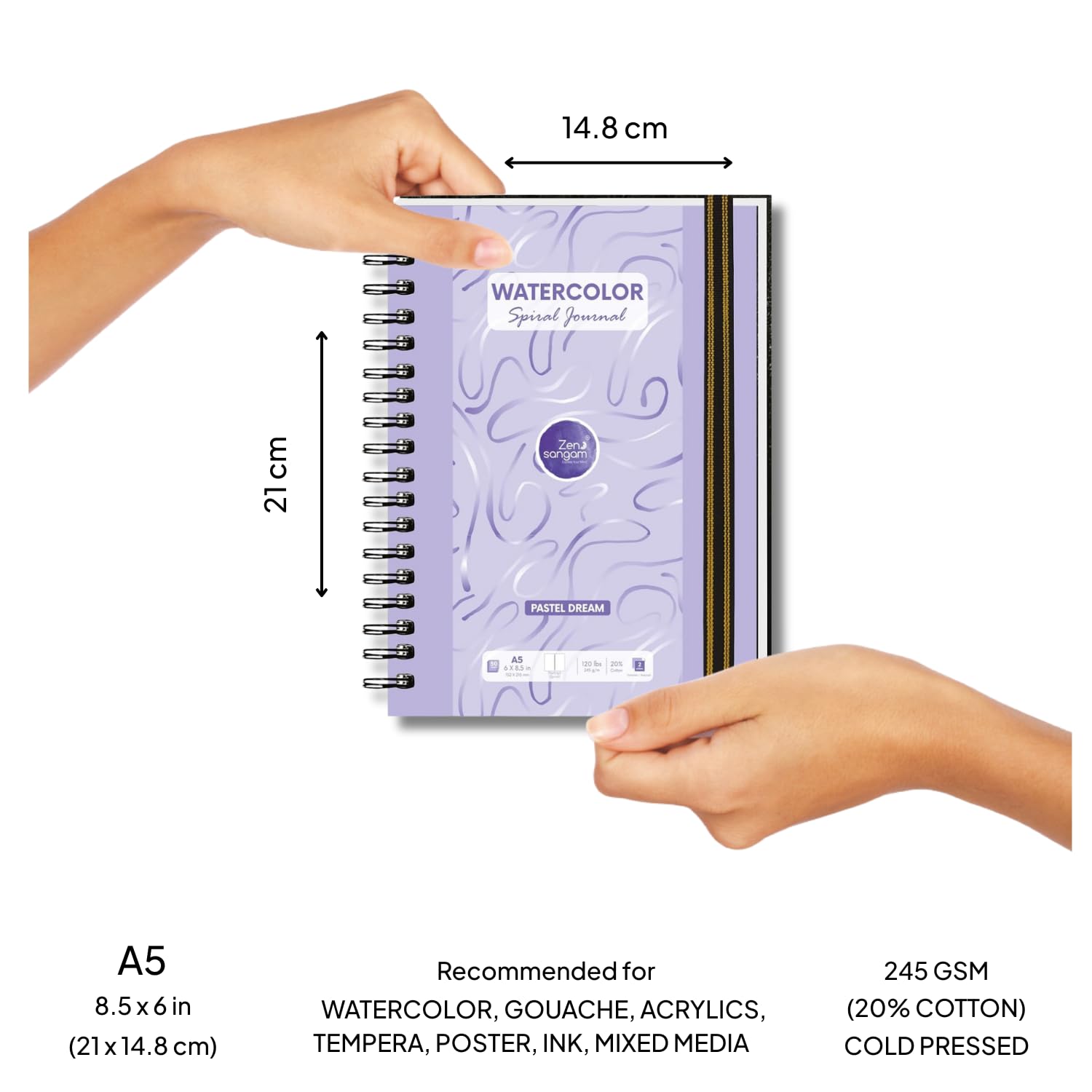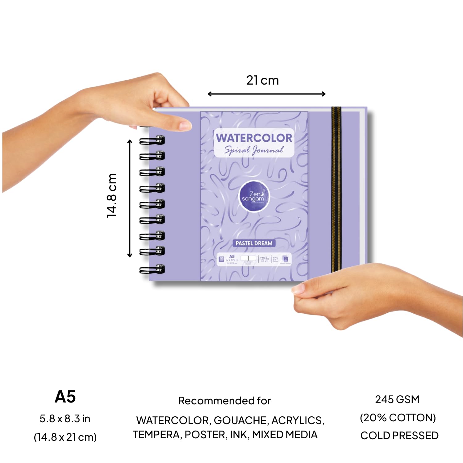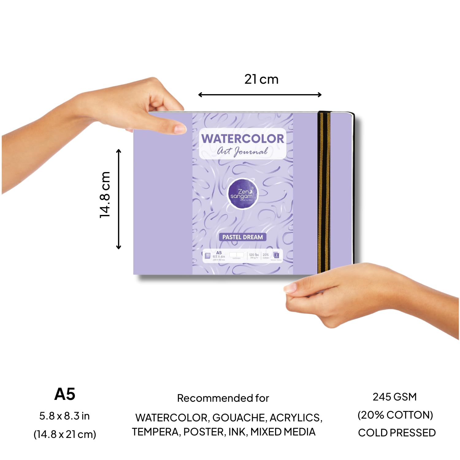 Watercolour Journal | 245GSM - 20% Cotton | Portrait | Pastel Dream (Pink,Purple) | Zen Sangam