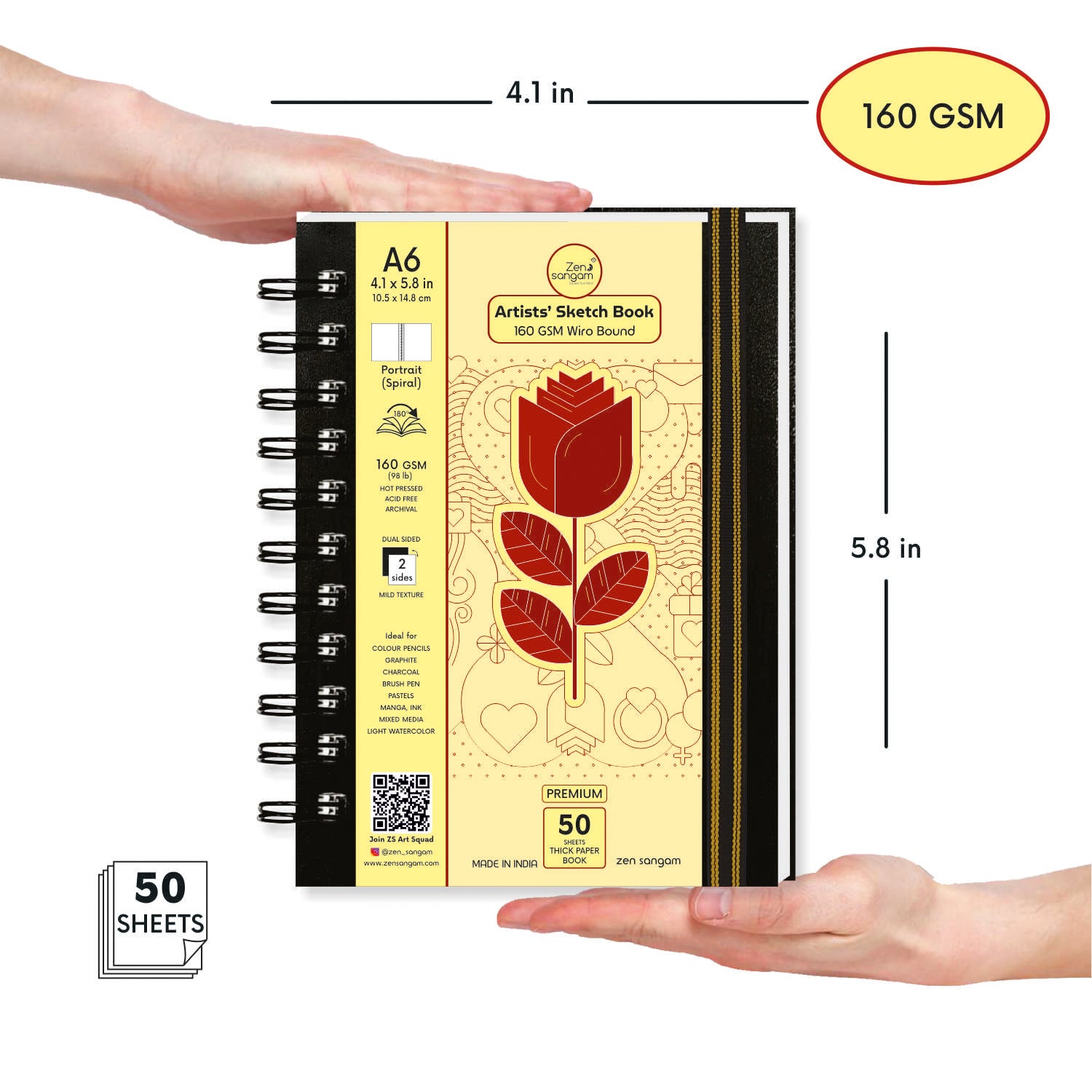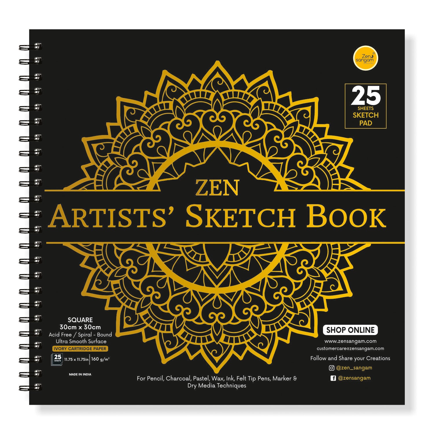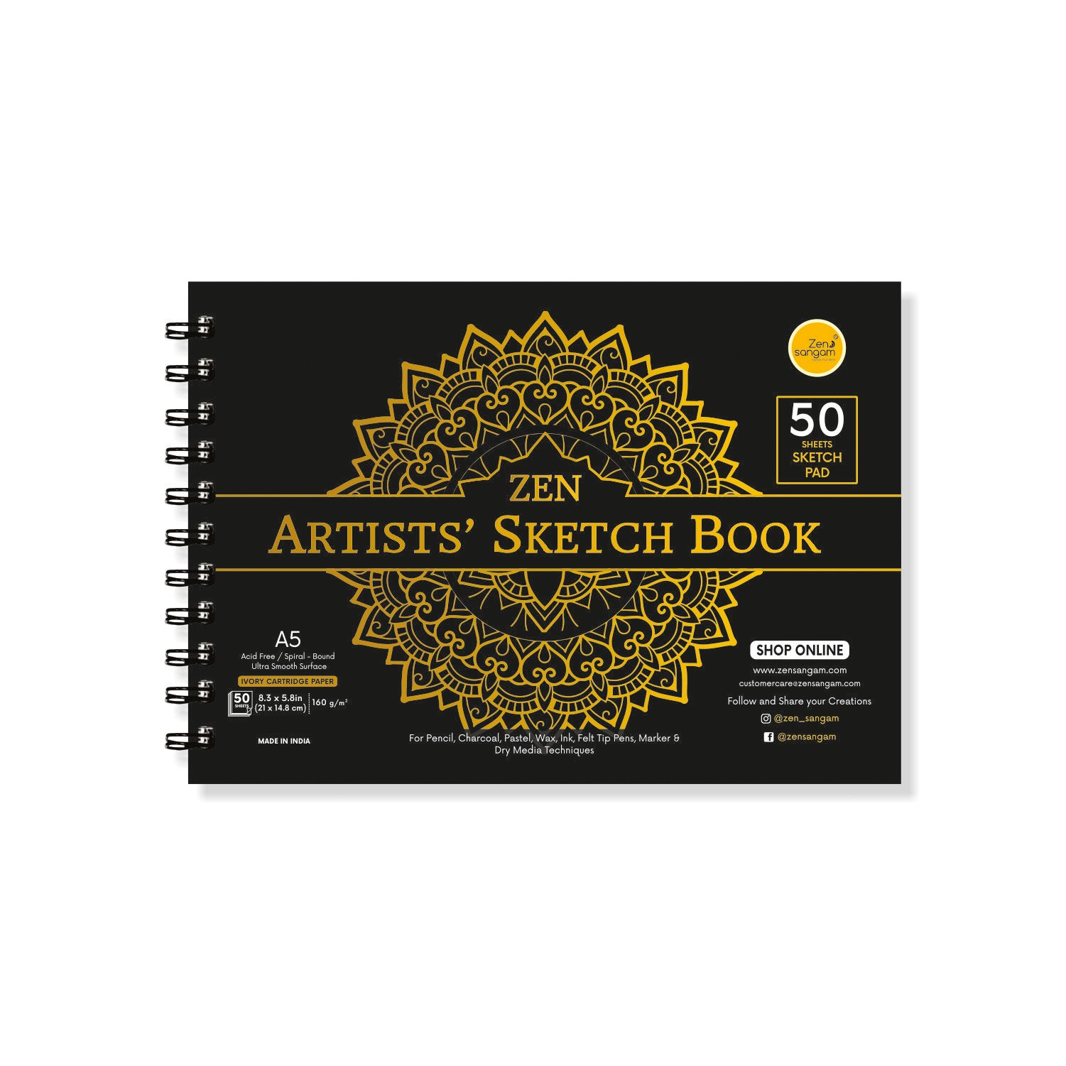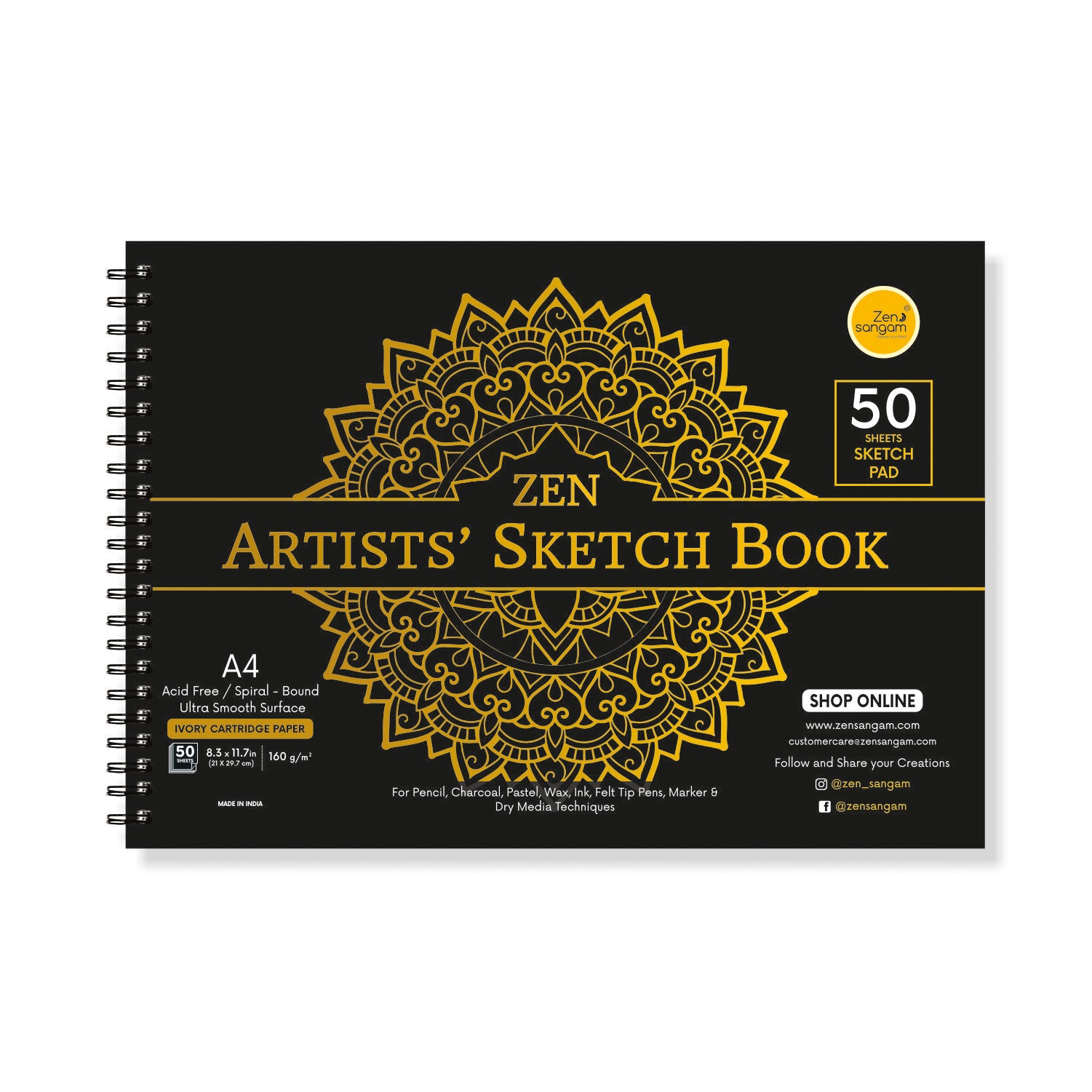 Dry Media Spiral Sketch Book | 160 GSM - Hot Pressed | Zen Sangam