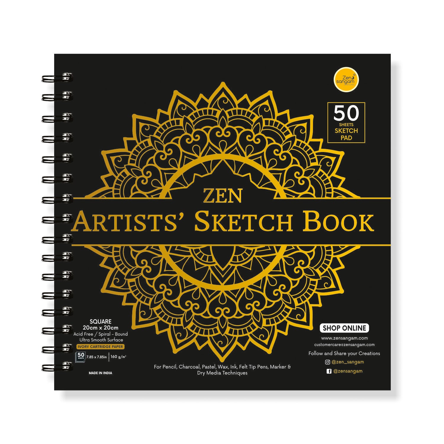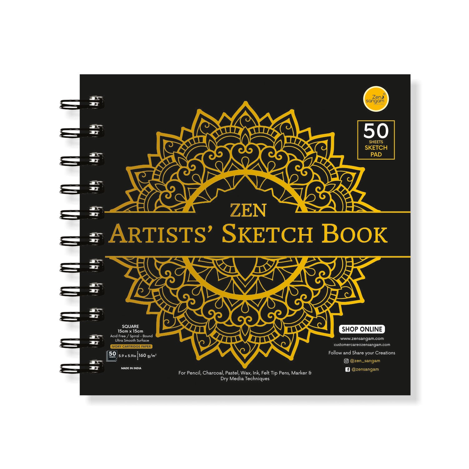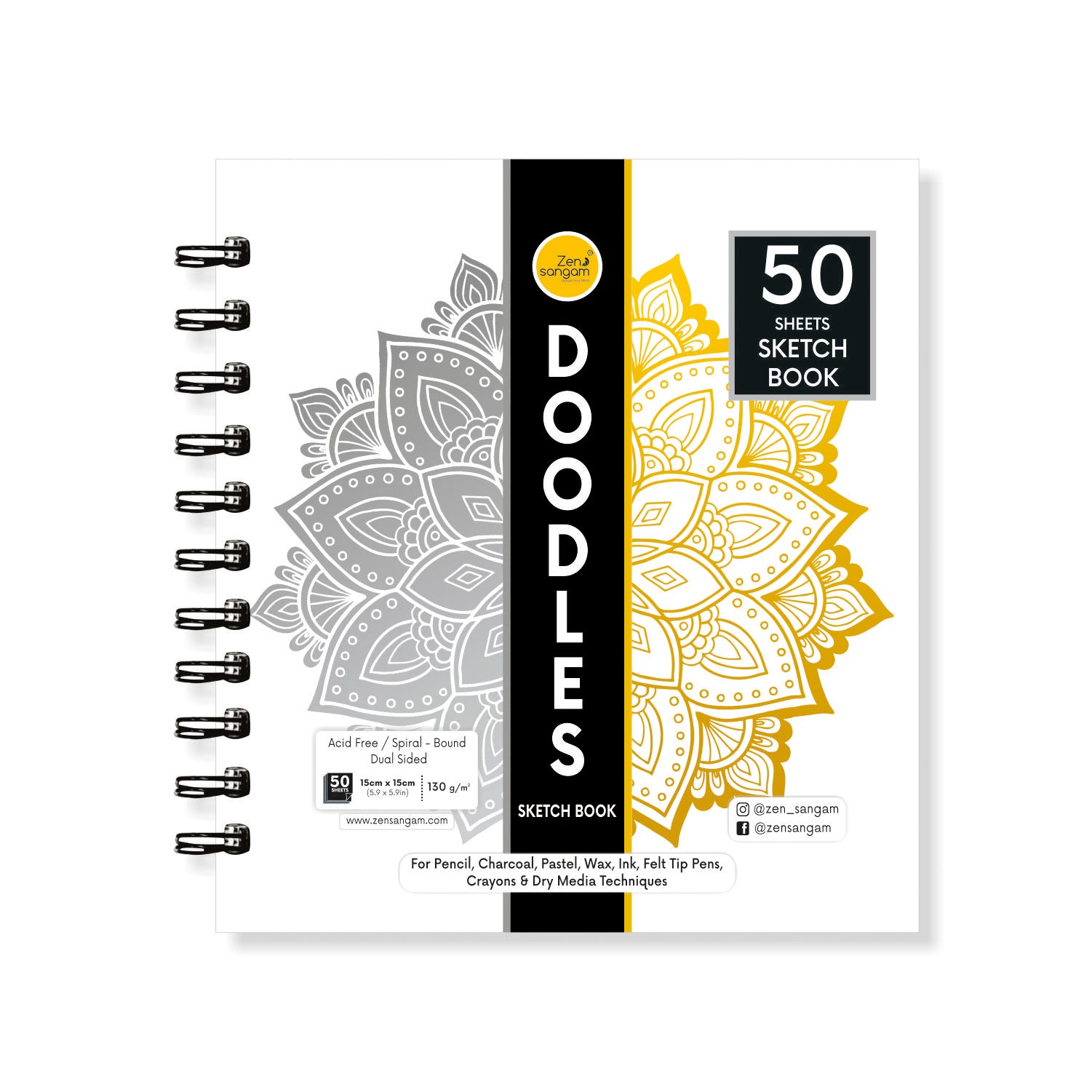 Square Spiral Doodle Sketchbook | 130 GSM - Dry Media | Zen Sangam