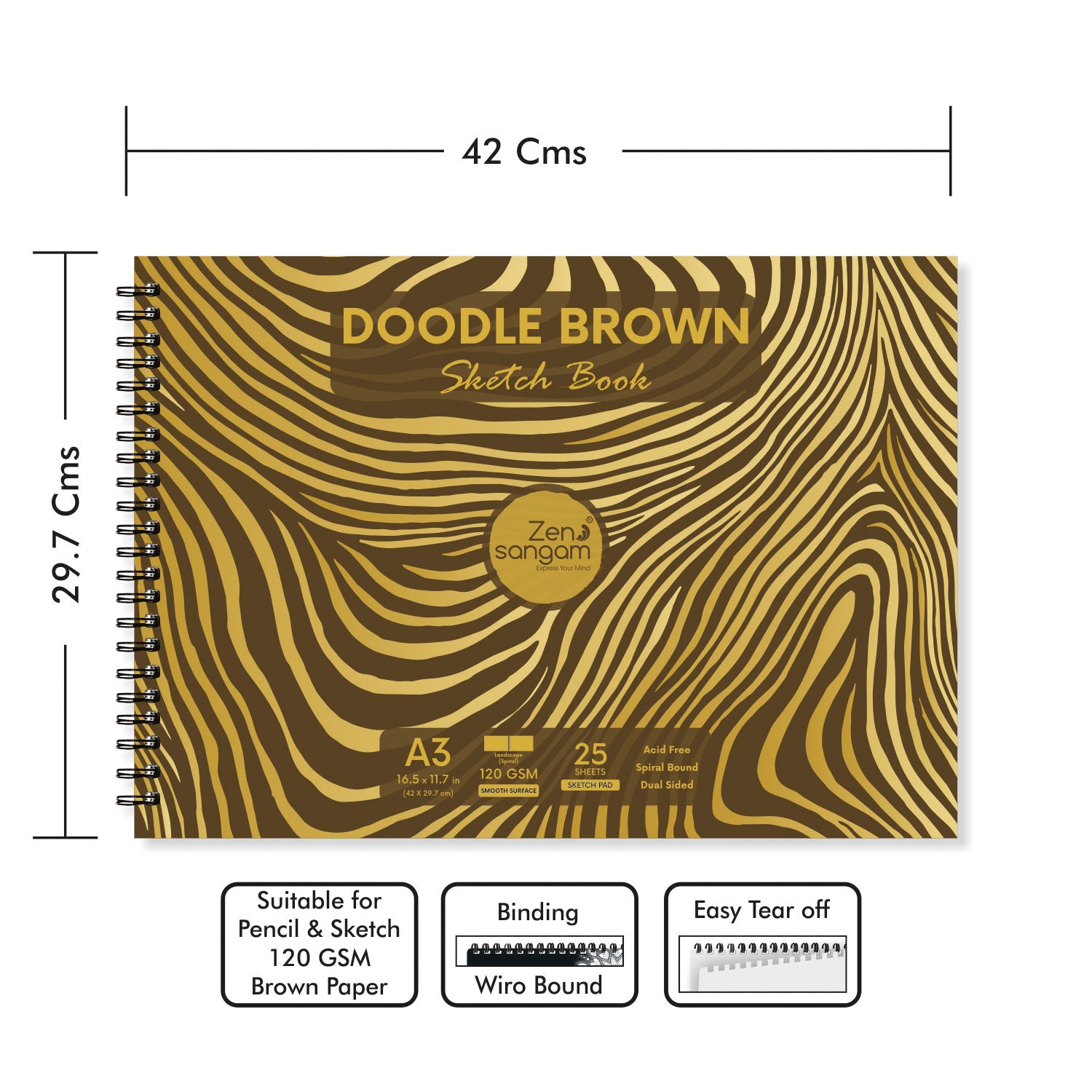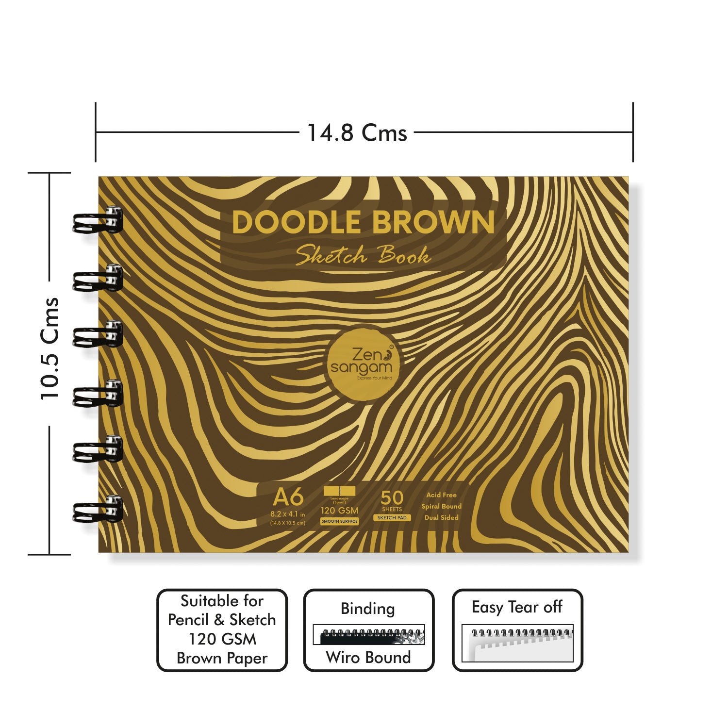 Drawing Sketch Book - 120 GSM - Doodle Brown Paper | Zen Sangam