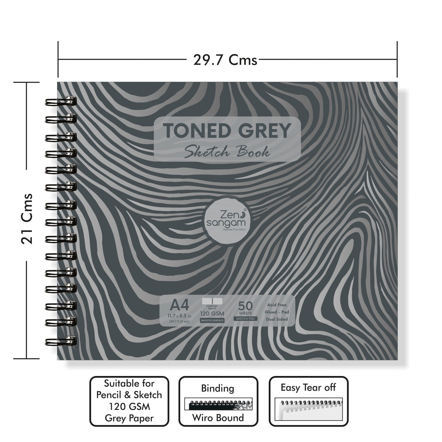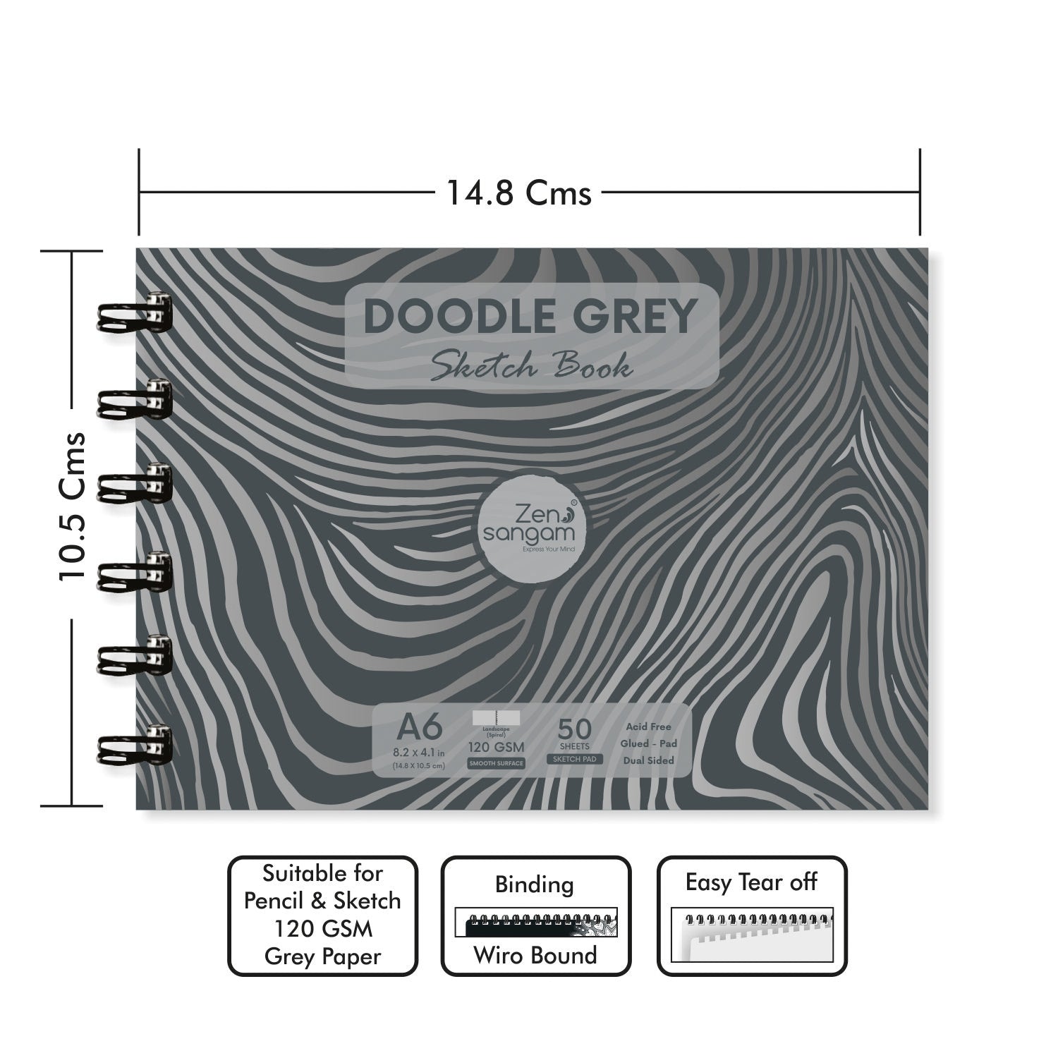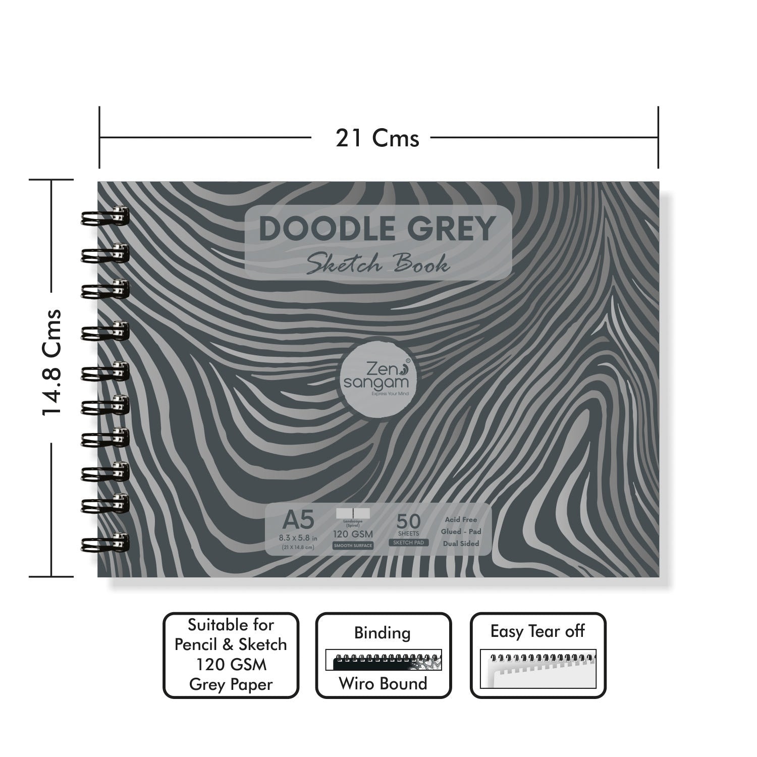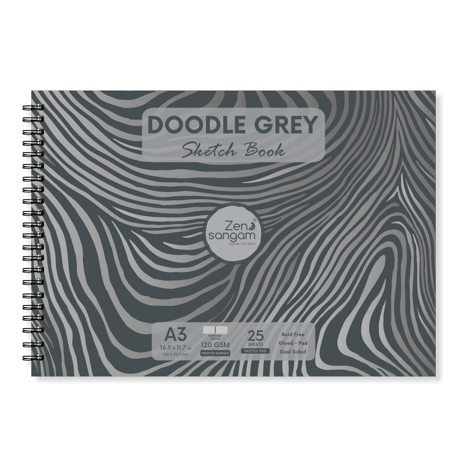 Drawing Sketch Book | 120 GSM | Doodle Grey Paper | Zen Sangam