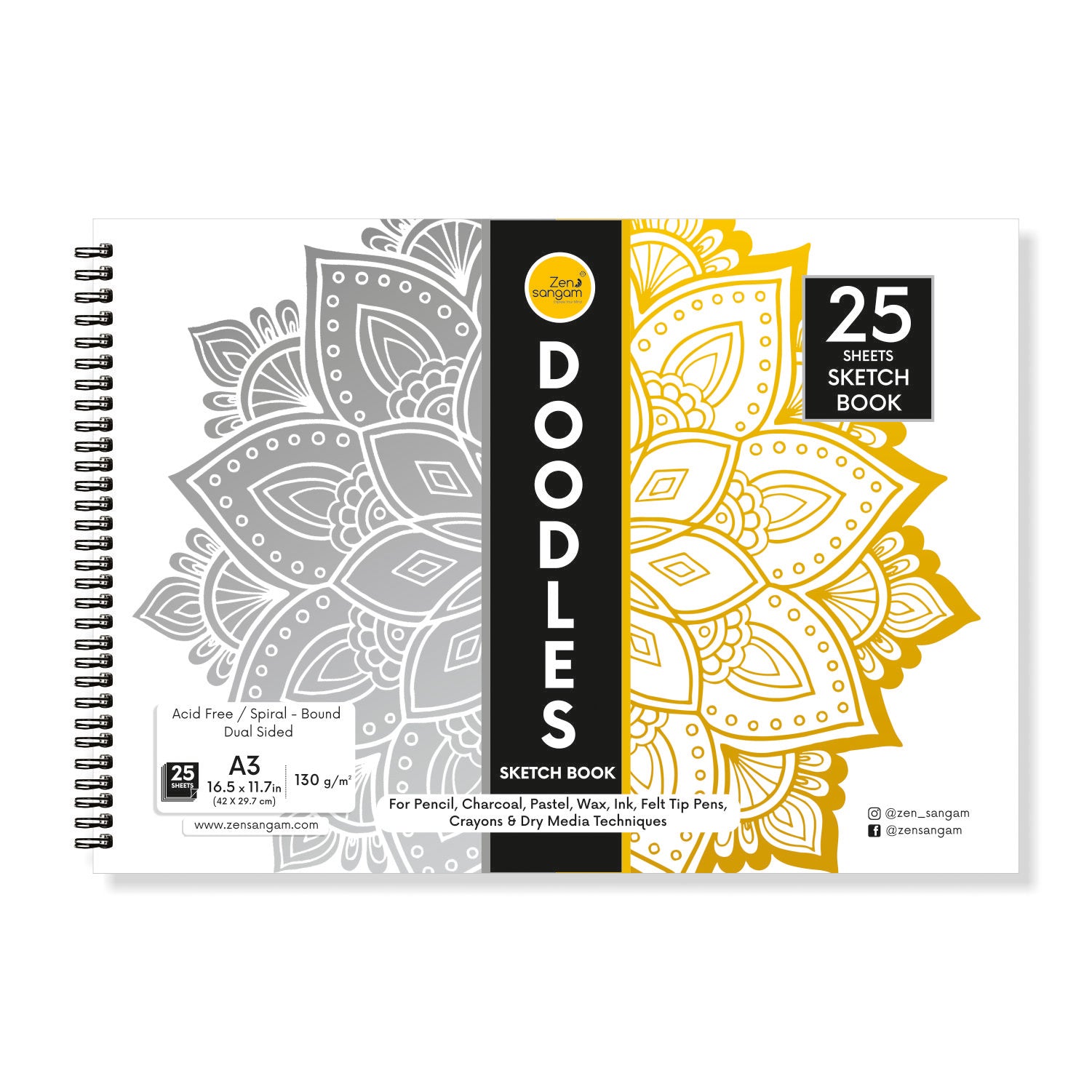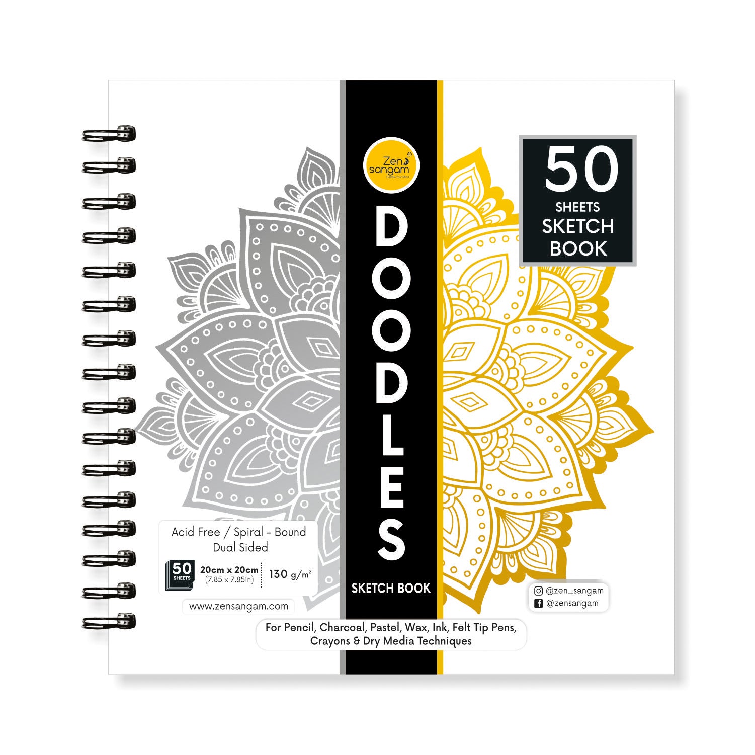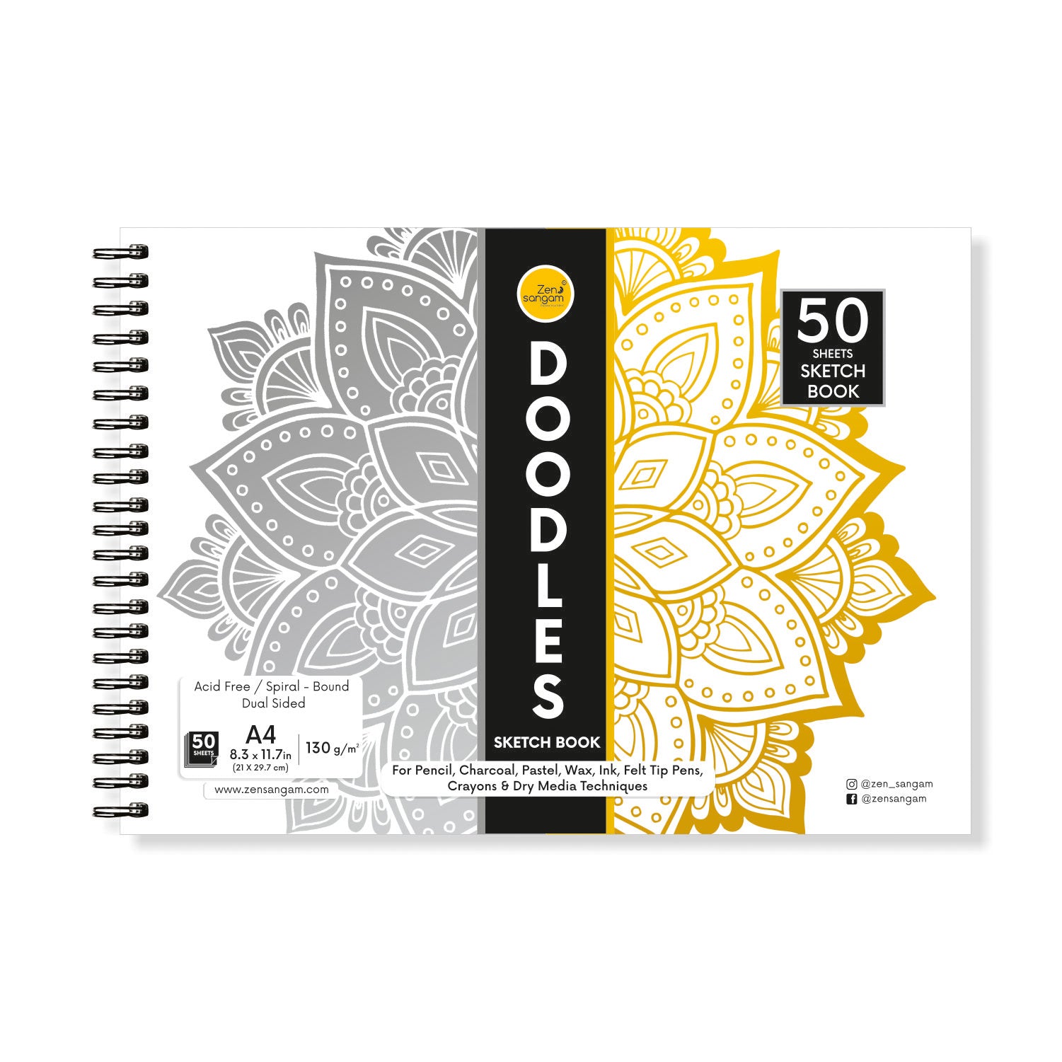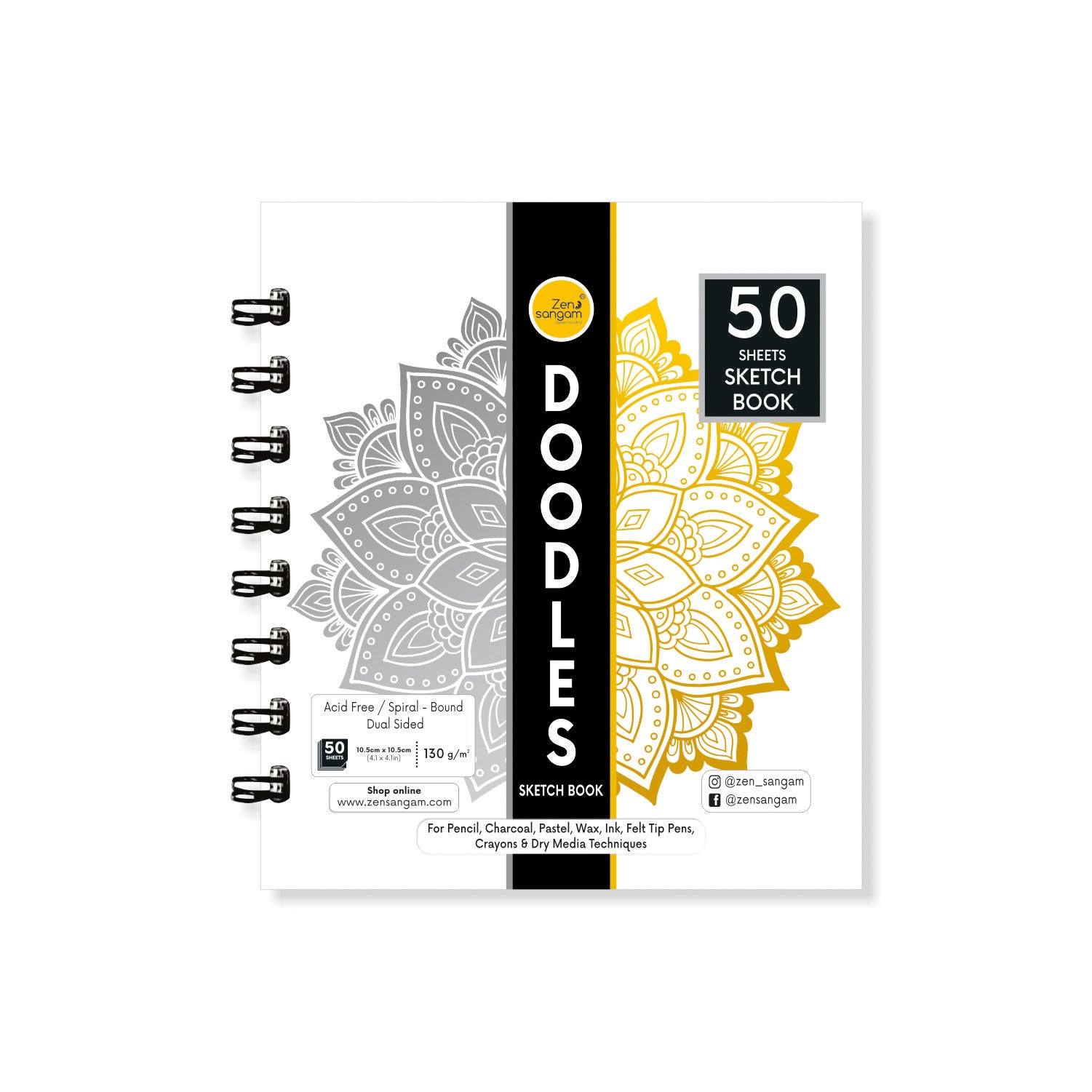 Spiral Doodle Sketchbook | 130 GSM - Dry Media | Zen Sangam