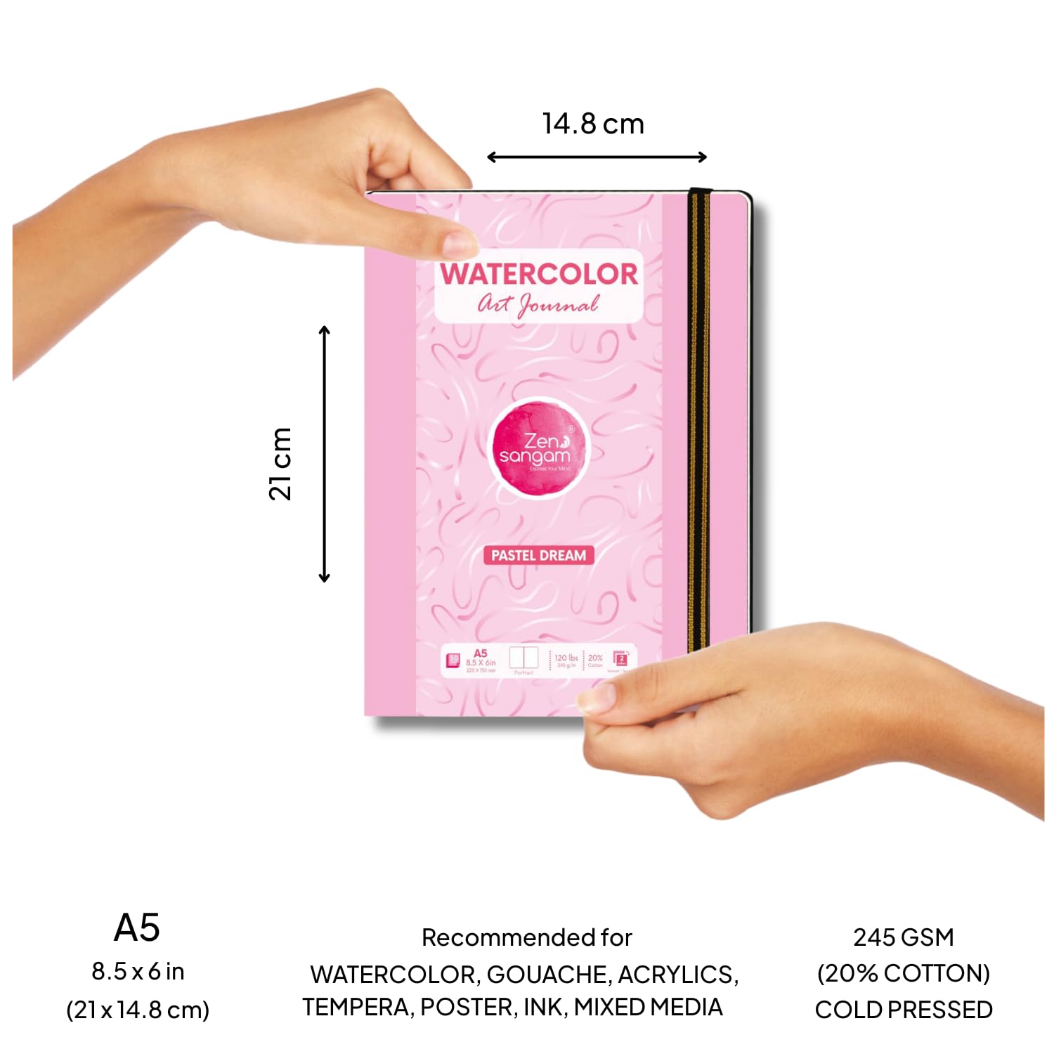 Watercolour Journal | 245GSM - 20% Cotton | Portrait | Pastel Dream (Pink) | Zen Sangam