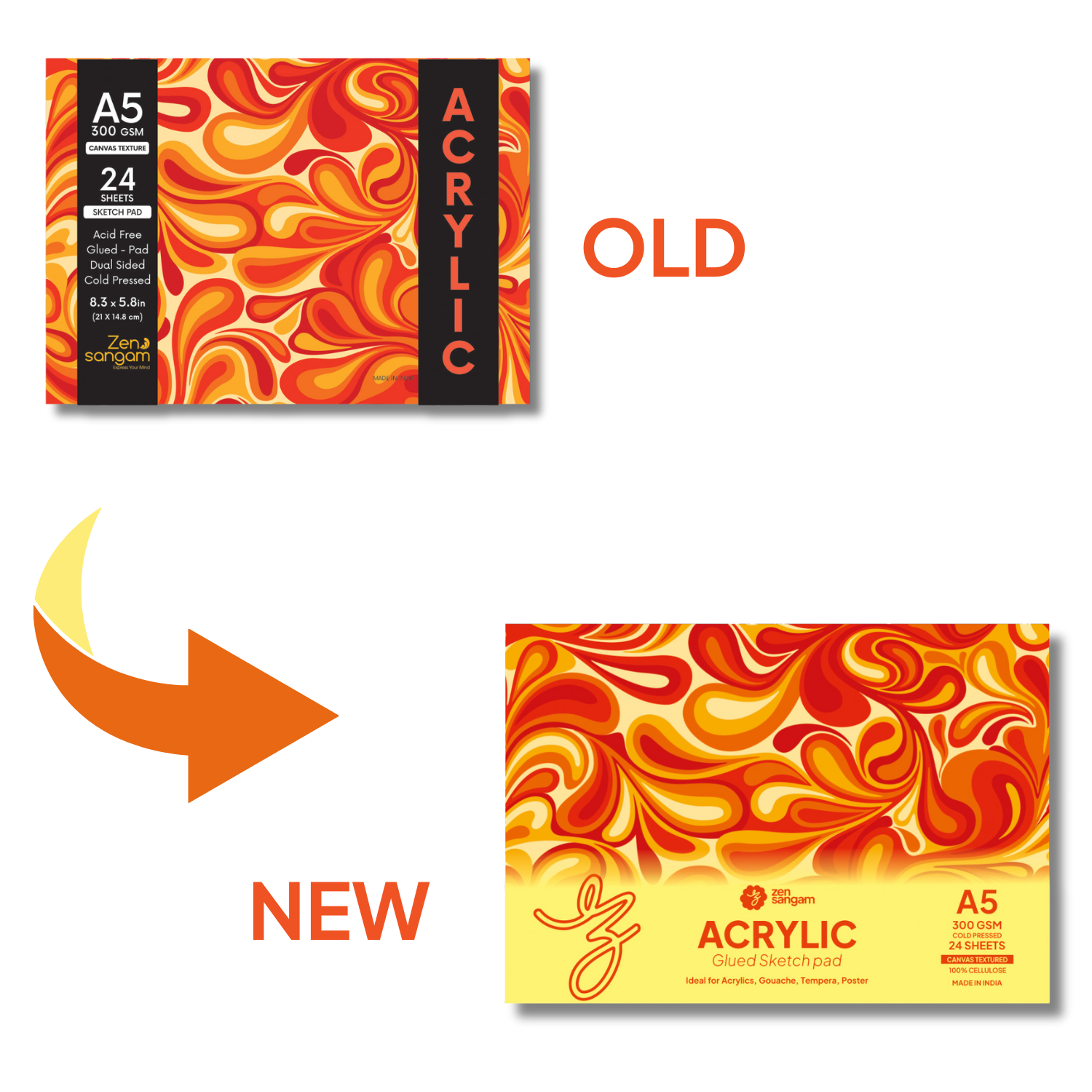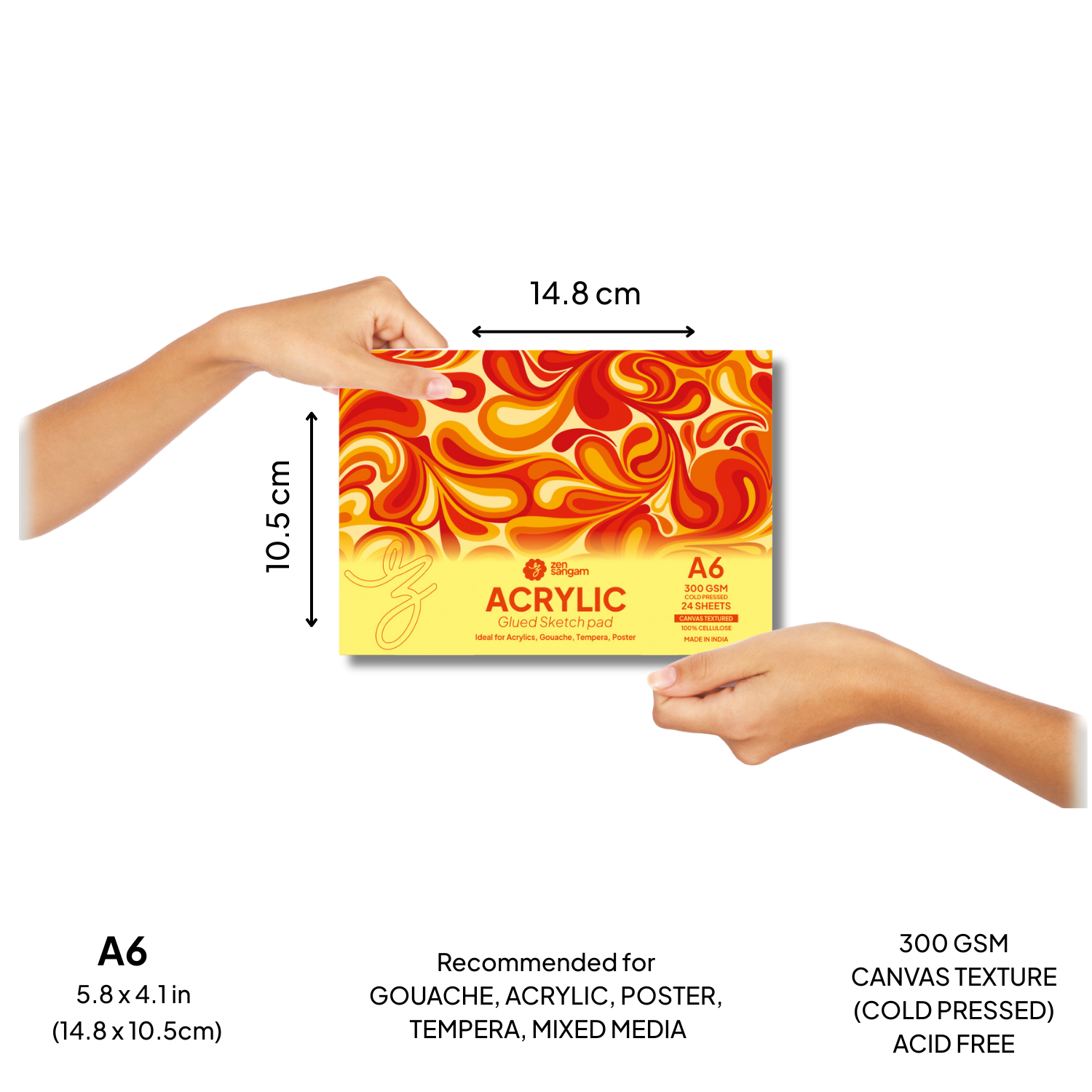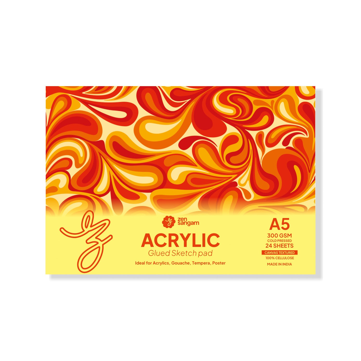 - Glued Sketchpad with 24 Sheets of 300 GSM Cold Pressed Acrylic Paper. 100% Lignin-Free Cellulose Sheets. This Sketchpad is a perfect companion for Beginner-Artists who are exploring Acrylics.