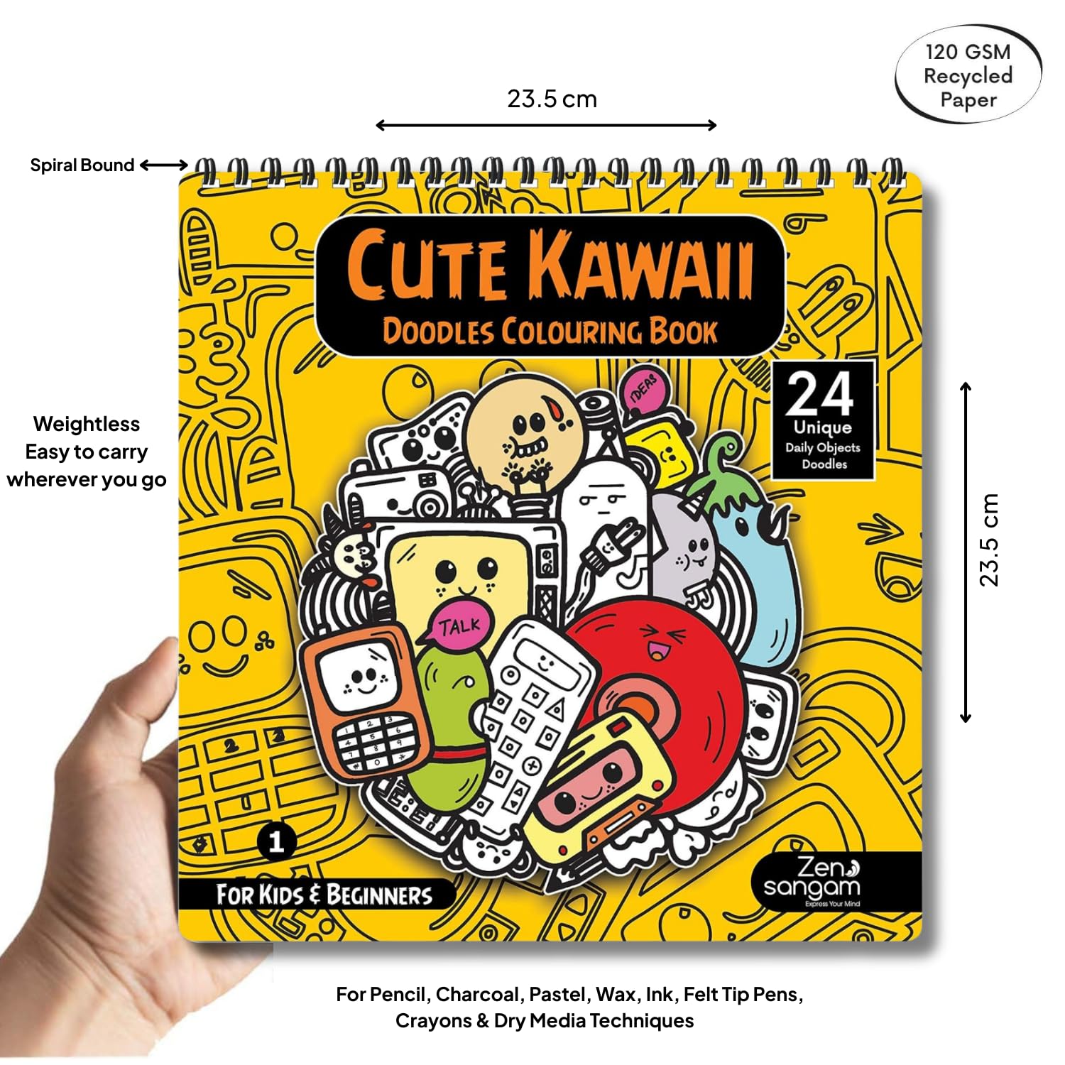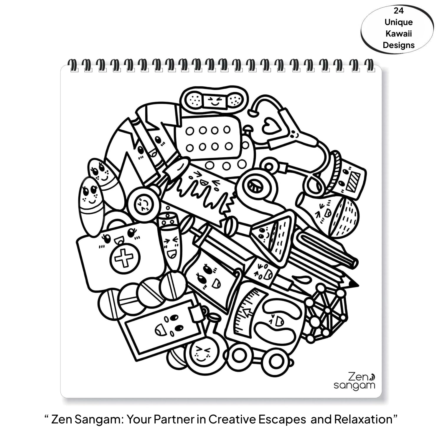 Coloring Book | Kawaii Daily Objects Theme 1 | For Kids & Beginners | Zen Sangam